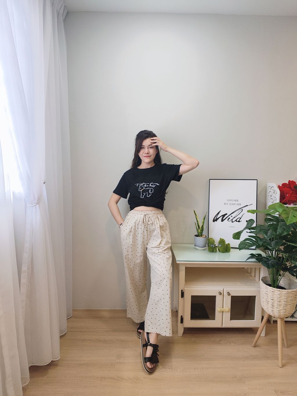 Bloom Print Straight Casual Pants 小花印花抽绳长裤