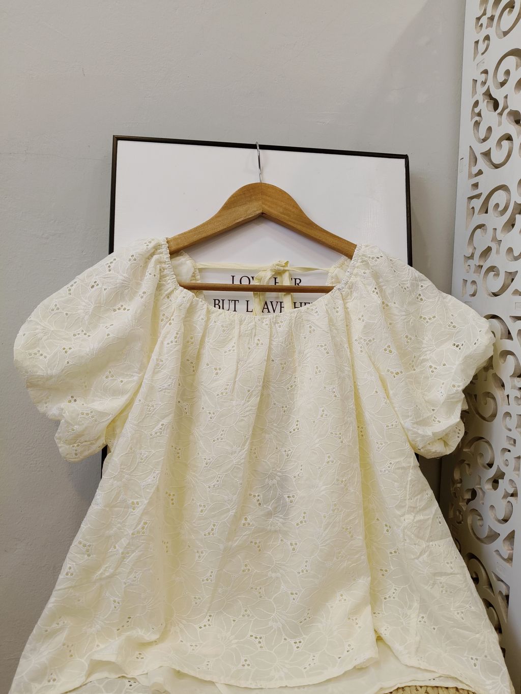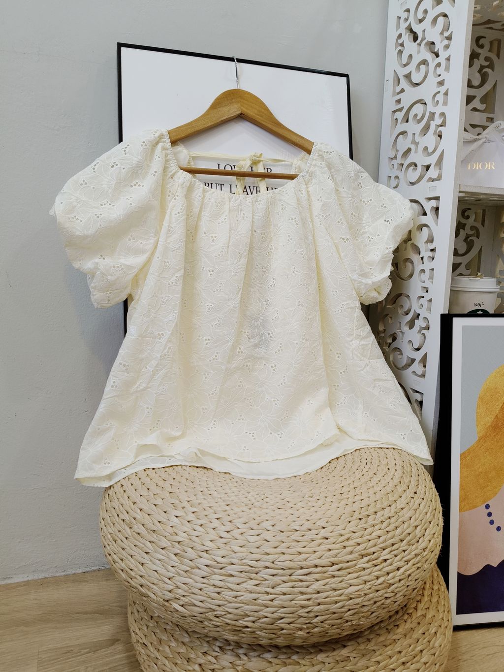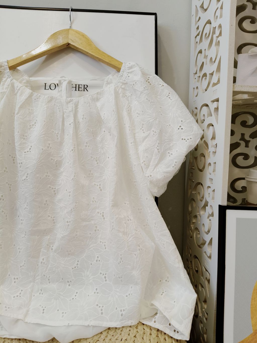 Delicate Eyelet Puff-Sleeve Top 精致通花微泡袖上衣