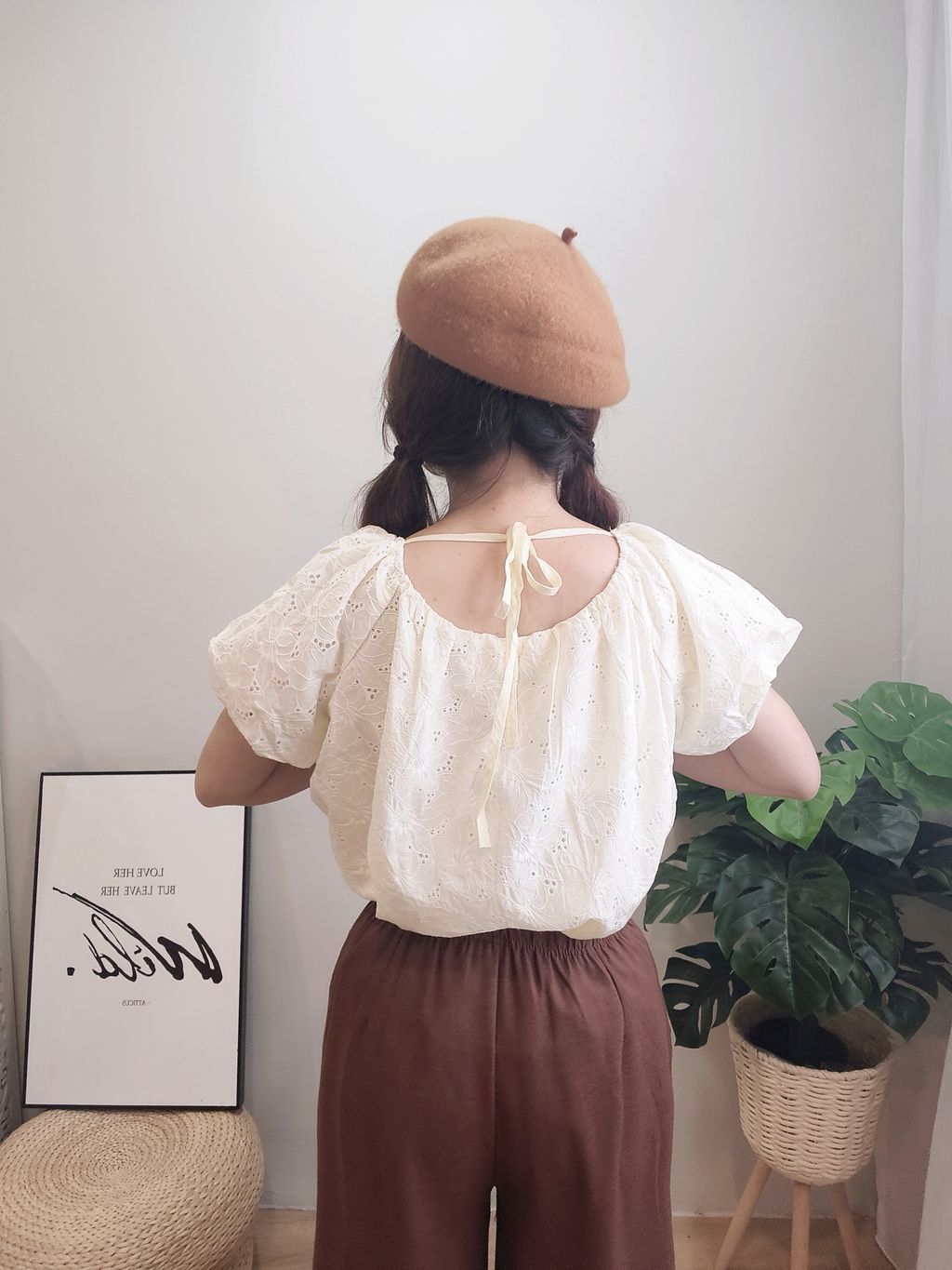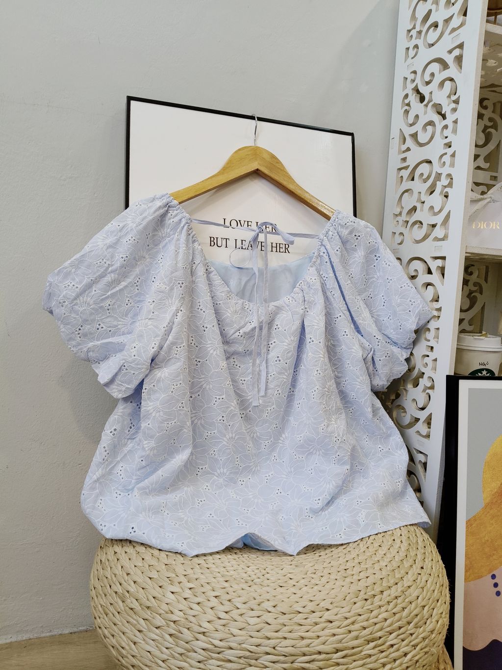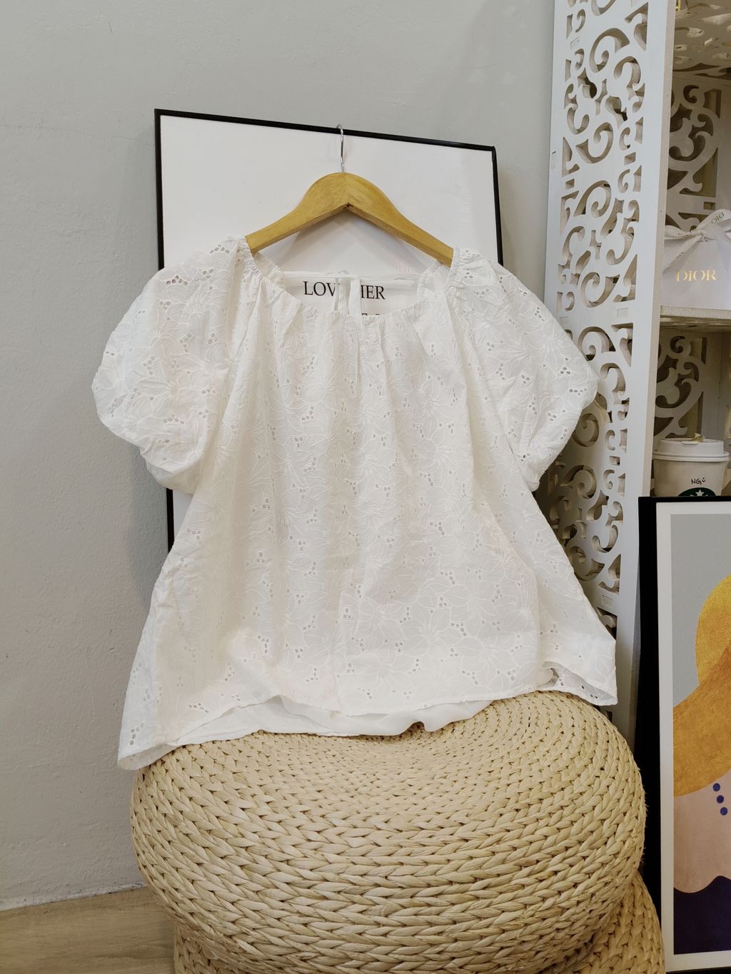 Delicate Eyelet Puff-Sleeve Top 精致通花微泡袖上衣
