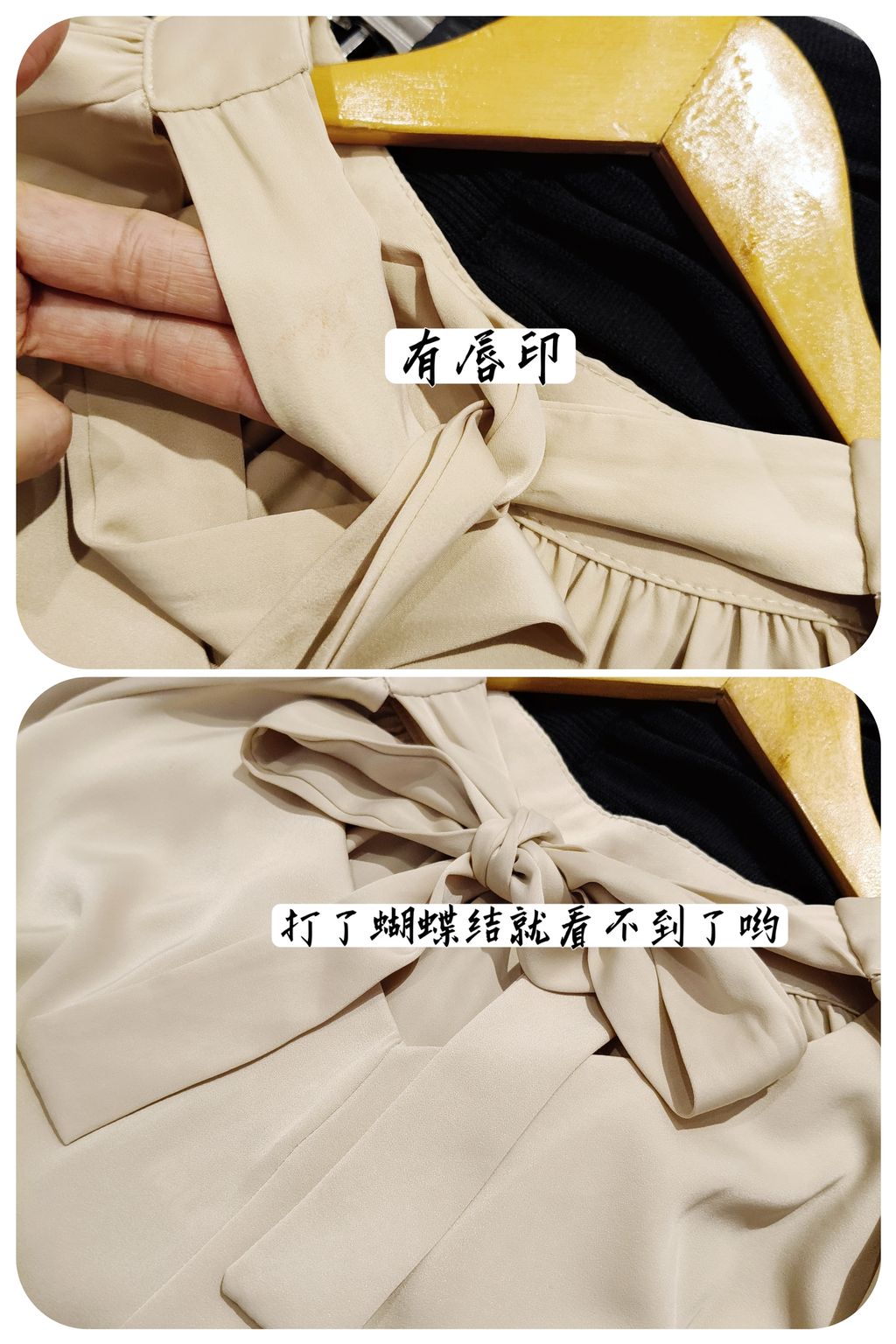 备注: 这款后侧系带有少于唇印(如图),但绑了蝴蝶结就看不到了哦, 整体不影响穿着效果。我们出于对顾客的诚信,会提前说明这一点。此款会以优惠价清出,若比较介意,建议慎拍,也请勿下单后再议价哦,感谢理解!