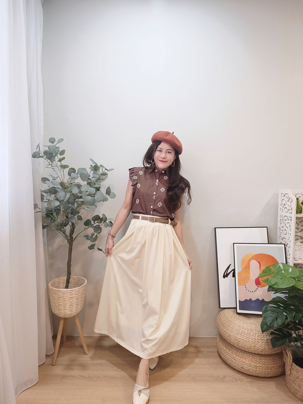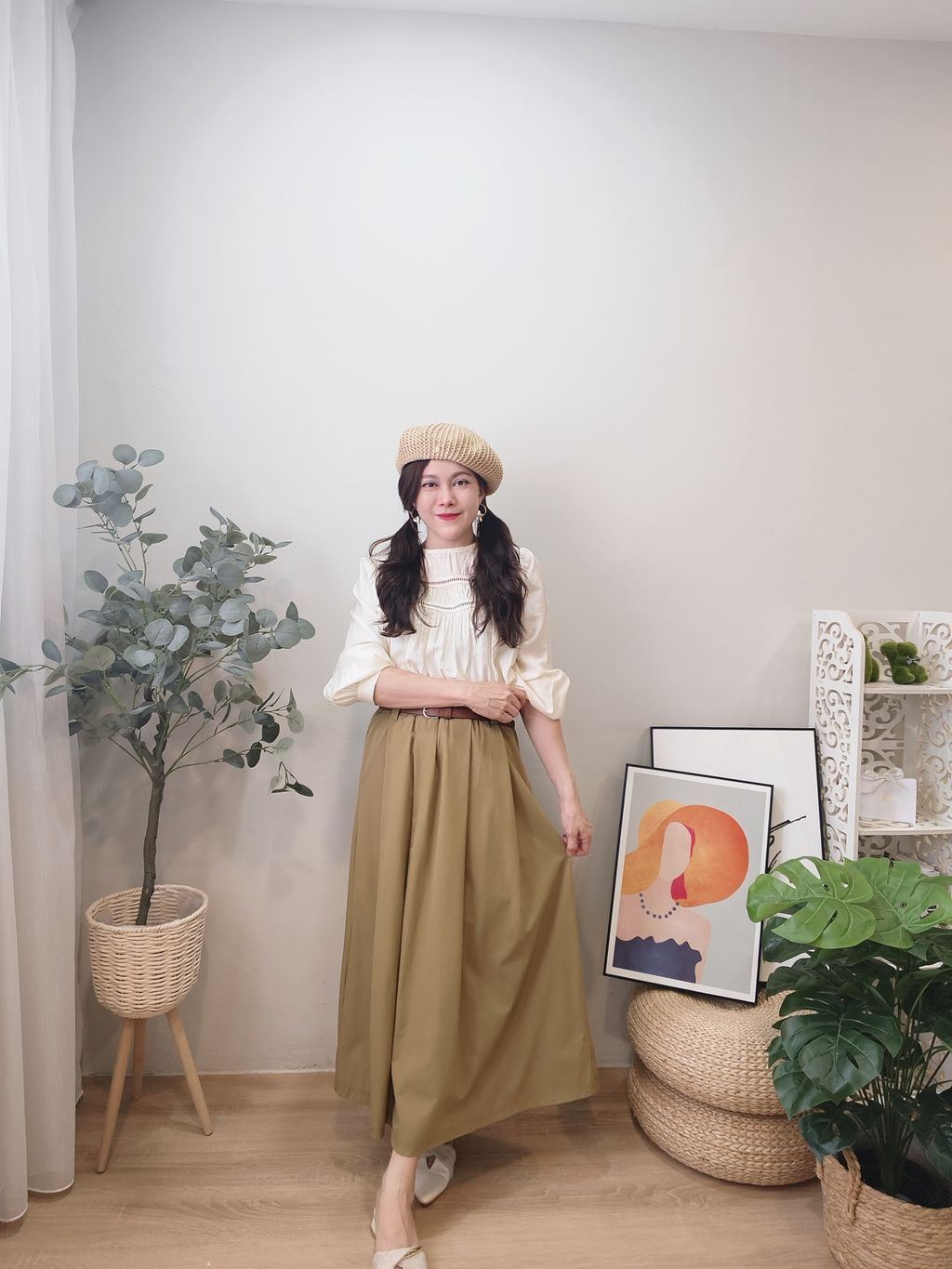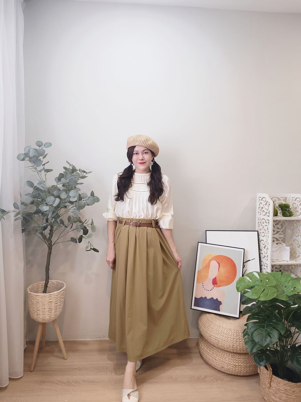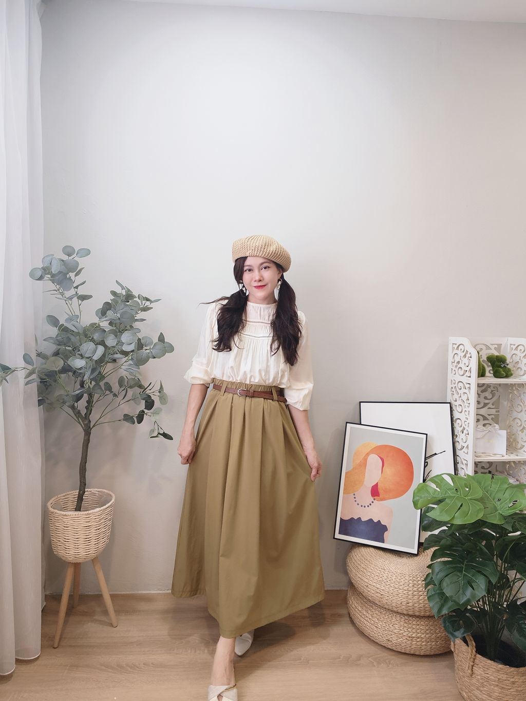 Elegant Waist-Cinch Midi Skirt 优雅轻盈中长裙