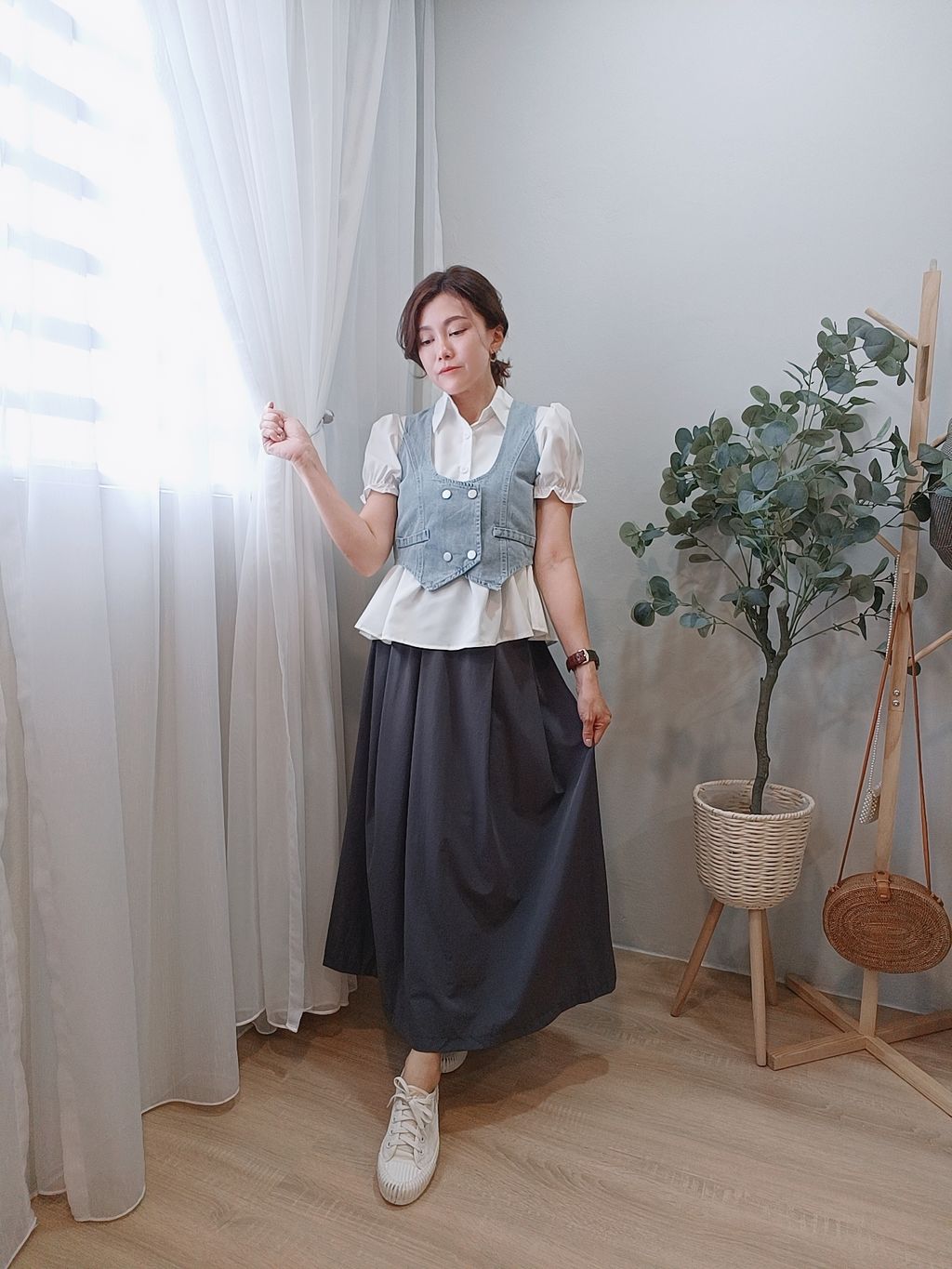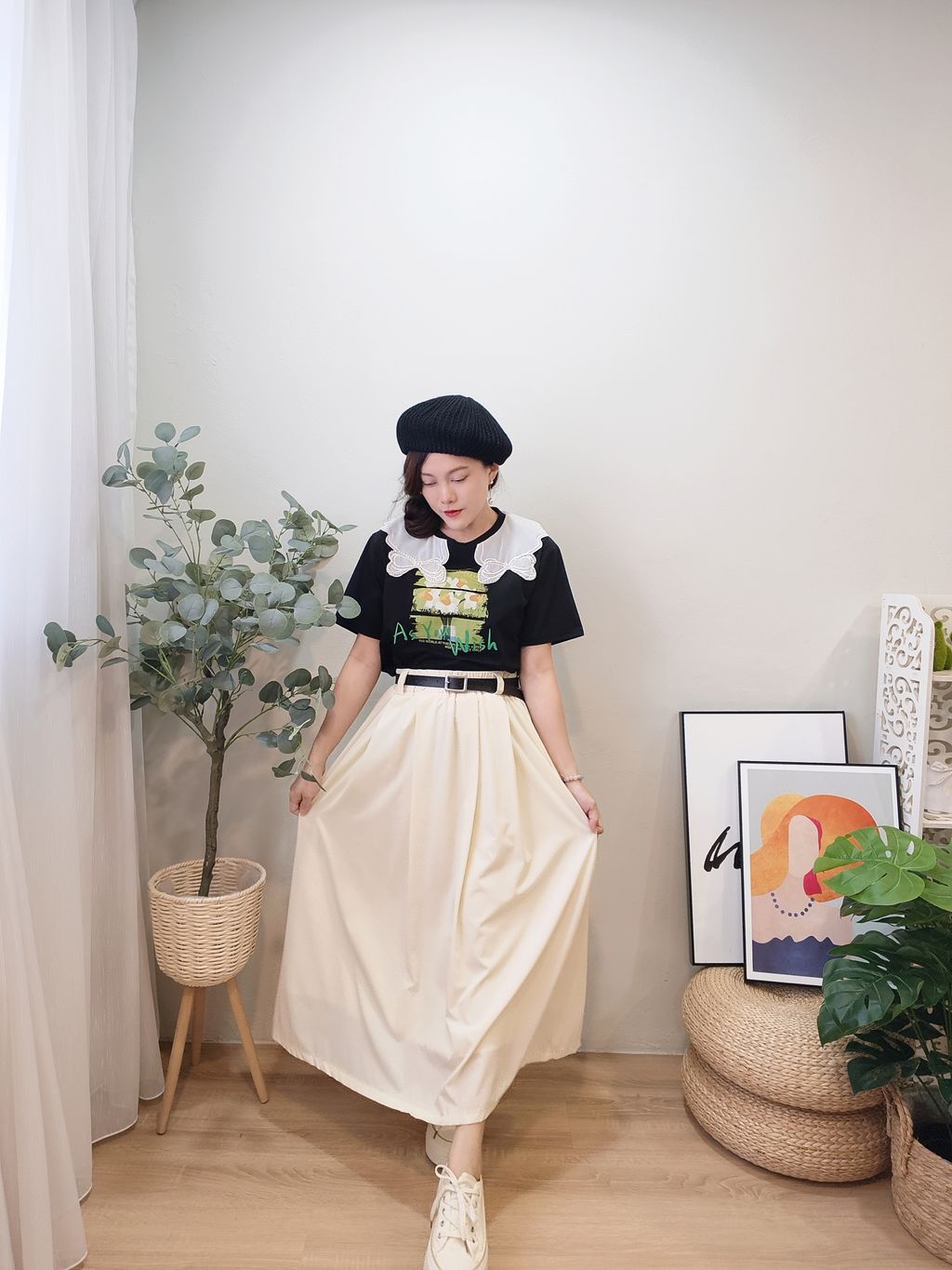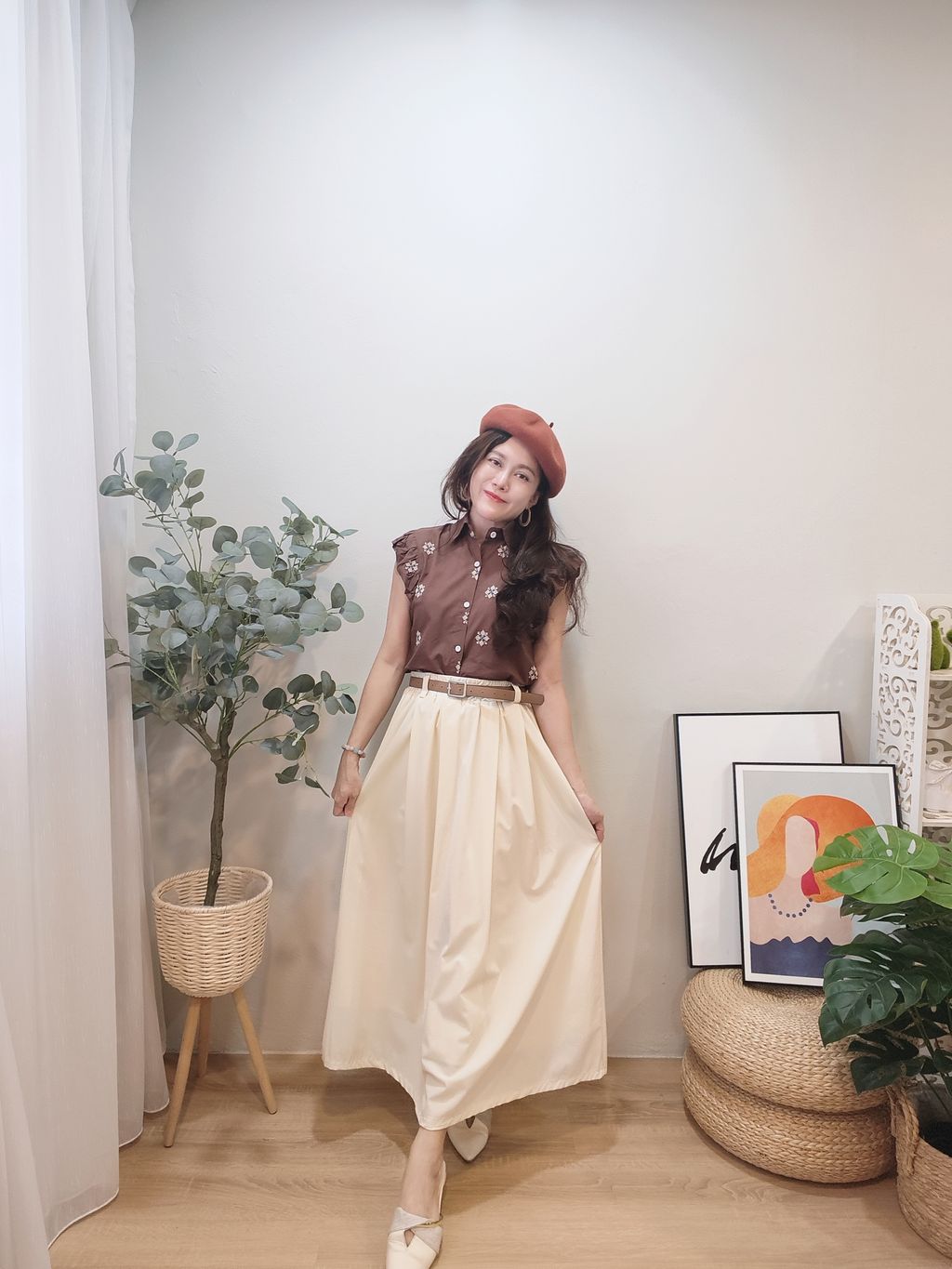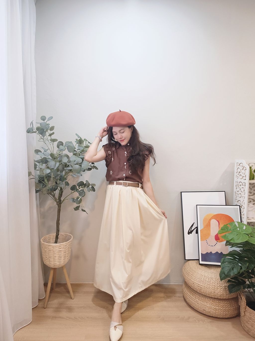 Elegant Waist-Cinch Midi Skirt 优雅轻盈中长裙