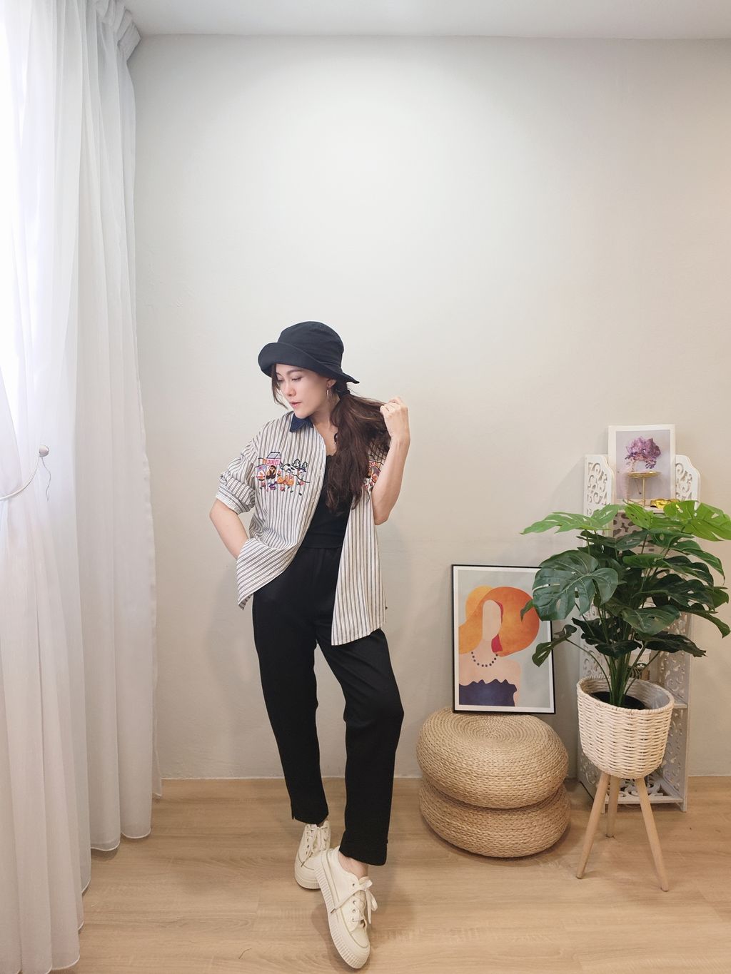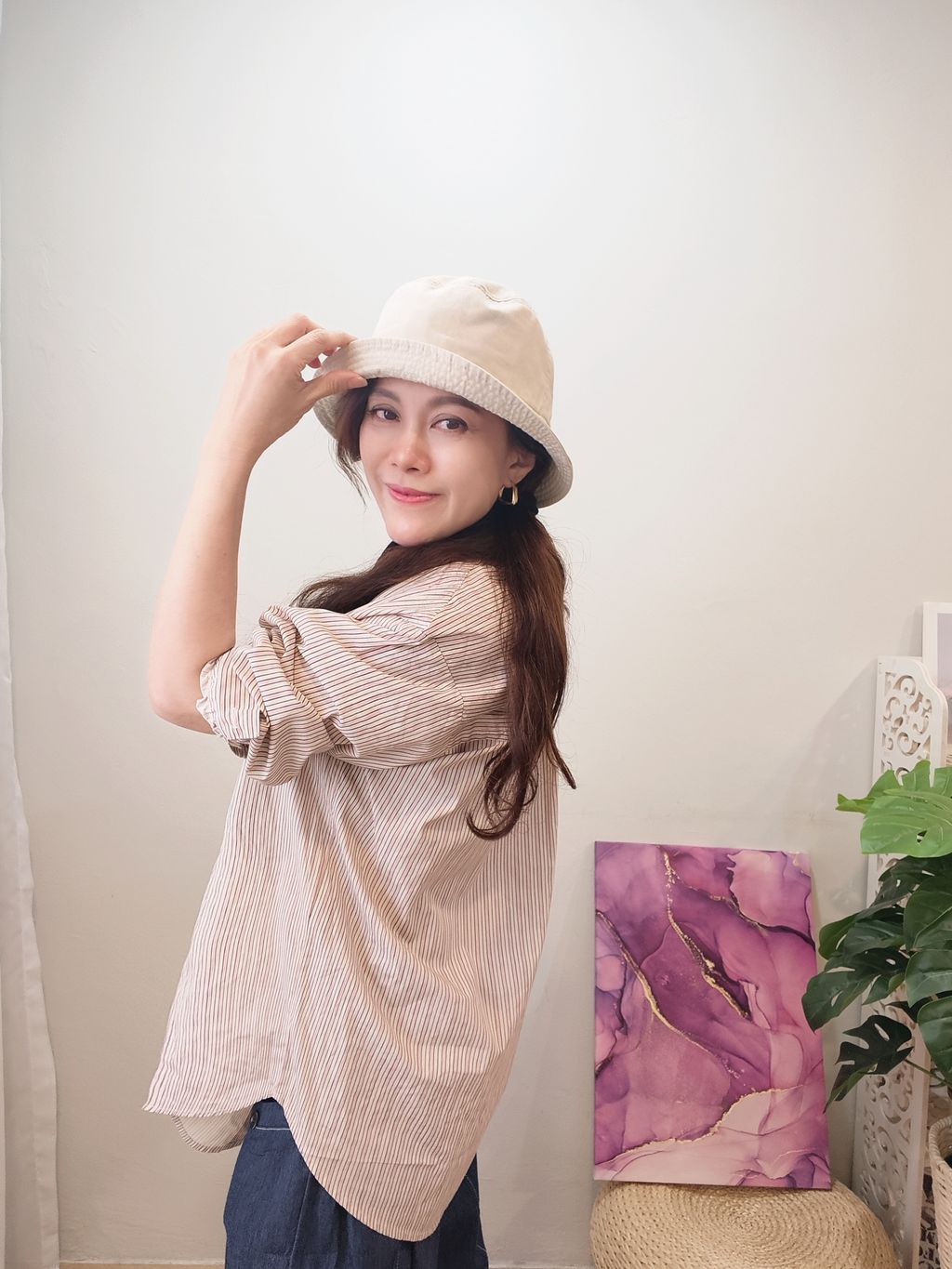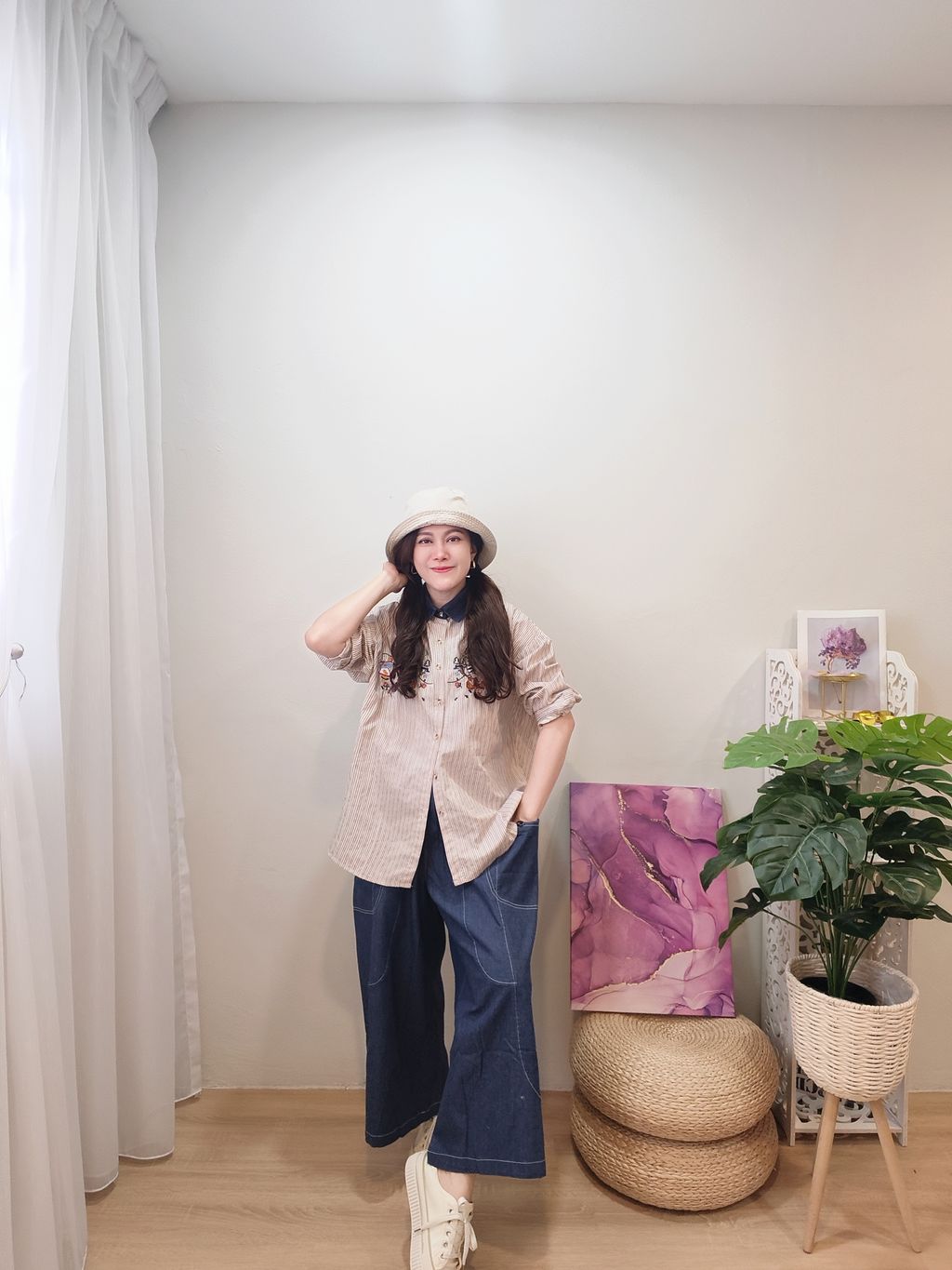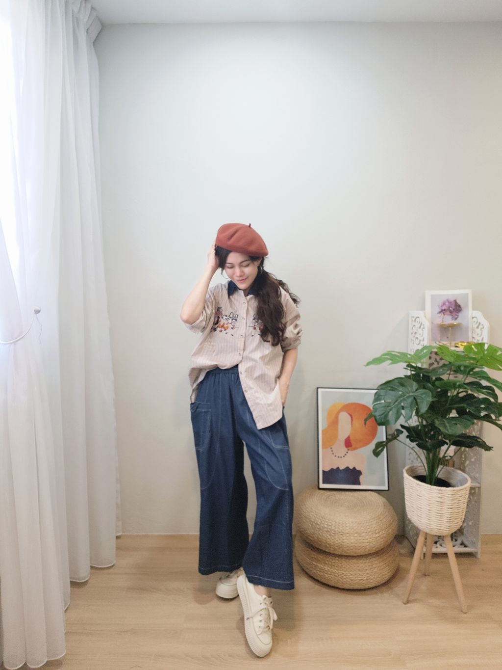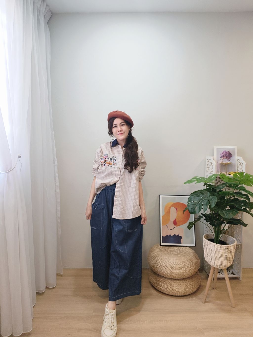 Embroidered Striped Patchwork Denim Collar Shirt 刺绣条纹拼接牛仔领口衬衫