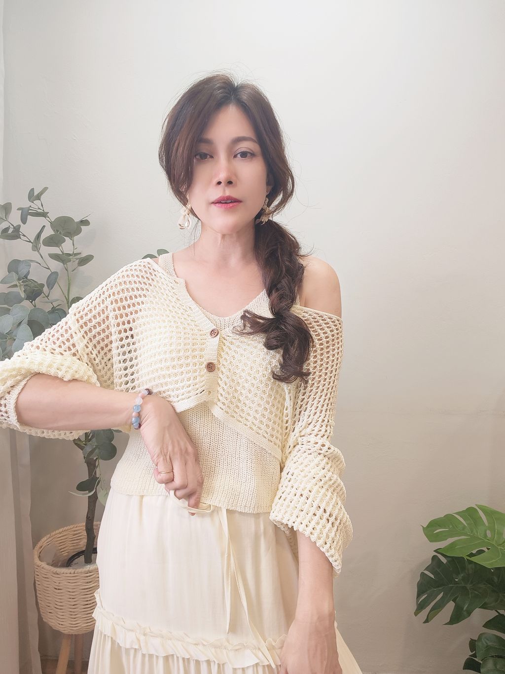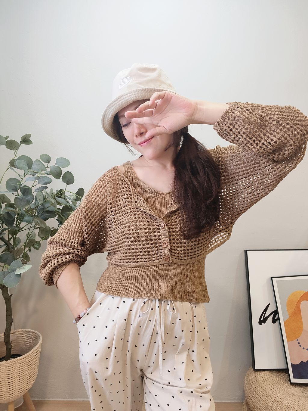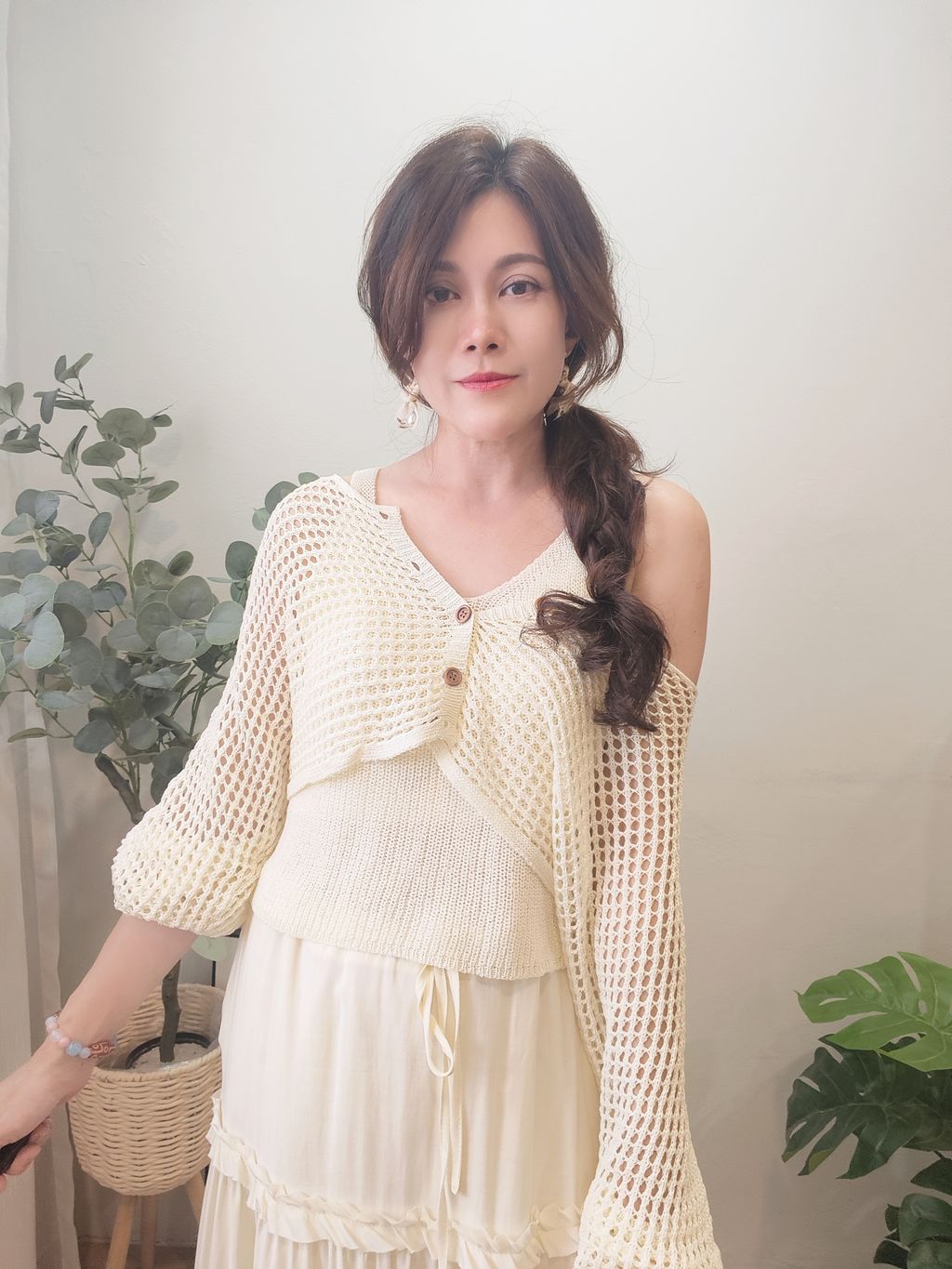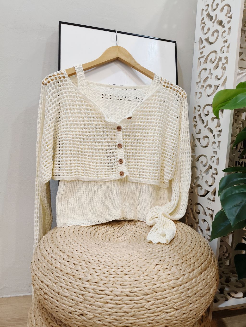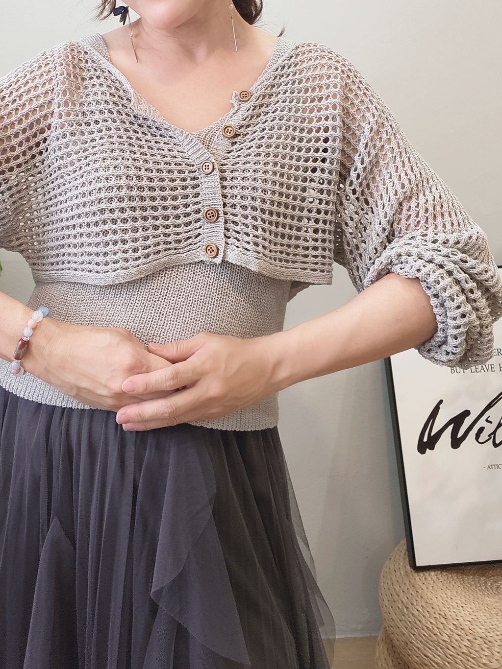 Two-Piece Knit Outfit (Cardigan+Tank) 叠穿镂空针织衫(附有内搭针织背心)