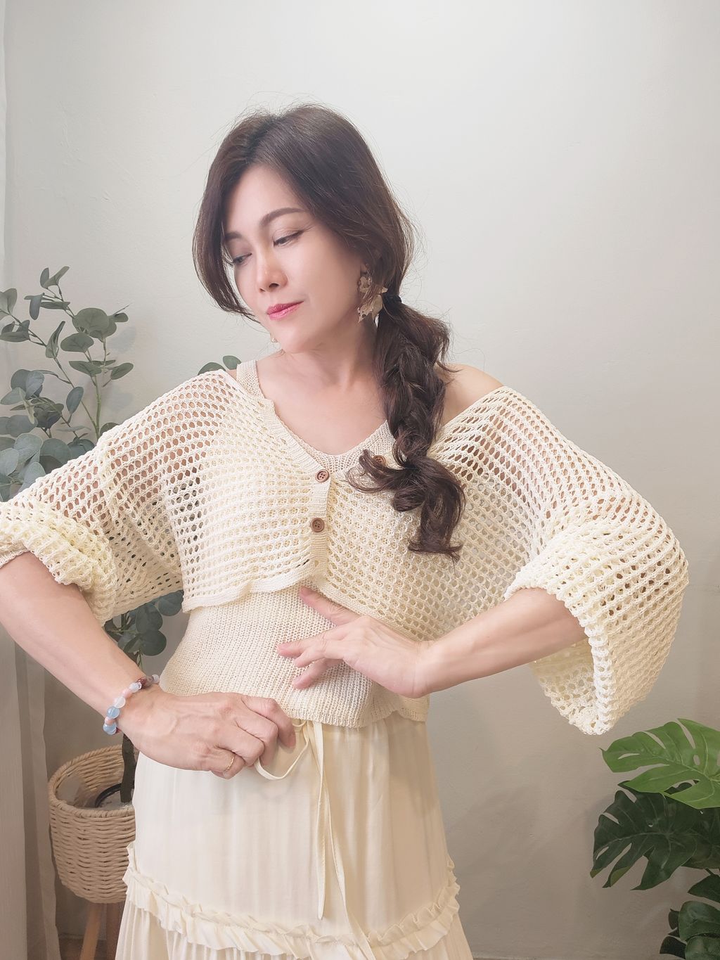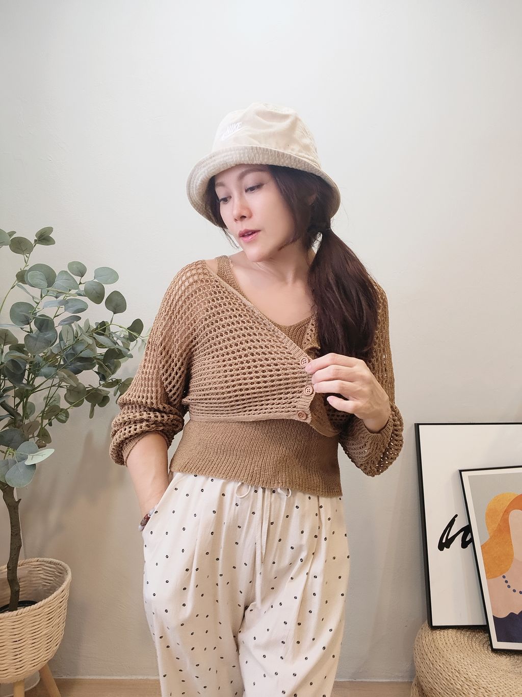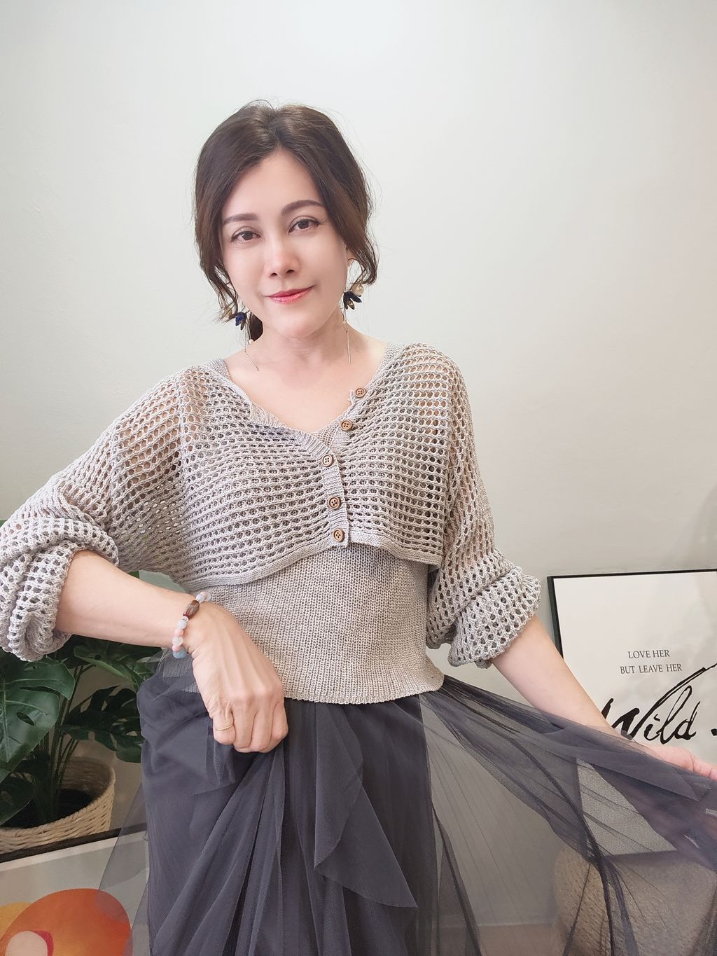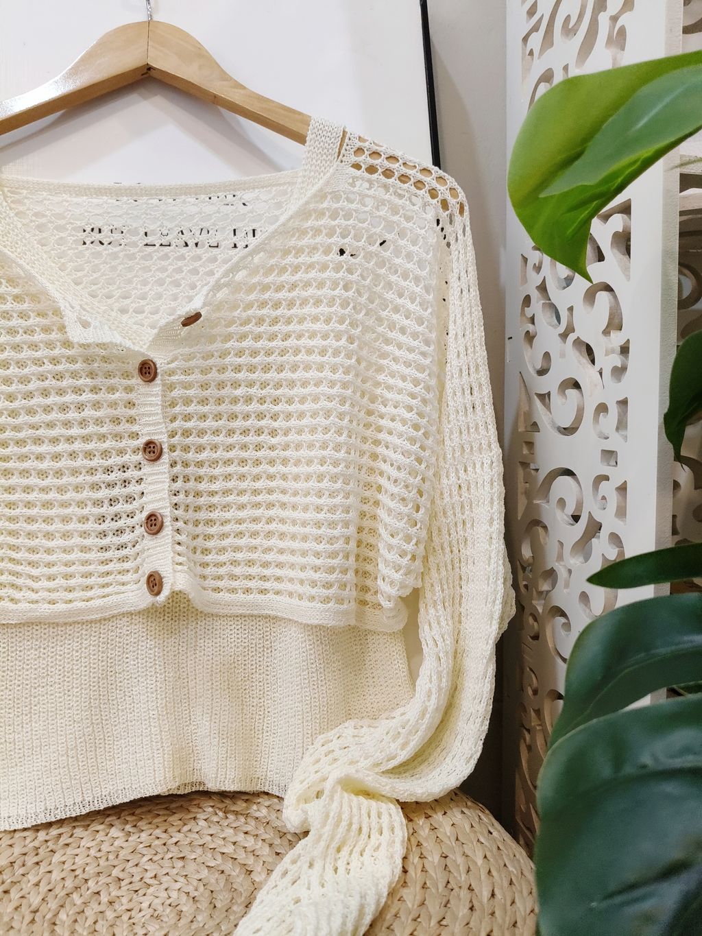 Two-Piece Knit Outfit (Cardigan+Tank) 叠穿镂空针织衫(附有内搭针织背心)