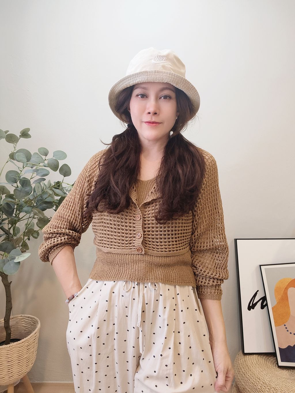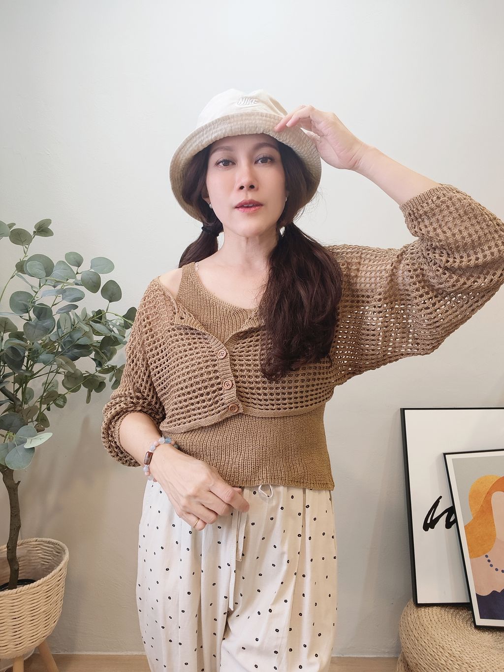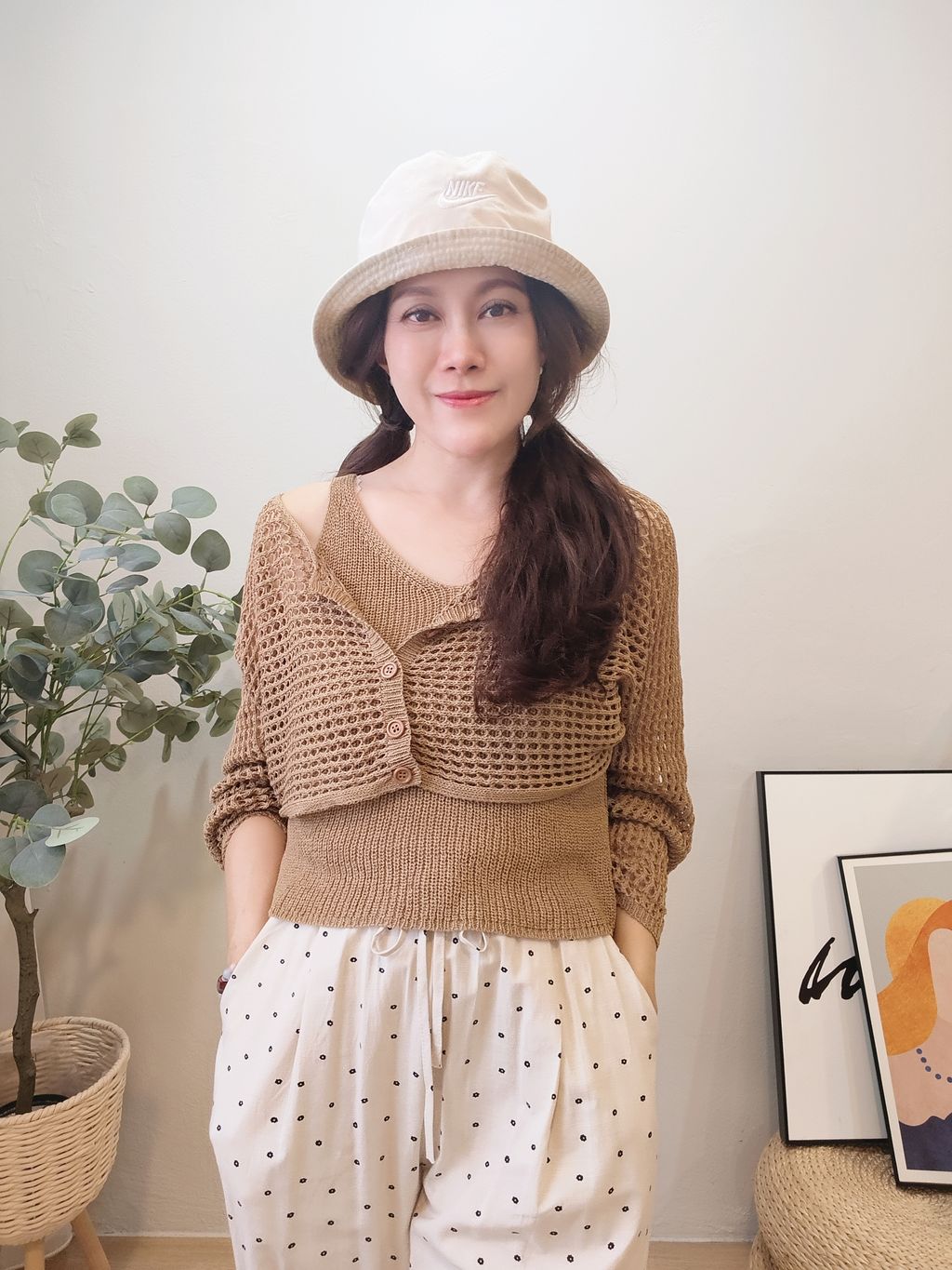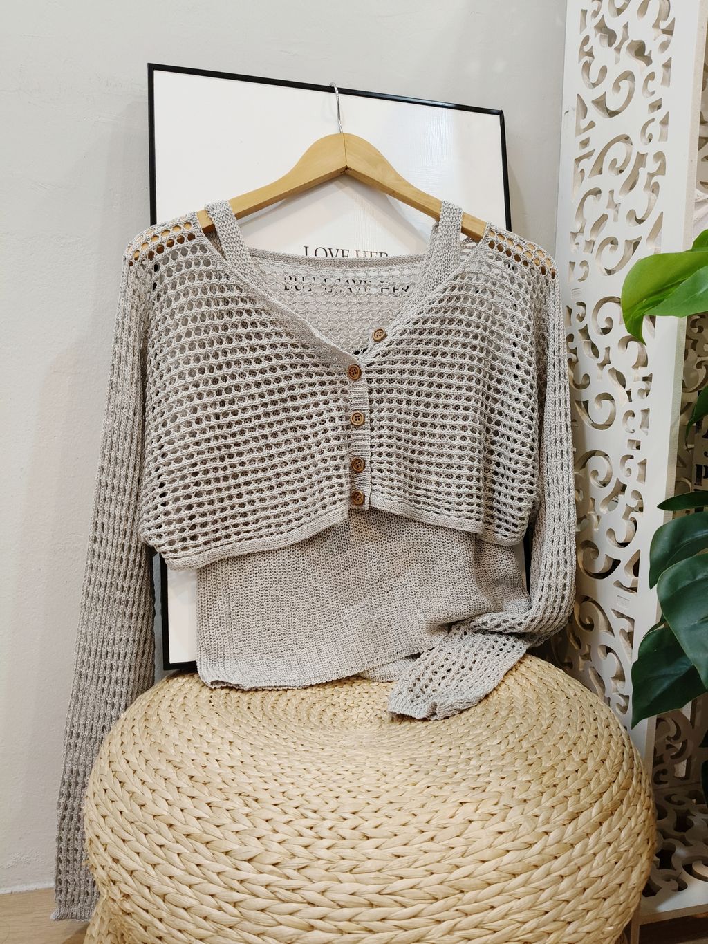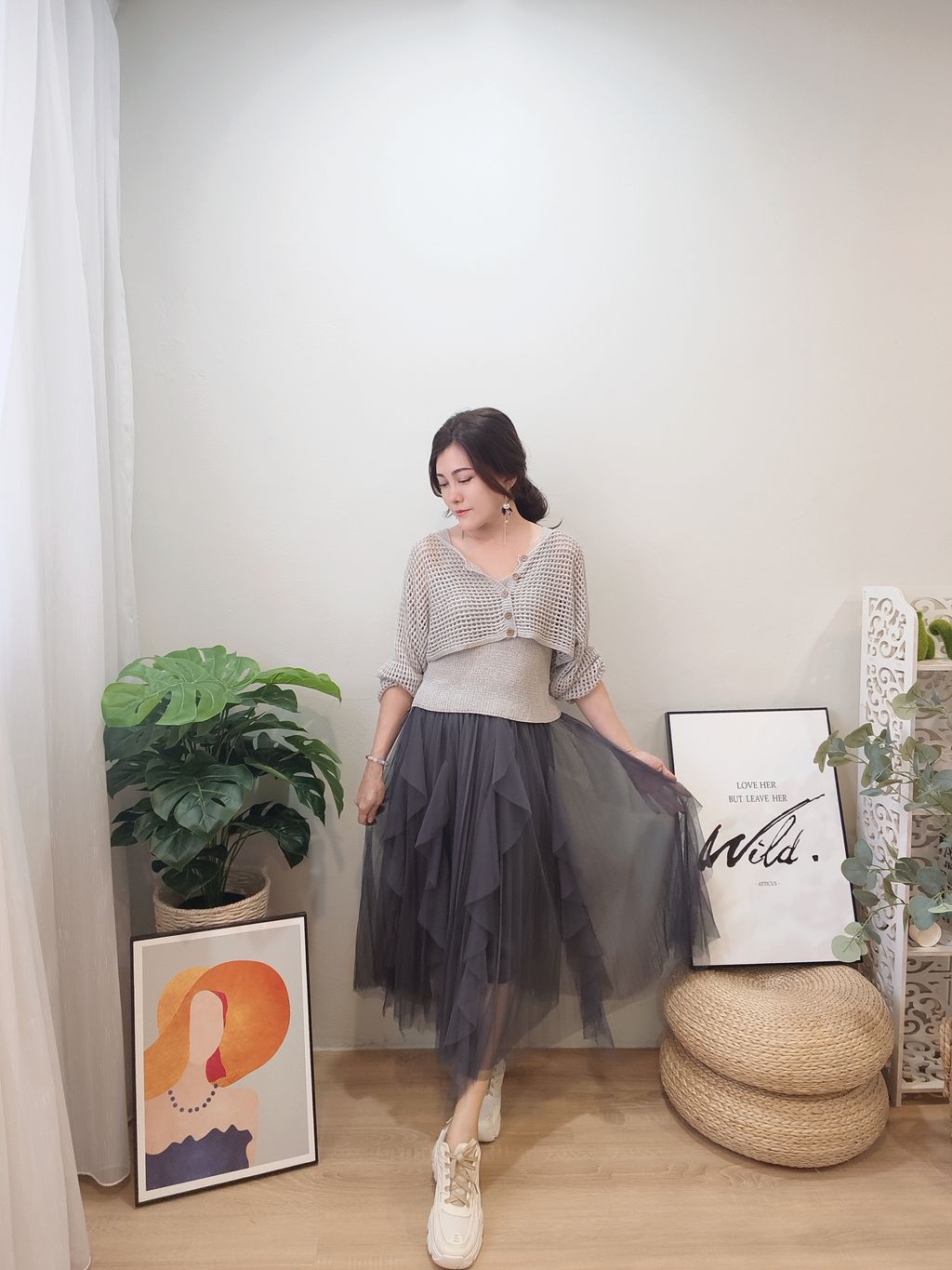 Two-Piece Knit Outfit (Cardigan+Tank) 叠穿镂空针织衫(附有内搭针织背心)