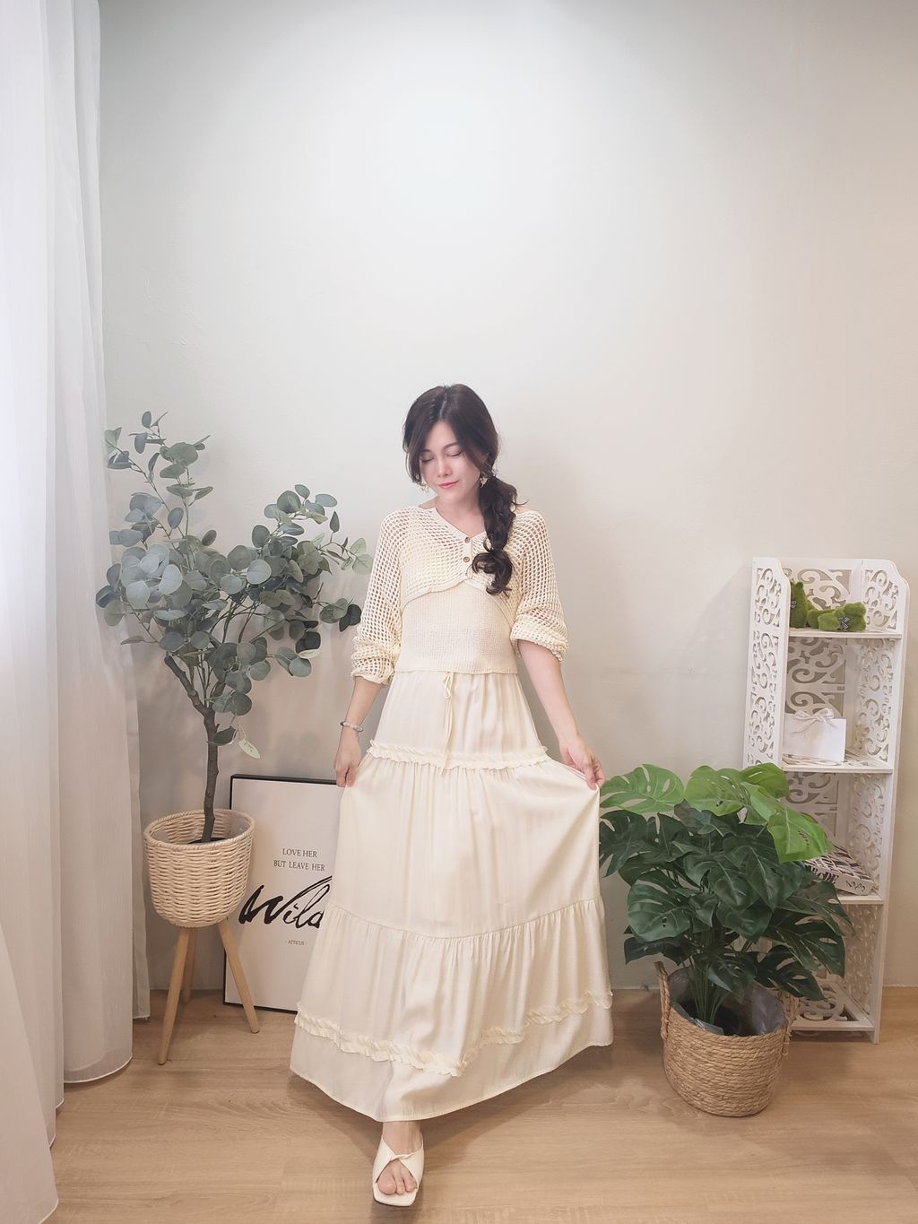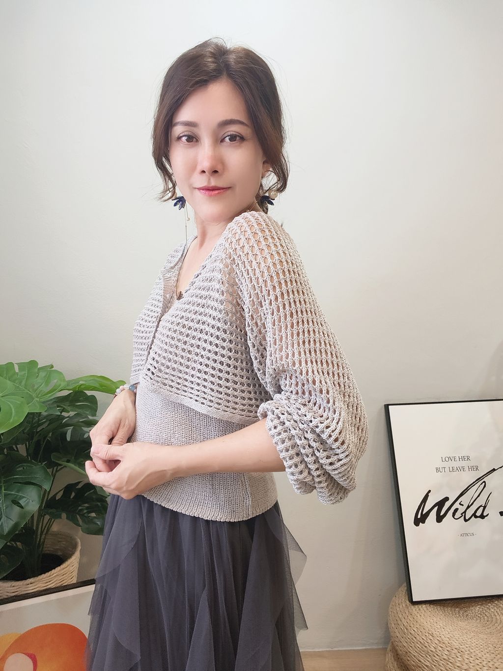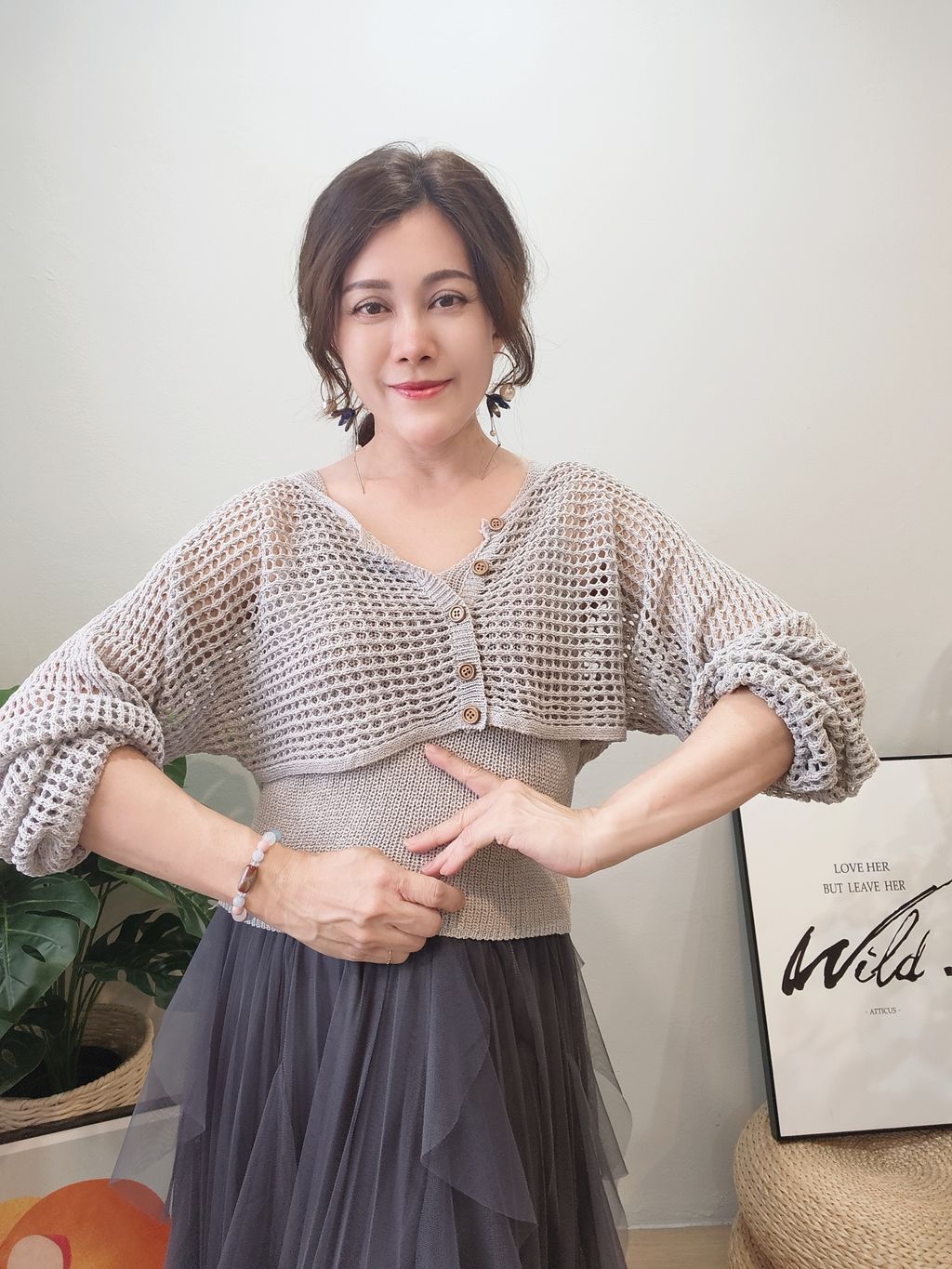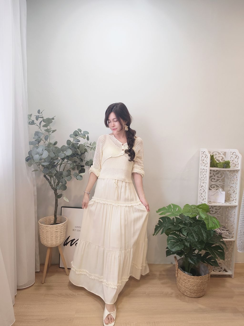 Two-Piece Knit Outfit (Cardigan+Tank) 叠穿镂空针织衫(附有内搭针织背心)