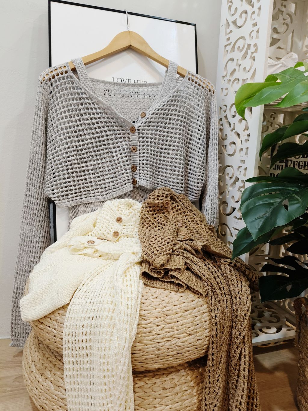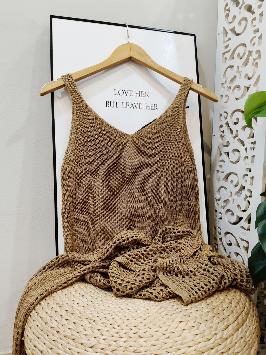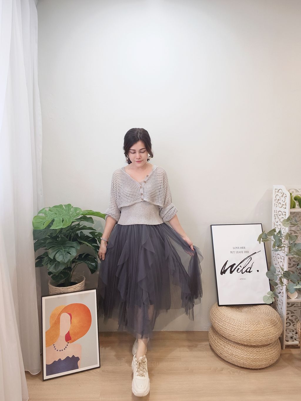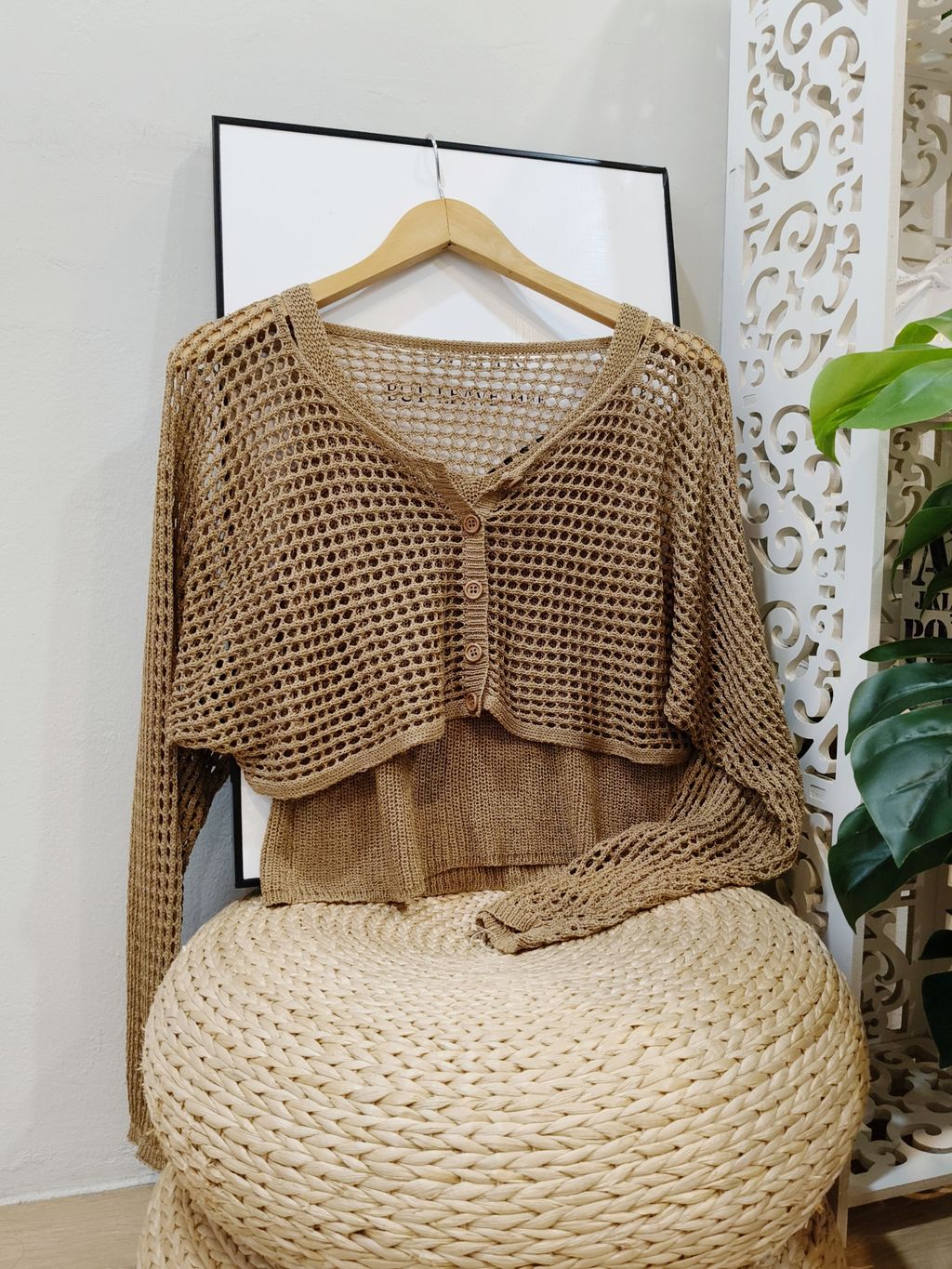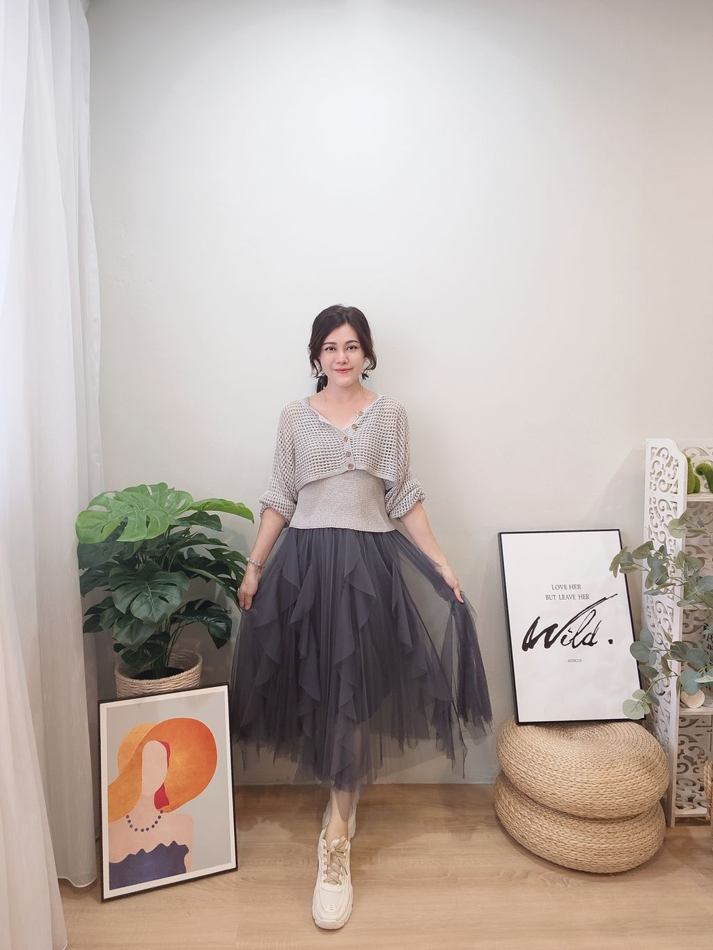 Two-Piece Knit Outfit (Cardigan+Tank) 叠穿镂空针织衫(附有内搭针织背心)