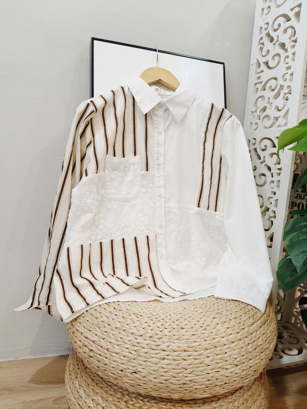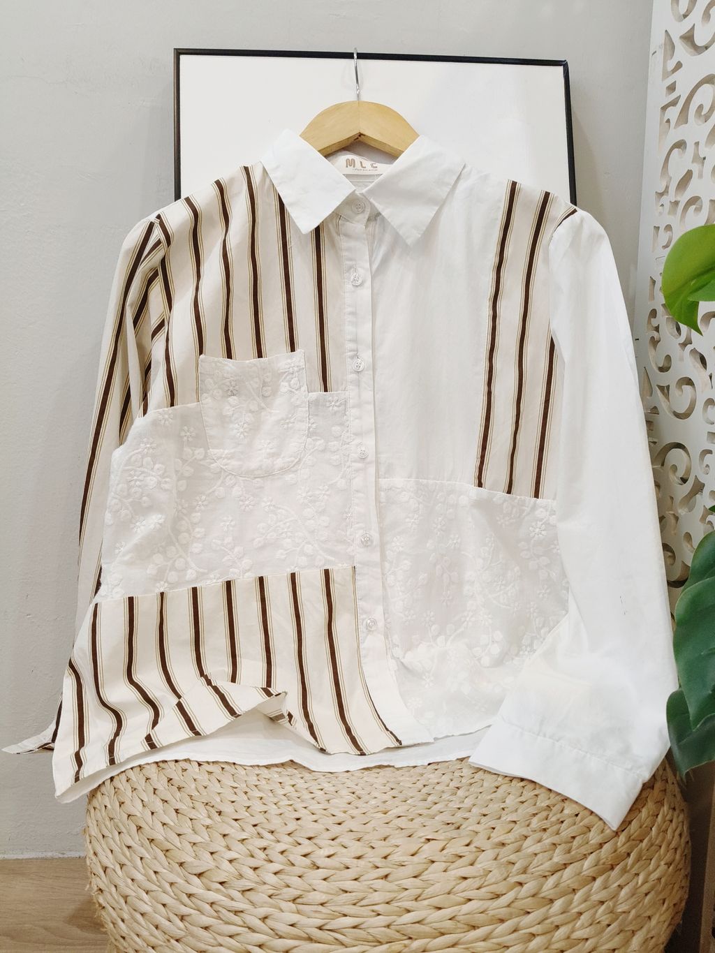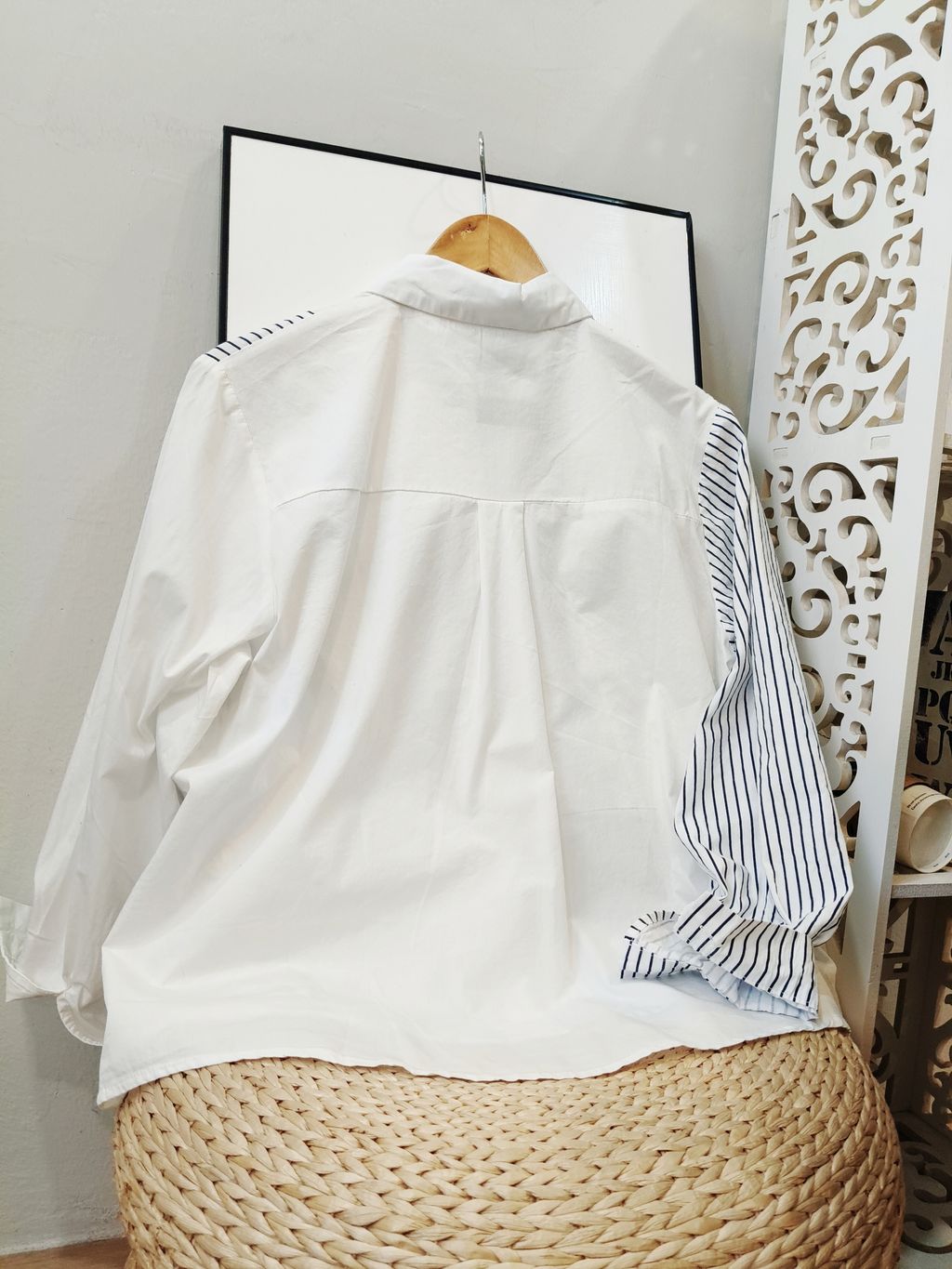 Striped Shirt with Lace Detail 蕾丝拼条纹衬衫