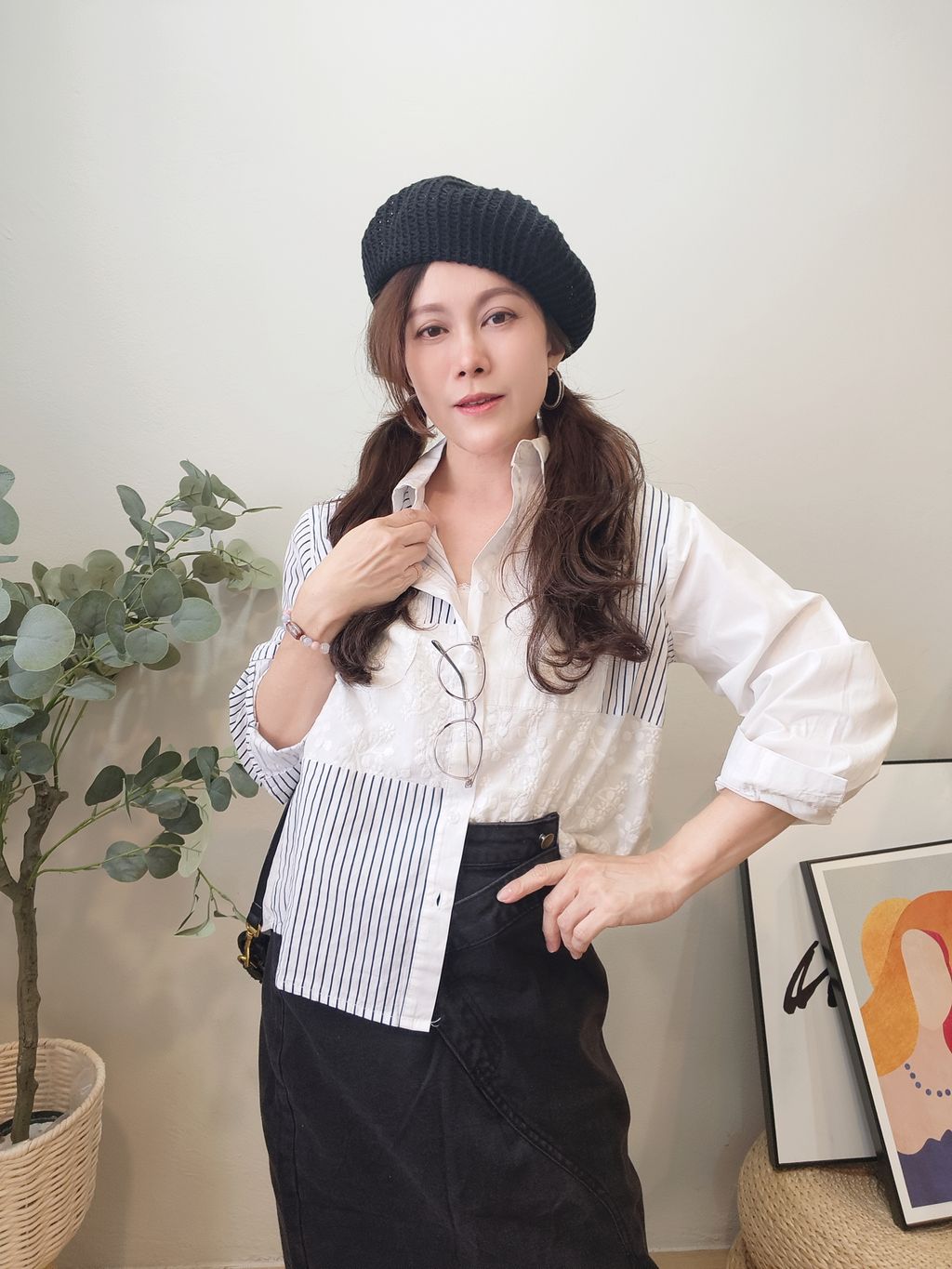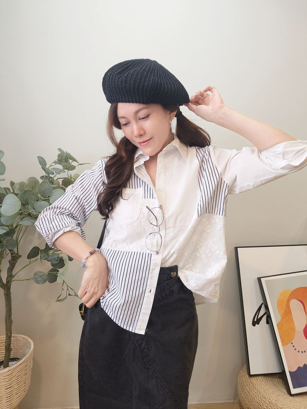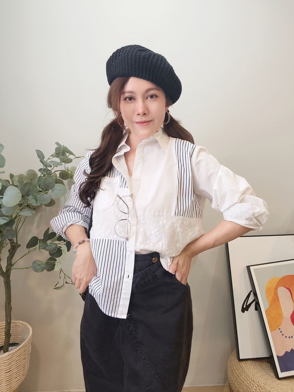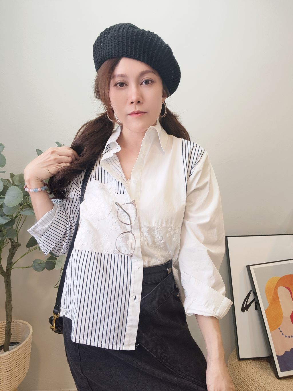 Striped Shirt with Lace Detail 蕾丝拼条纹衬衫