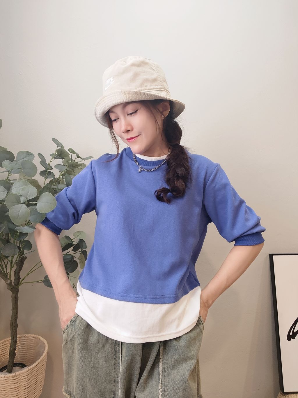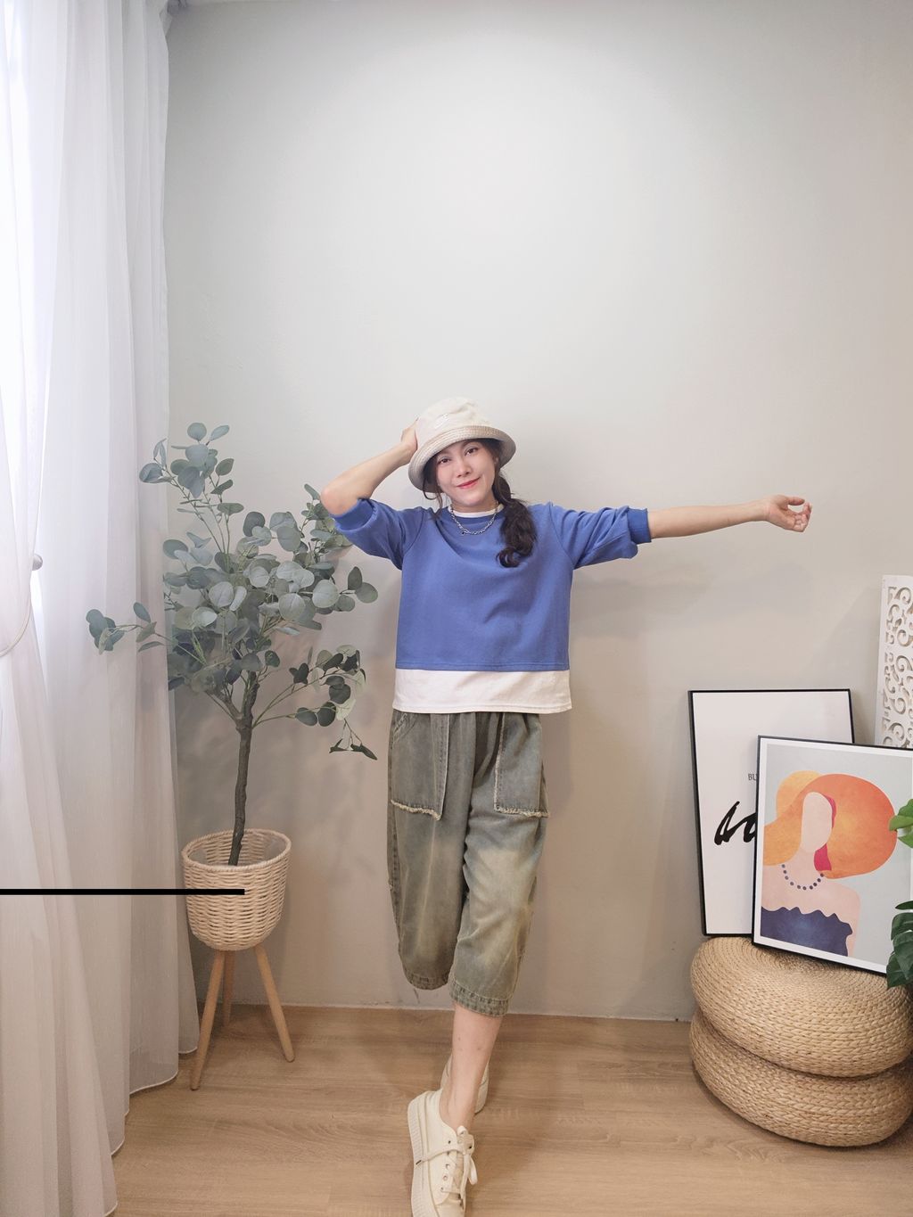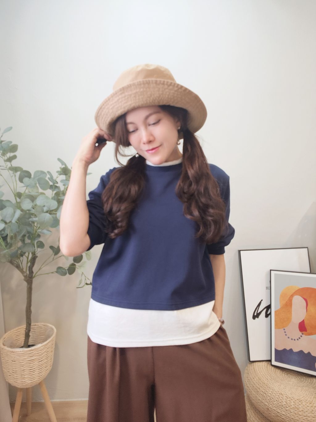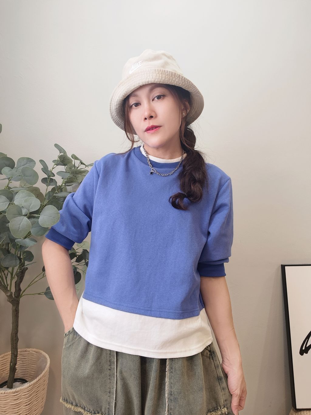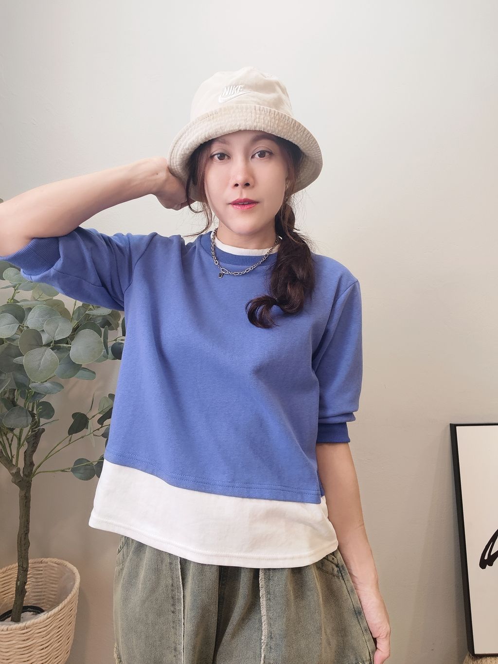 2-Tone Casual Tee 双色拼接4分袖上衣
