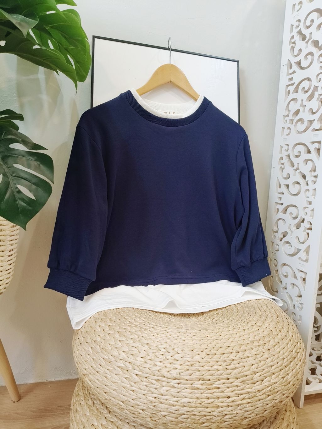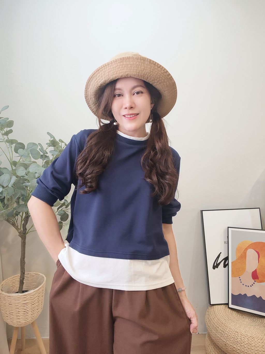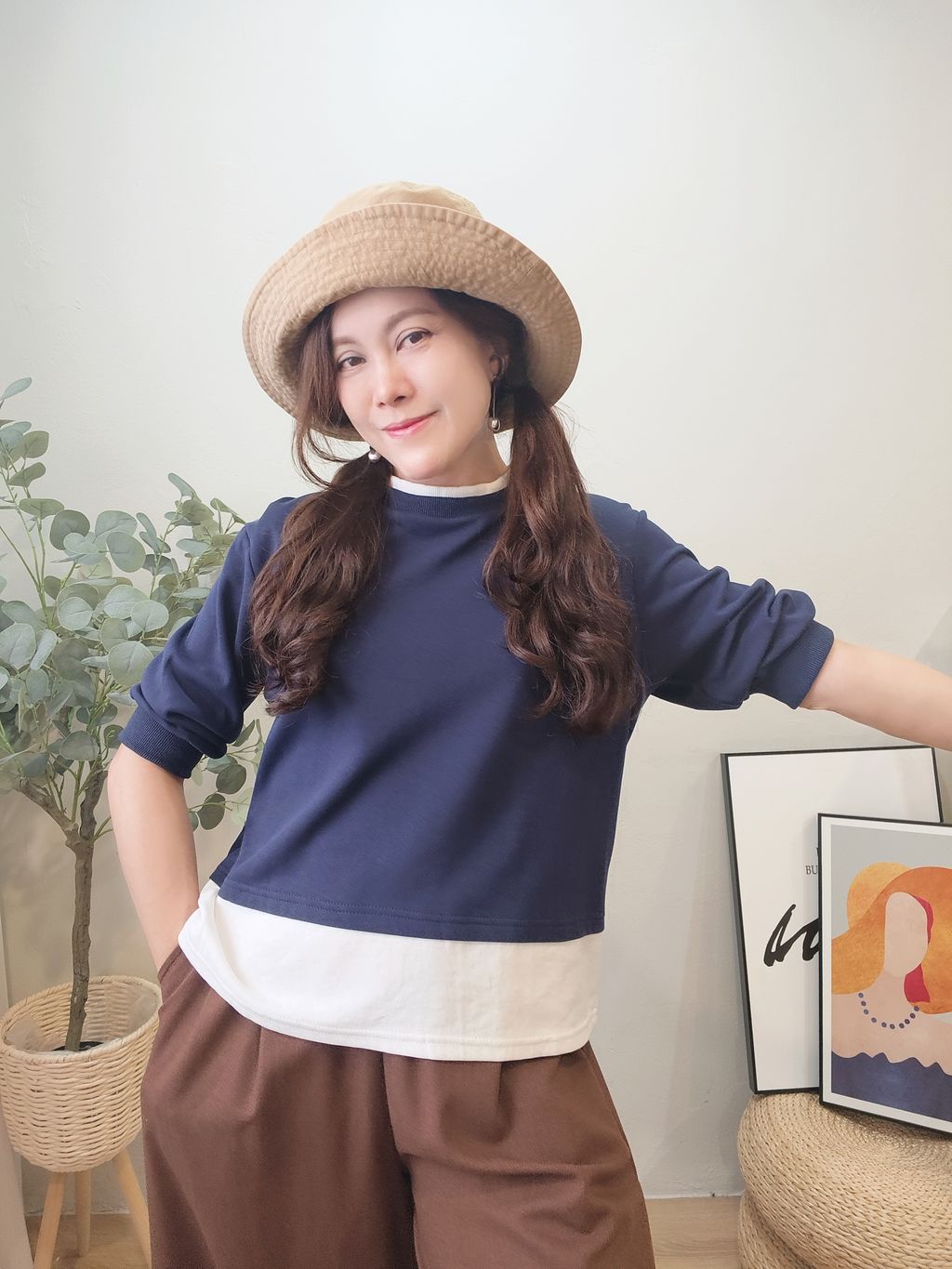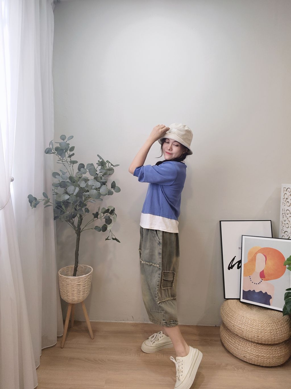 2-Tone Casual Tee 双色拼接4分袖上衣