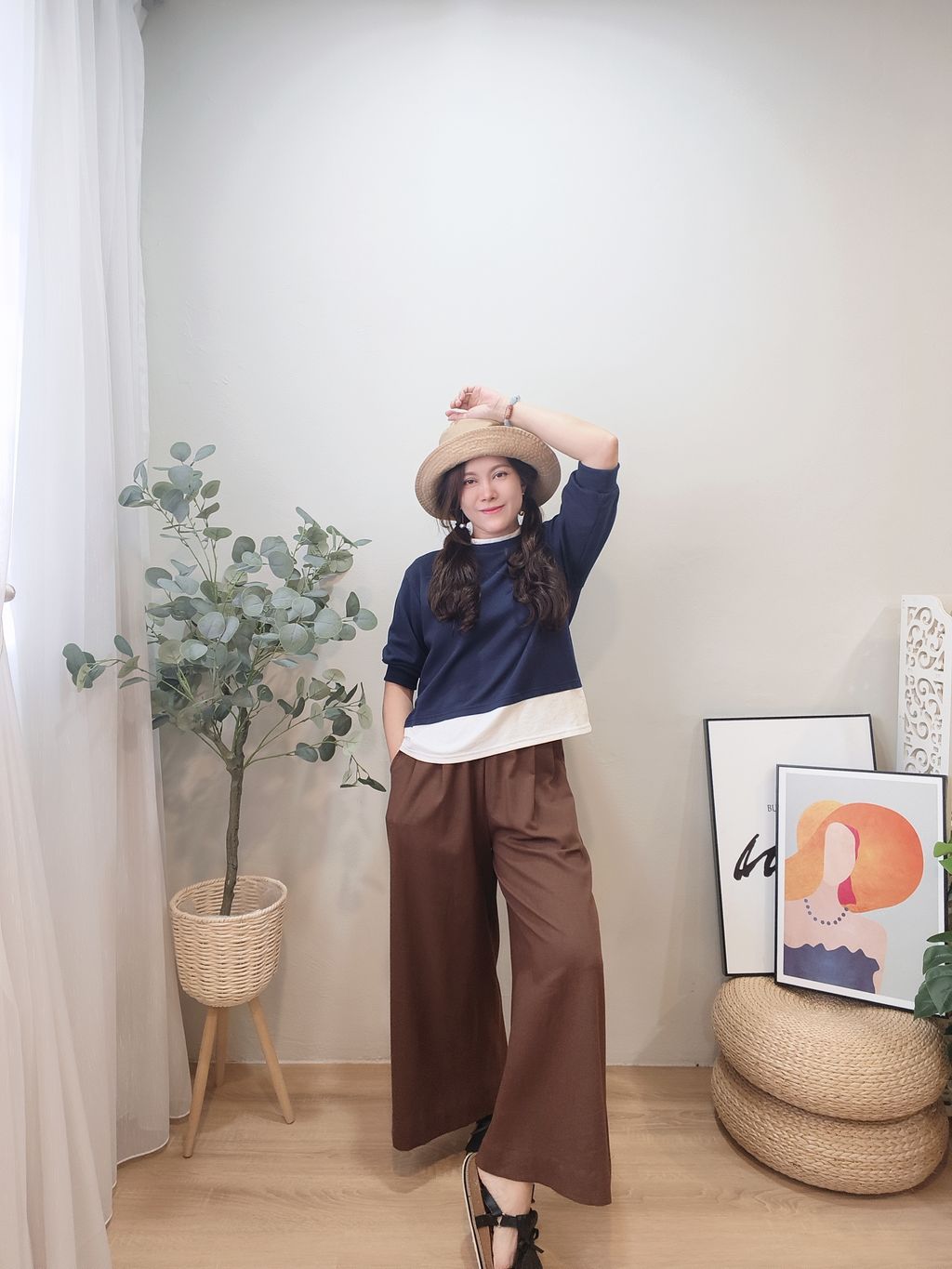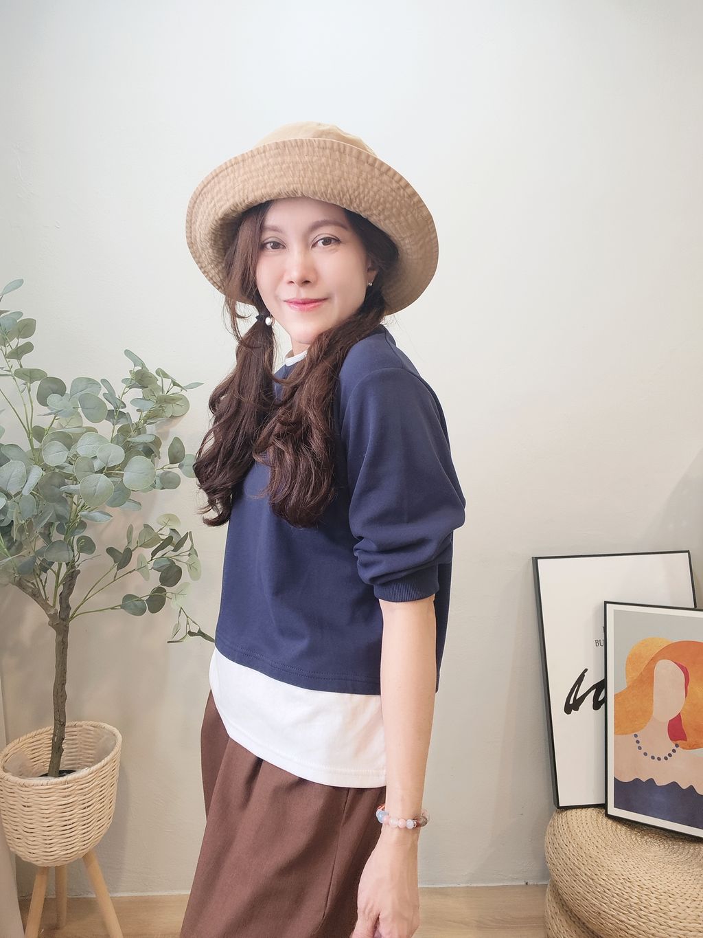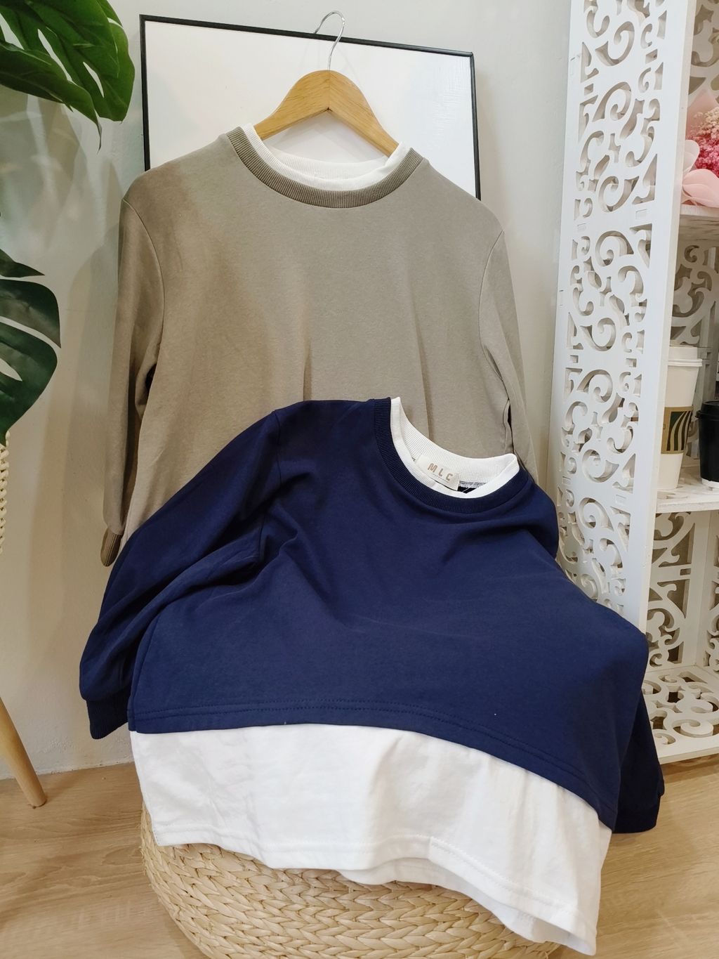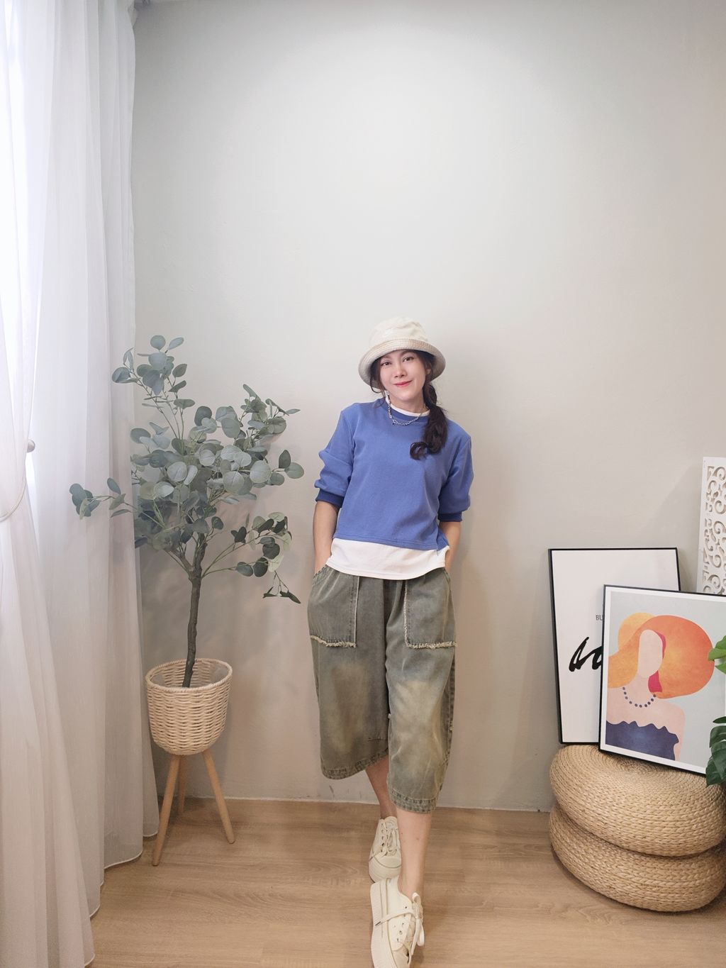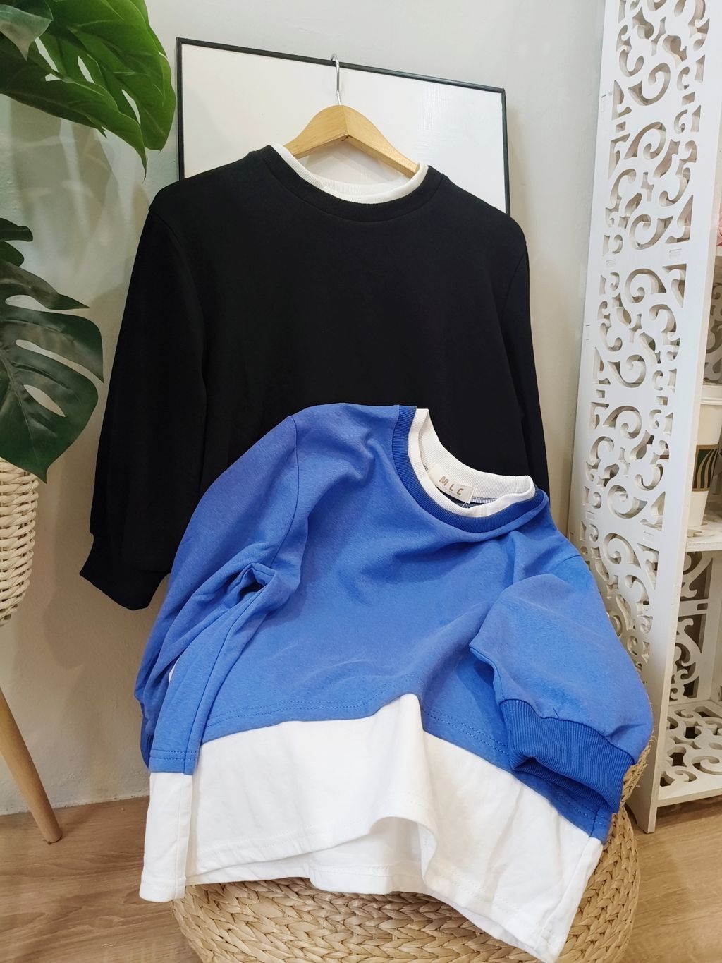 2-Tone Casual Tee 双色拼接4分袖上衣