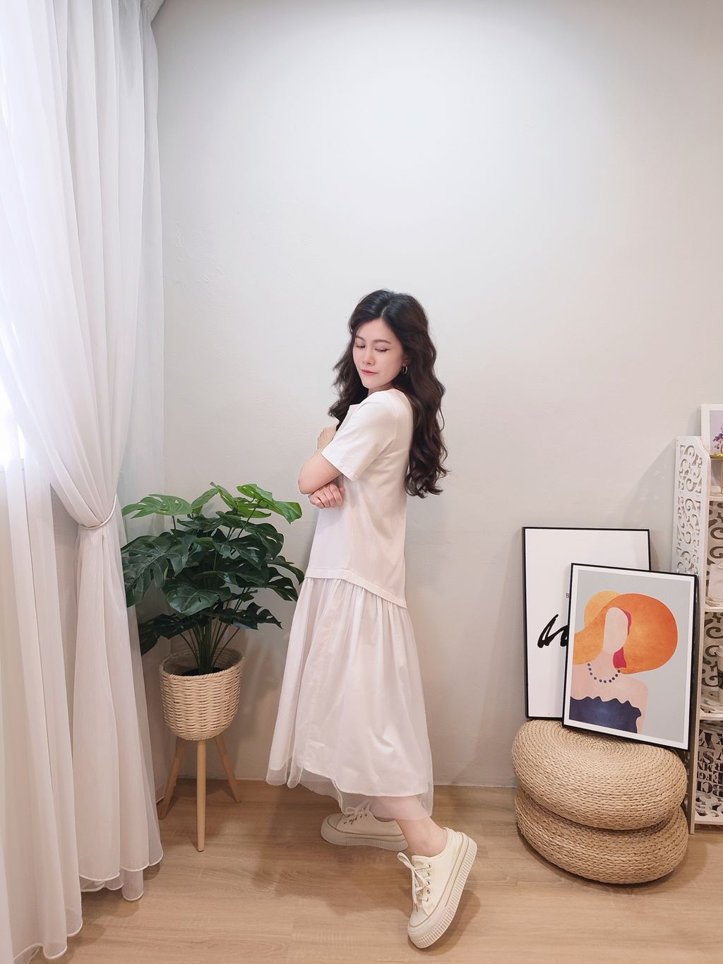 Material: Soft Washed Cotton 洗水棉拼接网纱