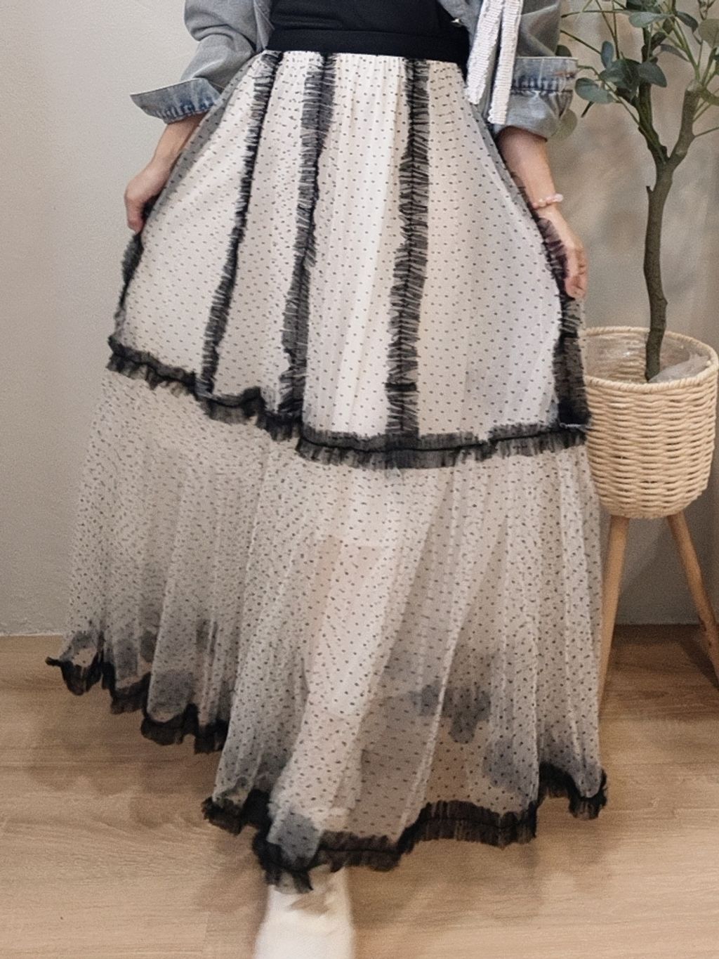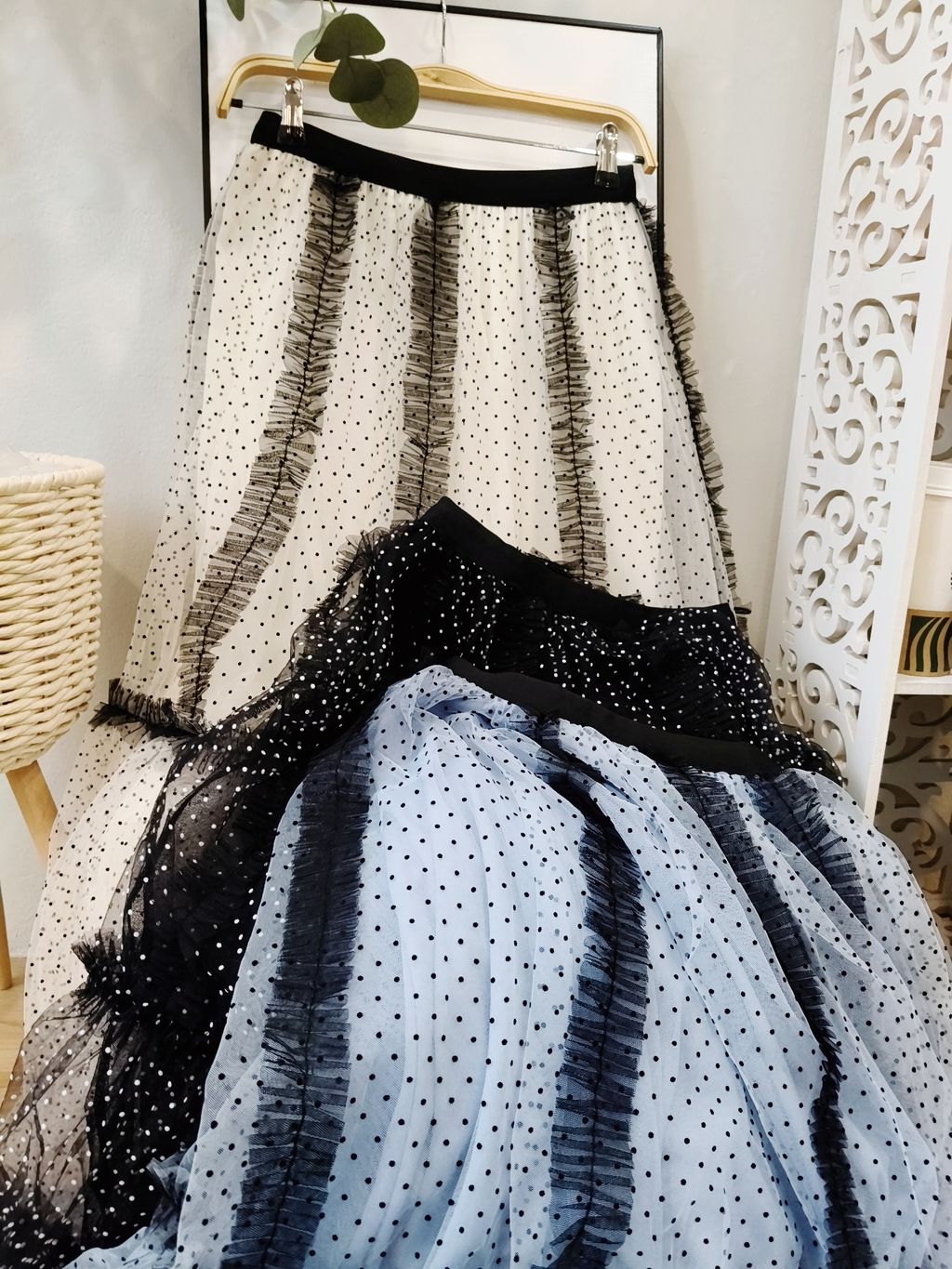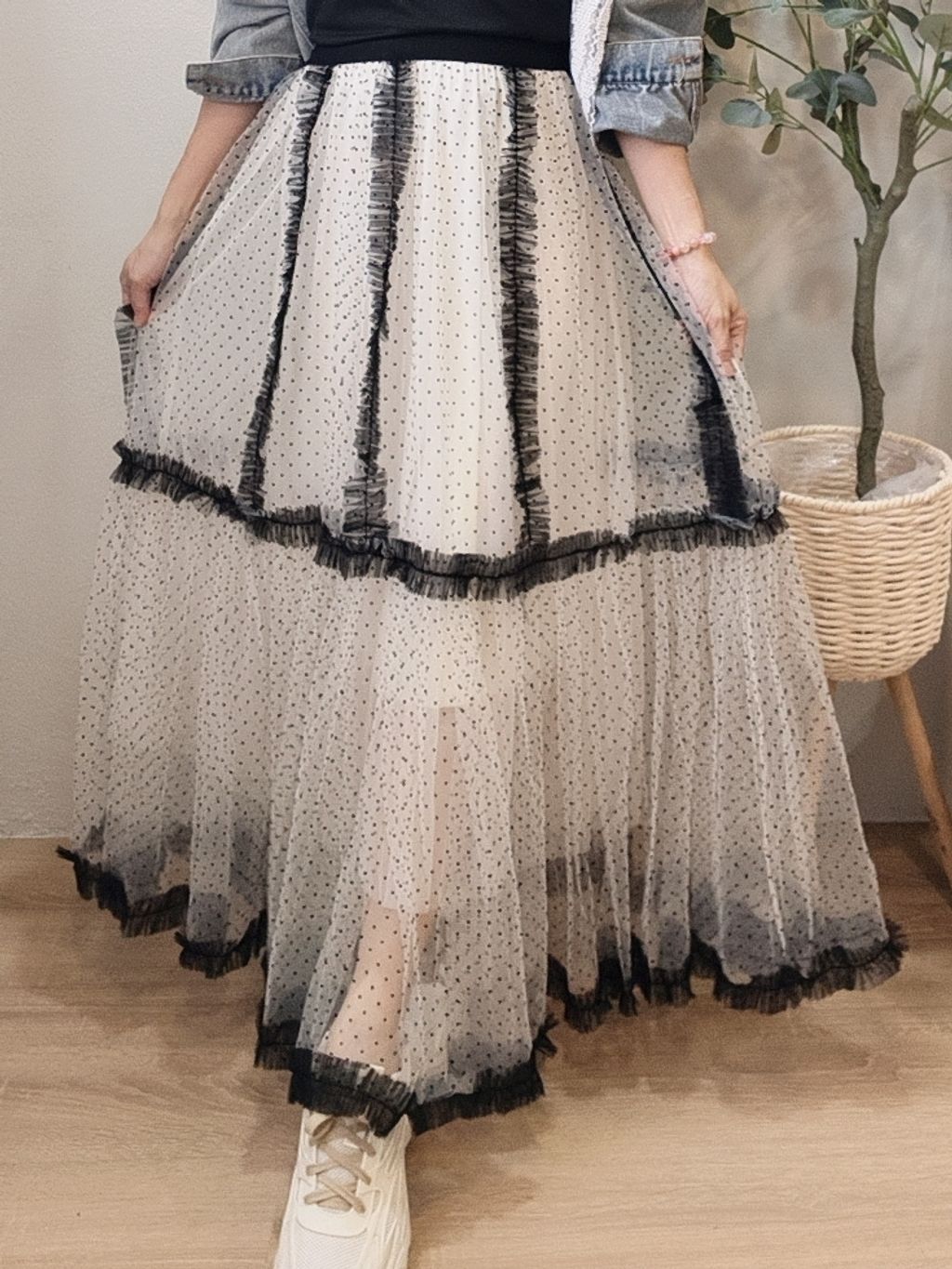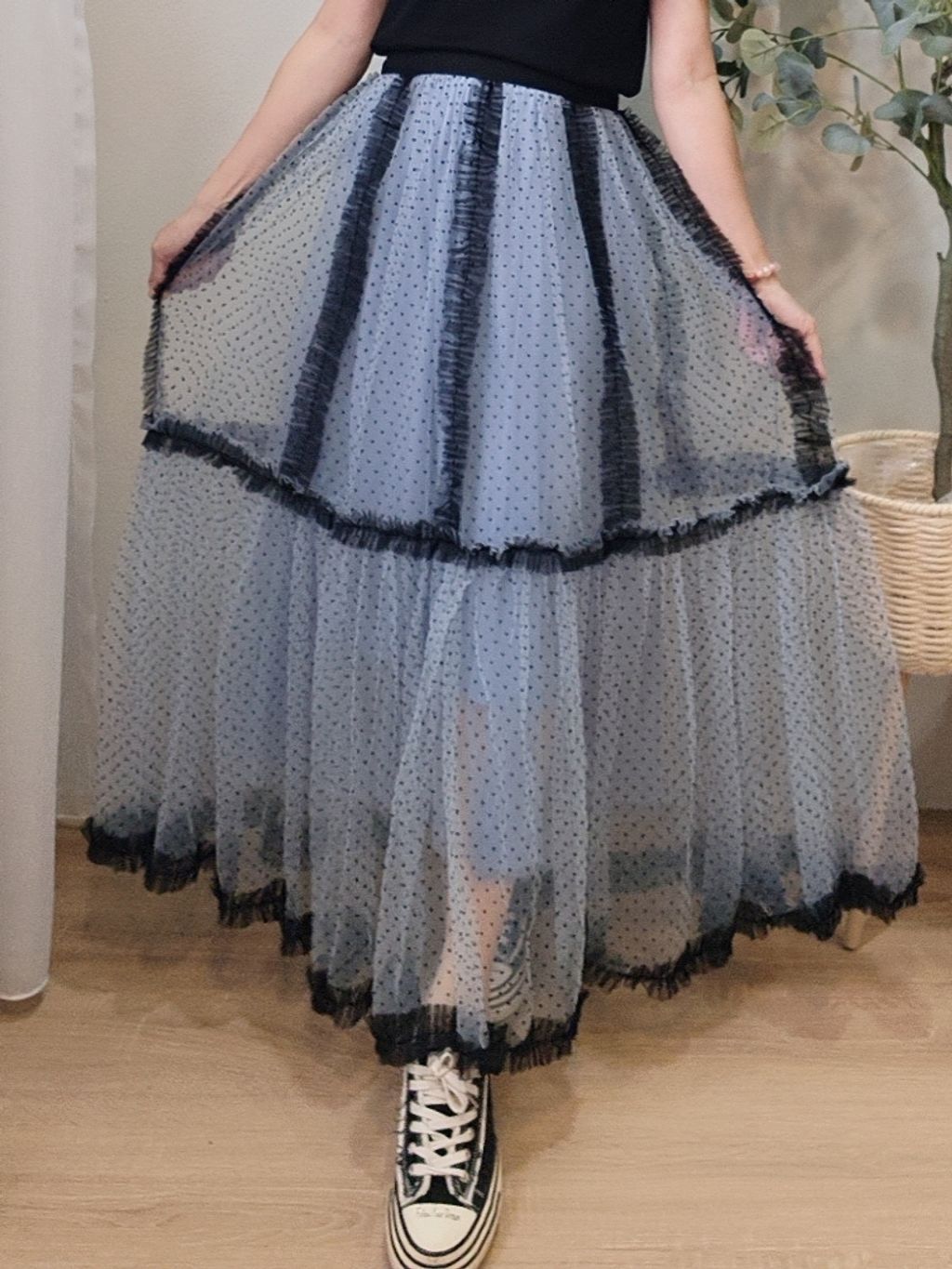 Airflow Edit Mesh Skirt 轻盈飘逸波点薄纱裙