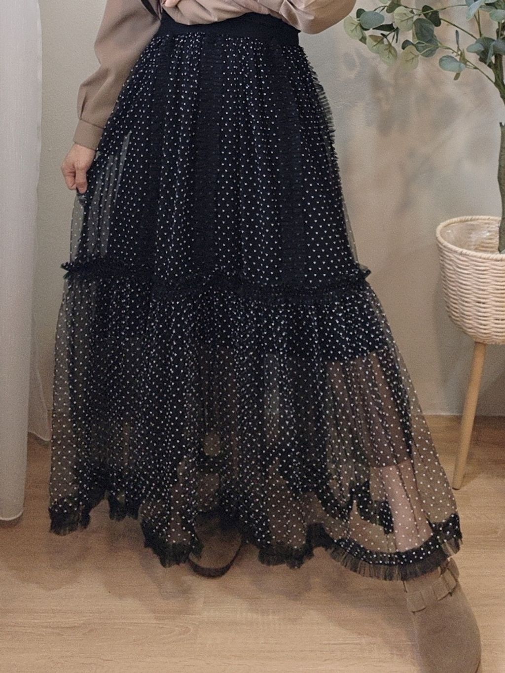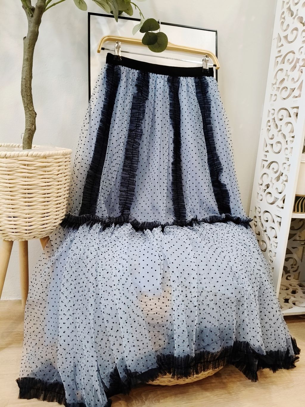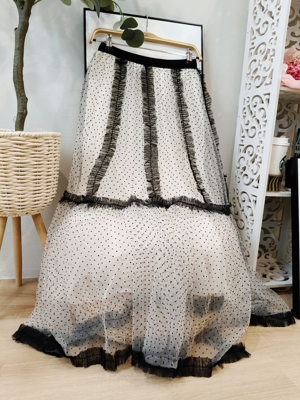 Airflow Edit Mesh Skirt 轻盈飘逸波点薄纱裙