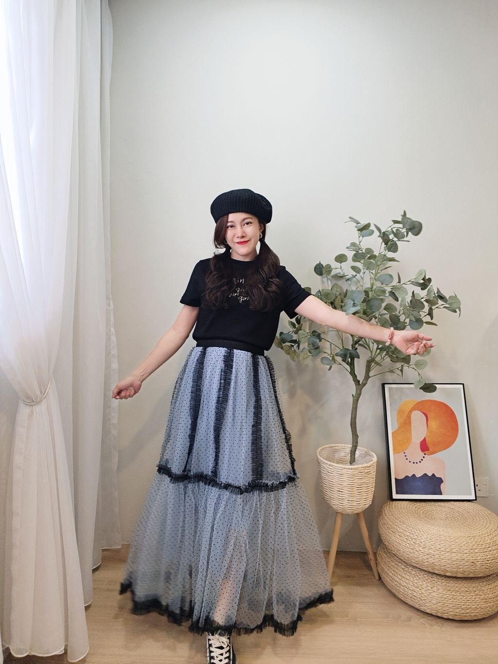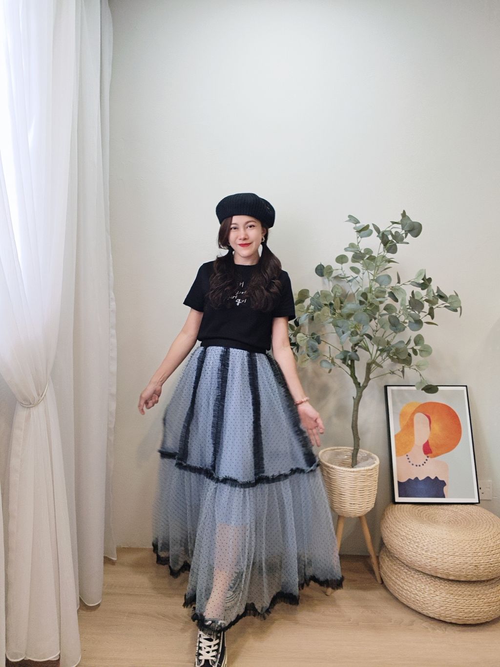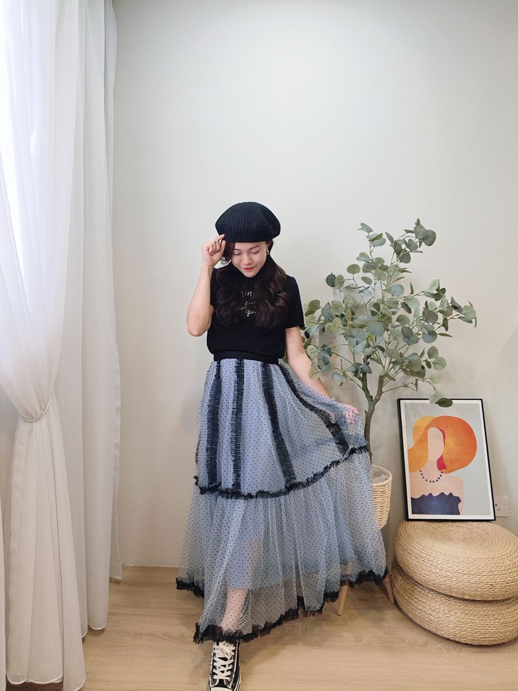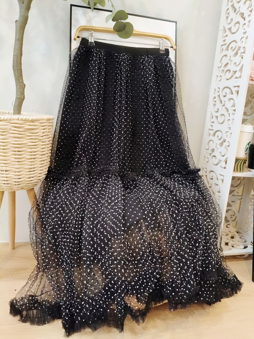 Airflow Edit Mesh Skirt 轻盈飘逸波点薄纱裙