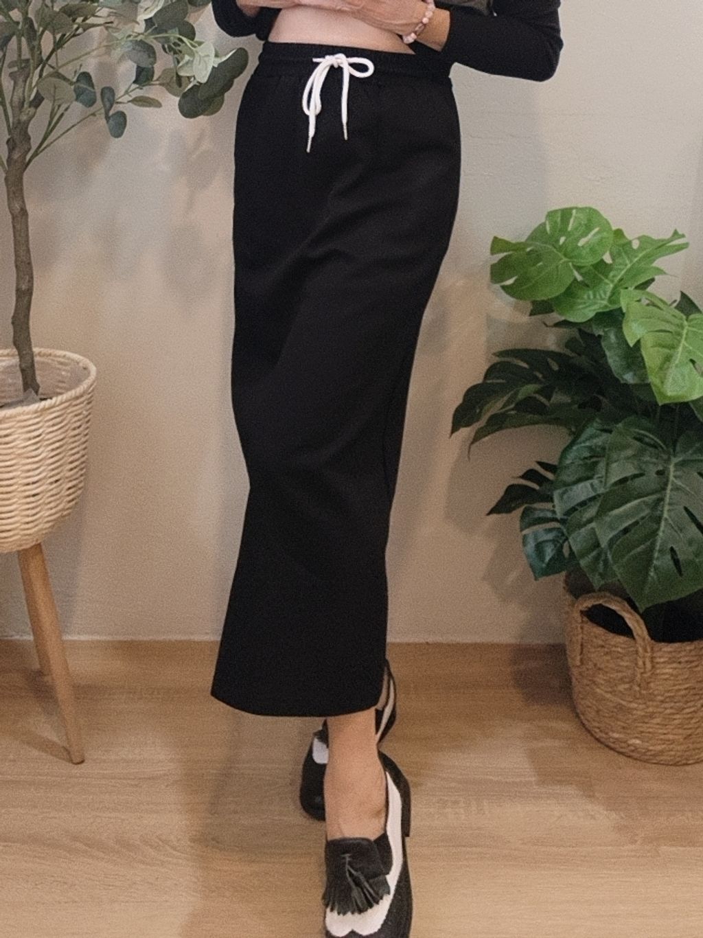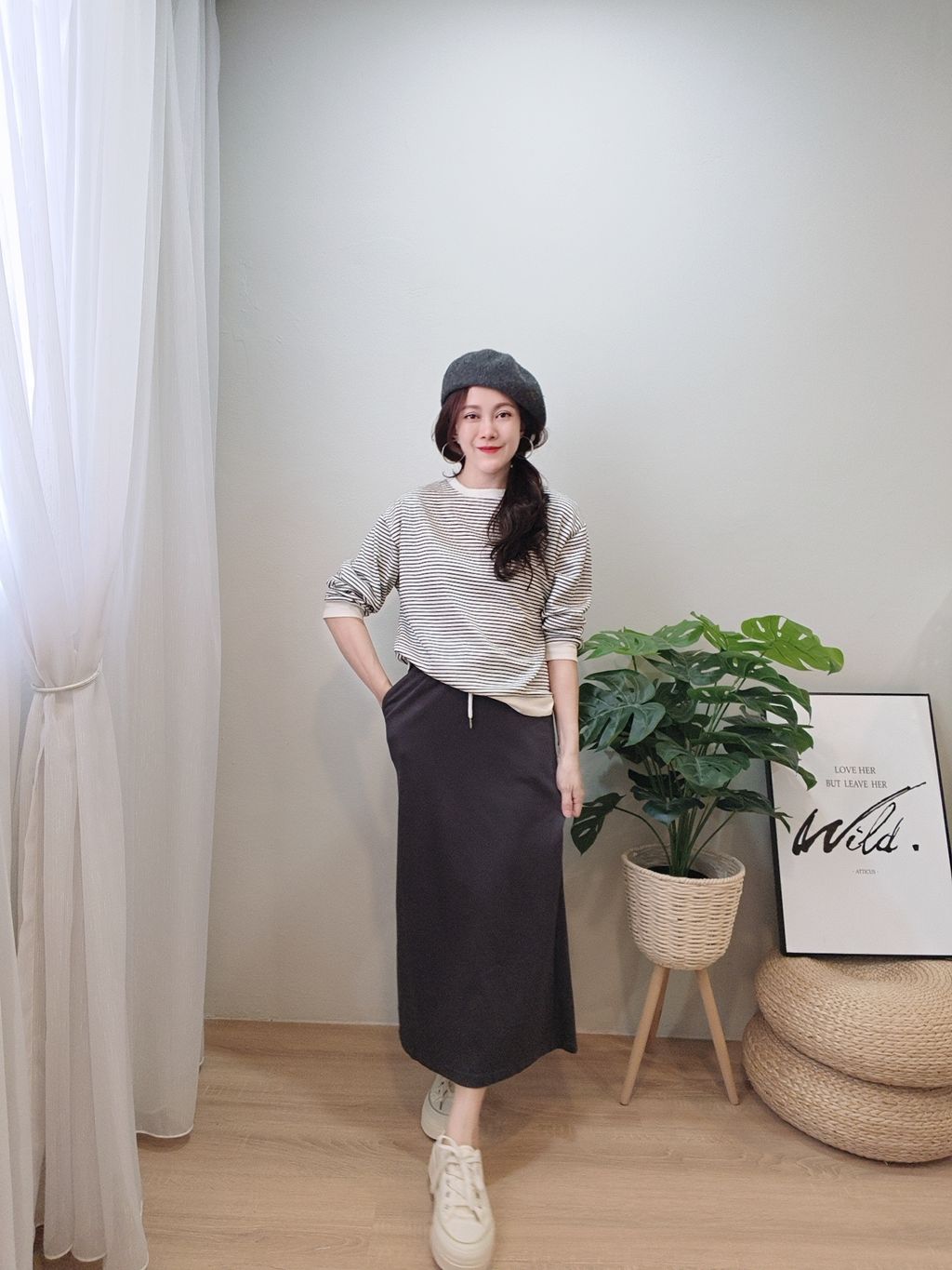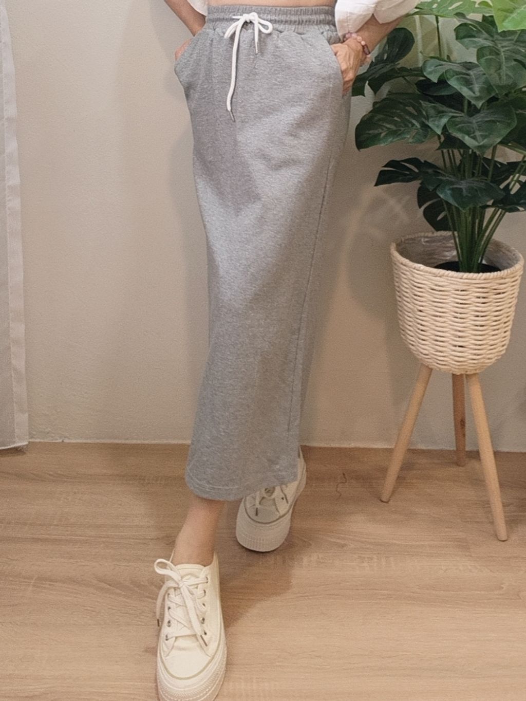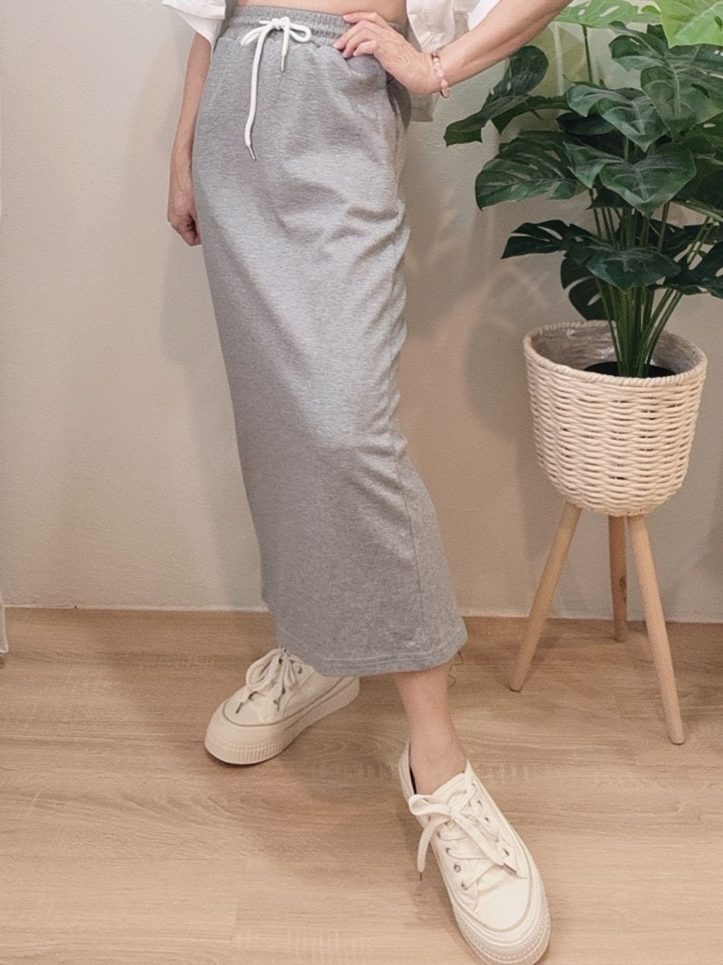 Casual Midi Skirt With Tie Waist 系带运动风半裙
