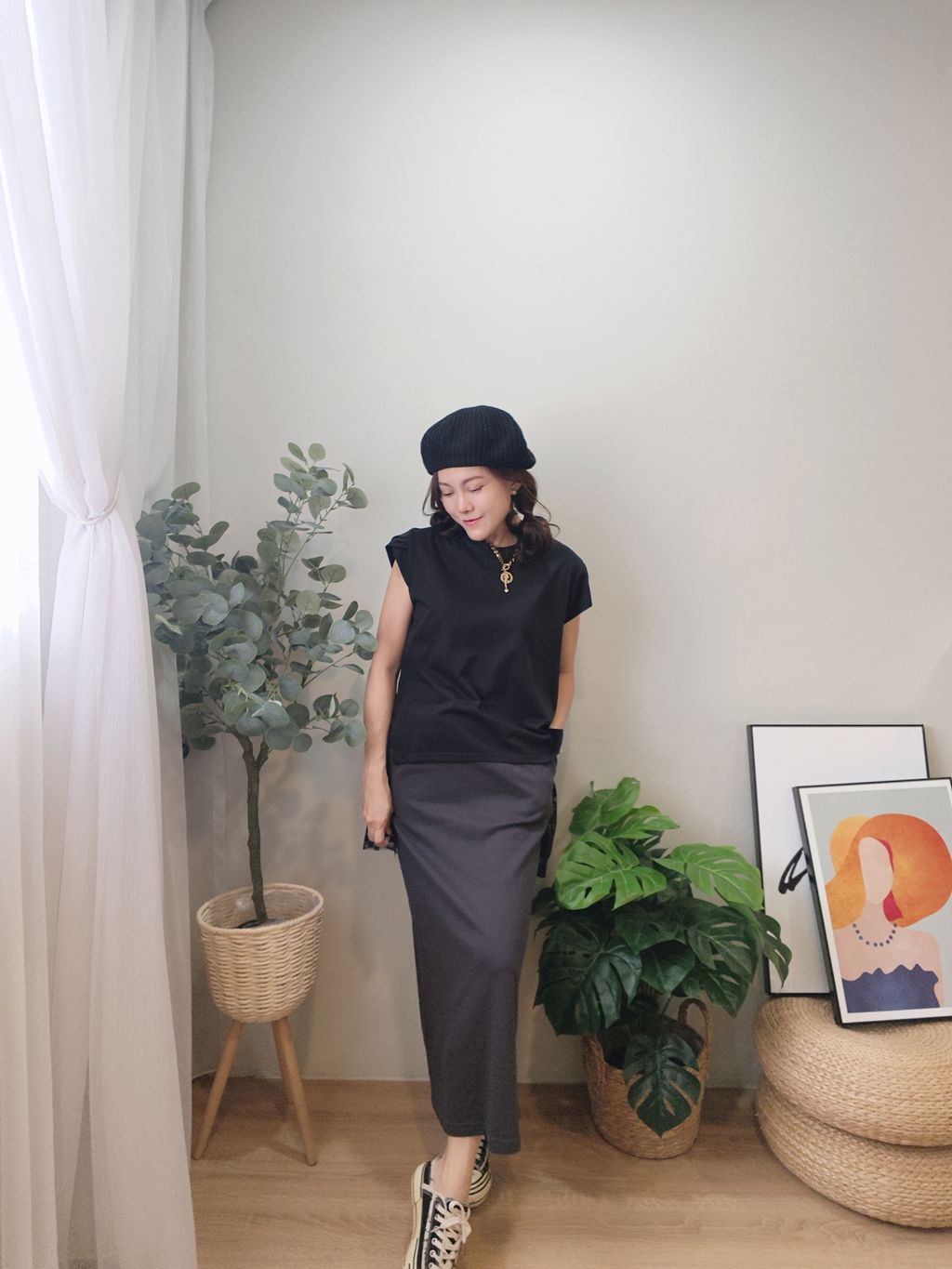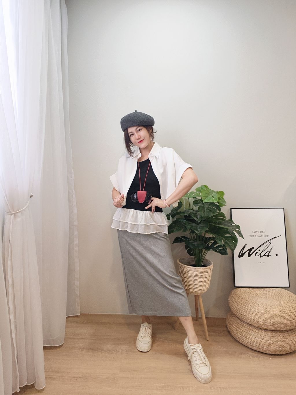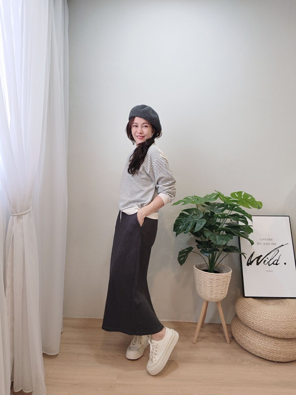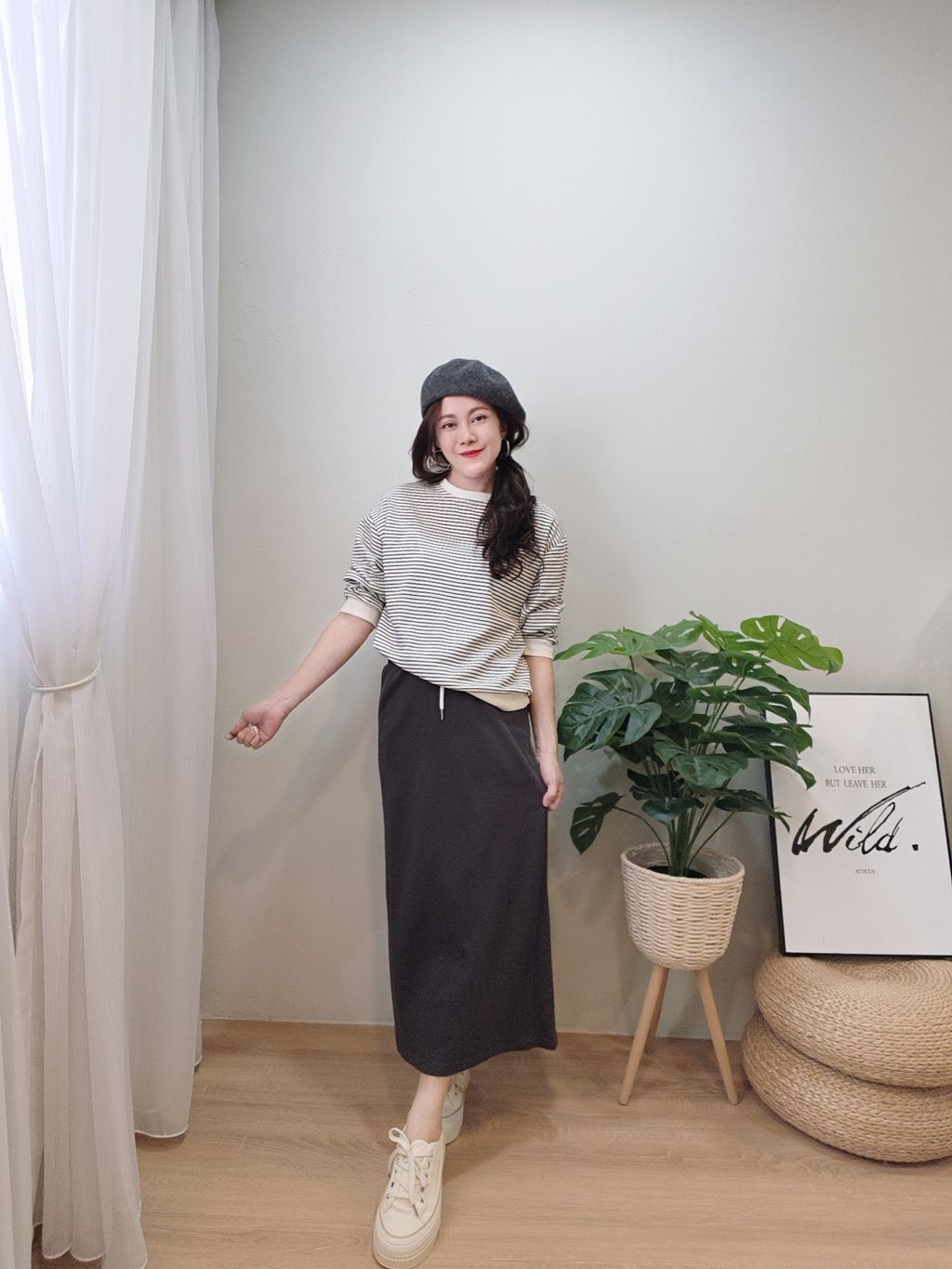 Casual Midi Skirt With Tie Waist 系带运动风半裙