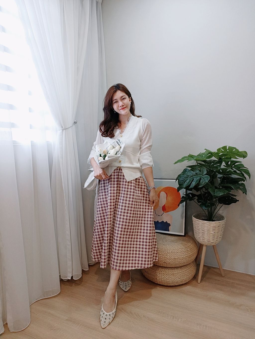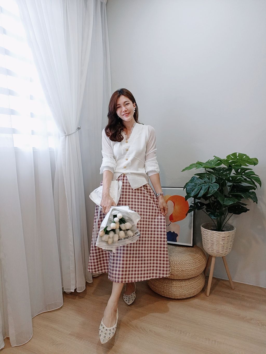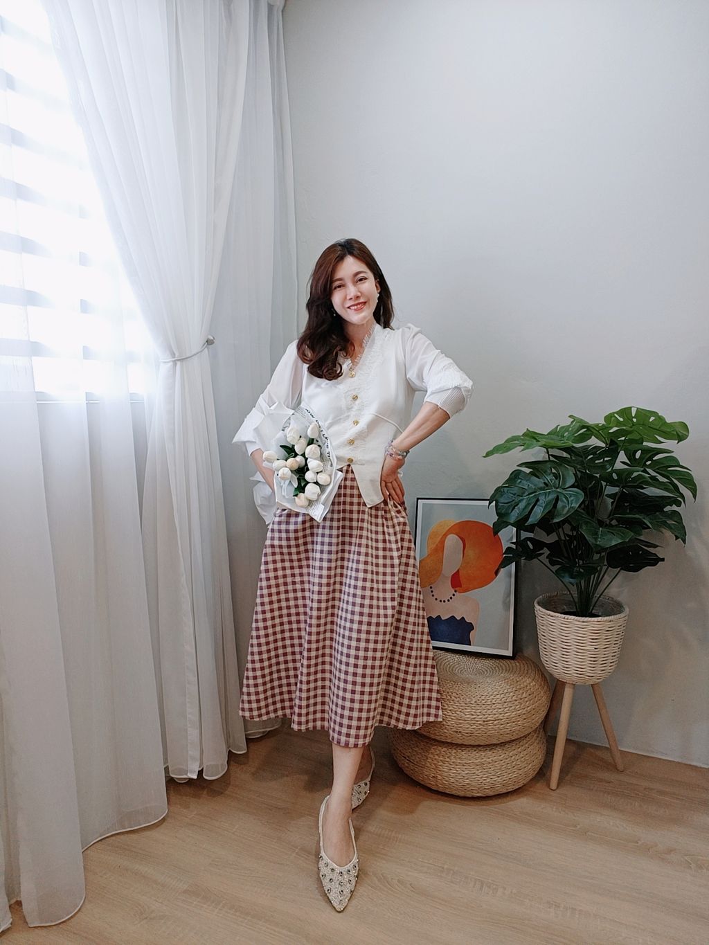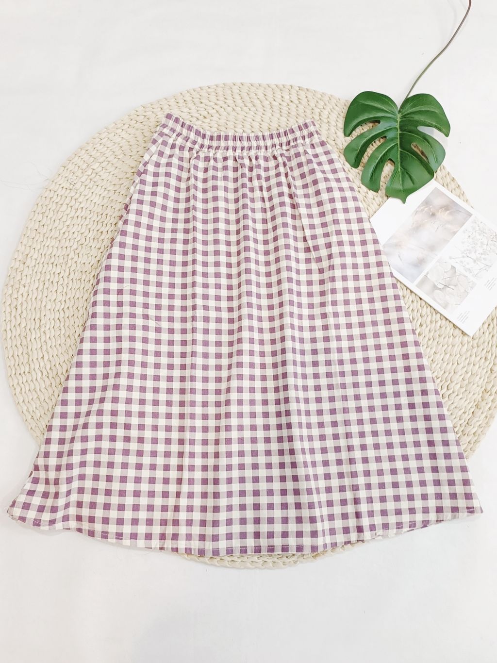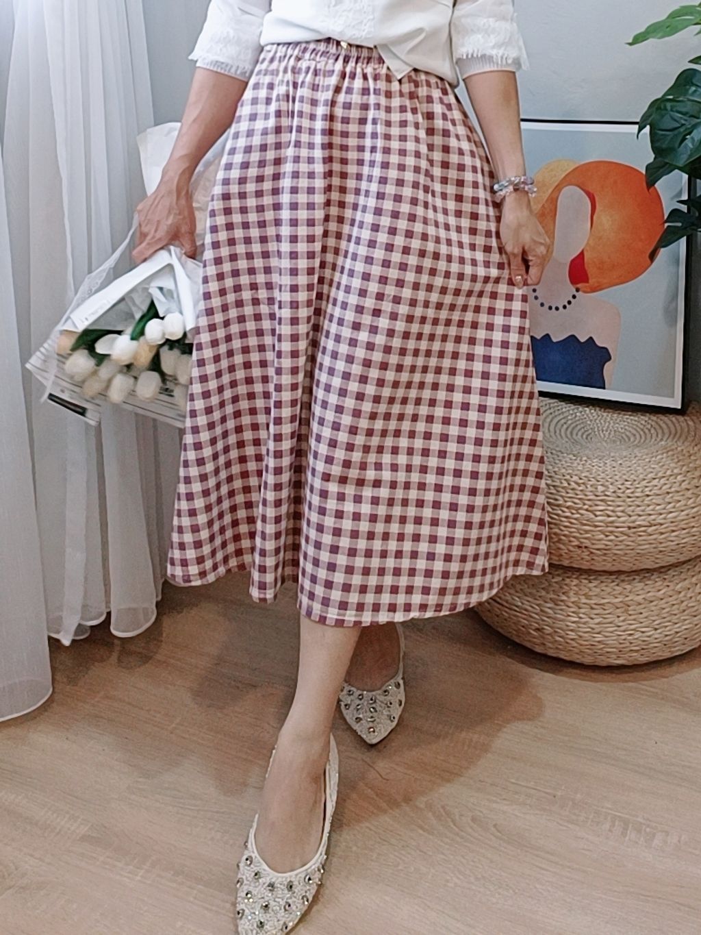 Plaid Printed Linen A-Line Skirt 休闲格纹半裙