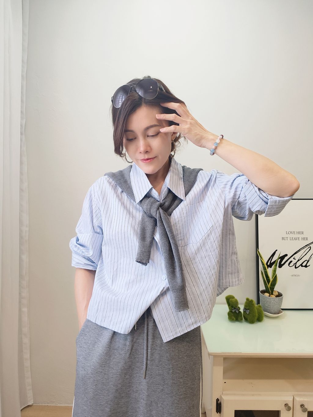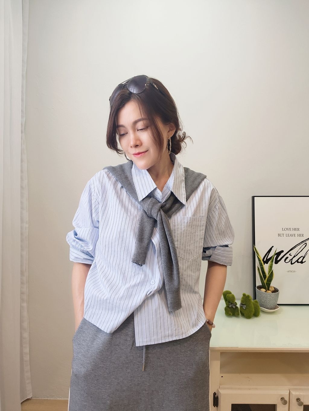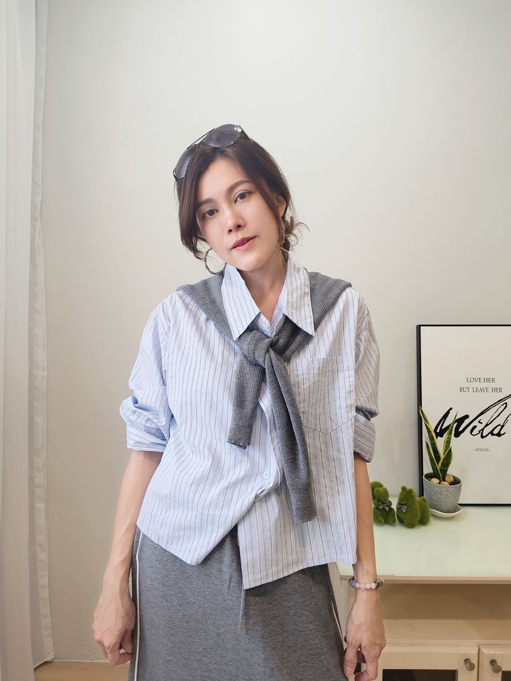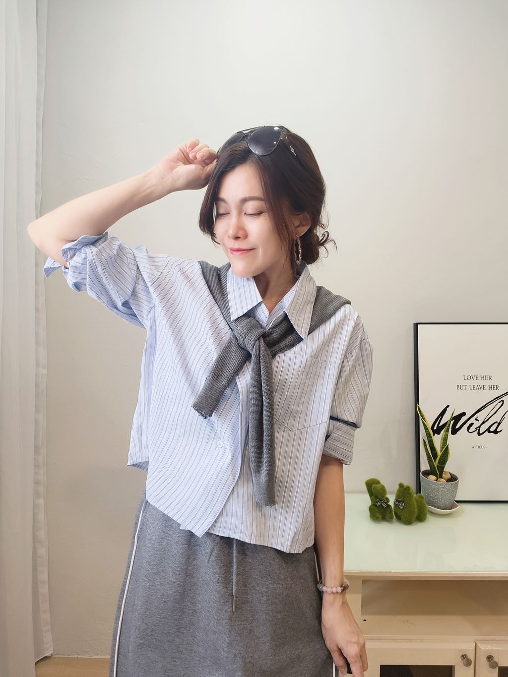 Layered Stripe Cropped Shirt 个性层次条纹短版衬衫