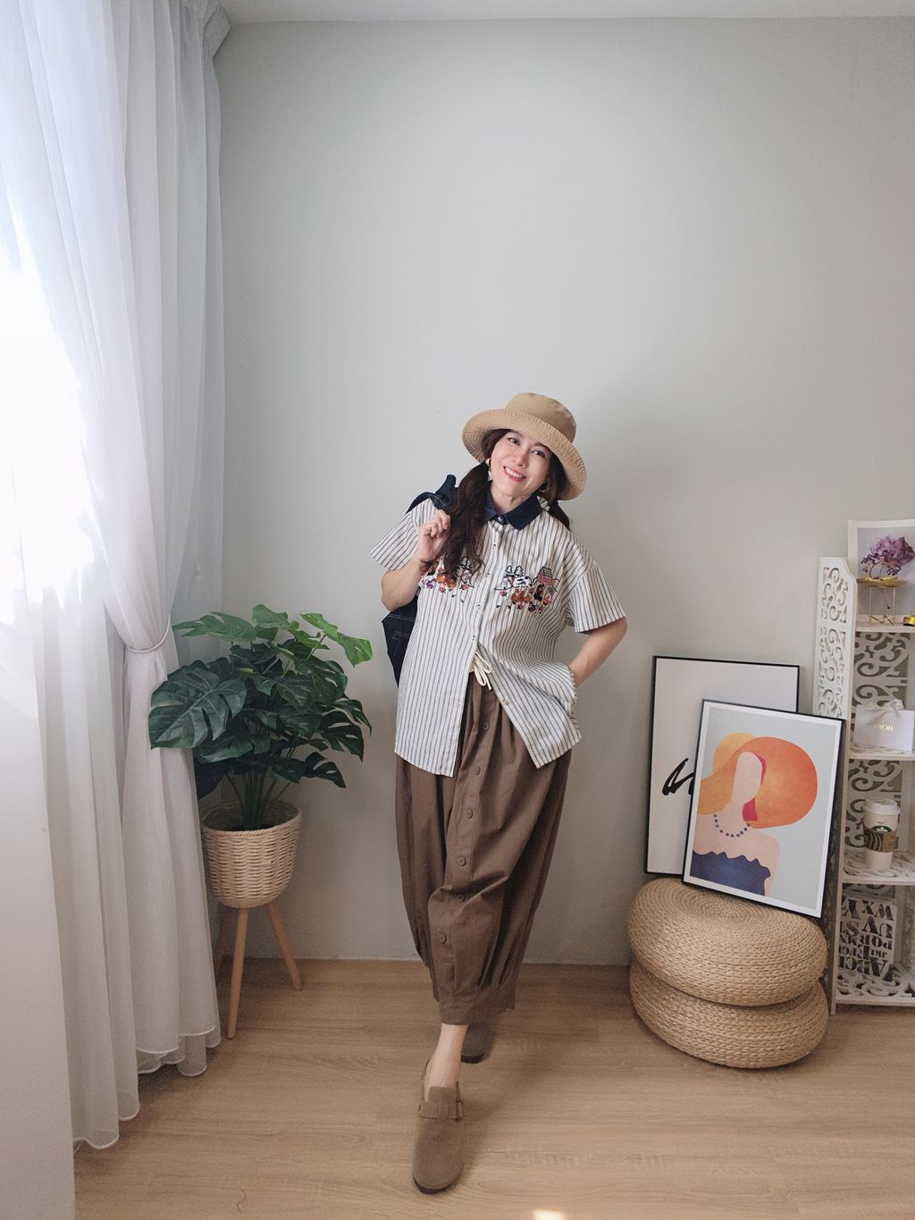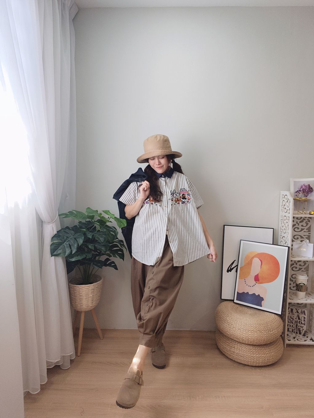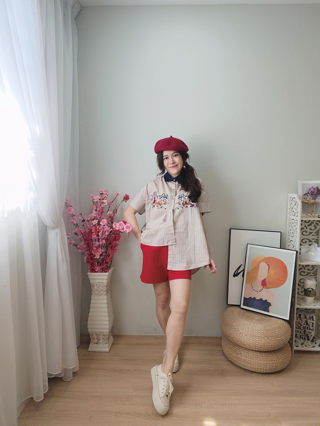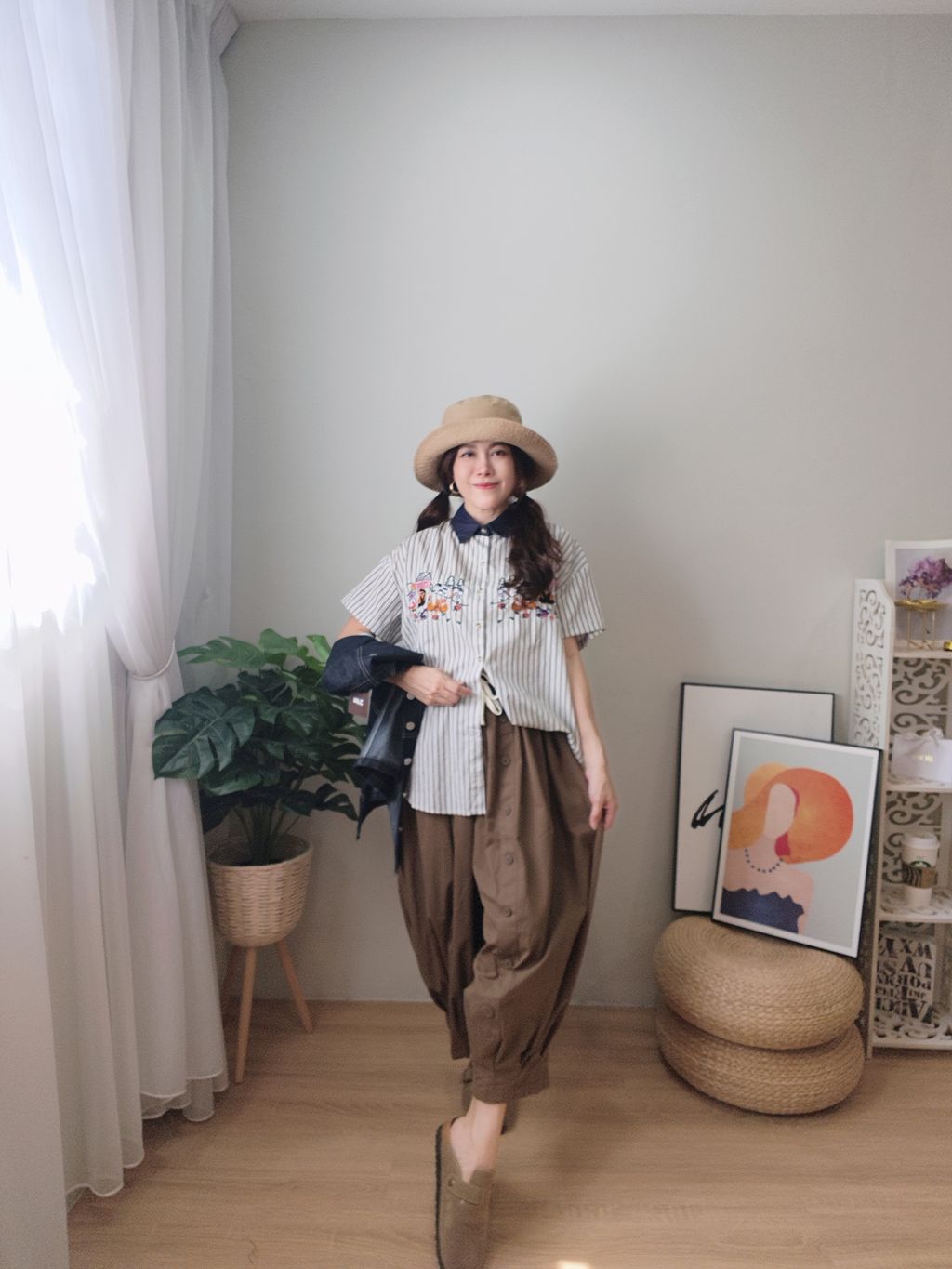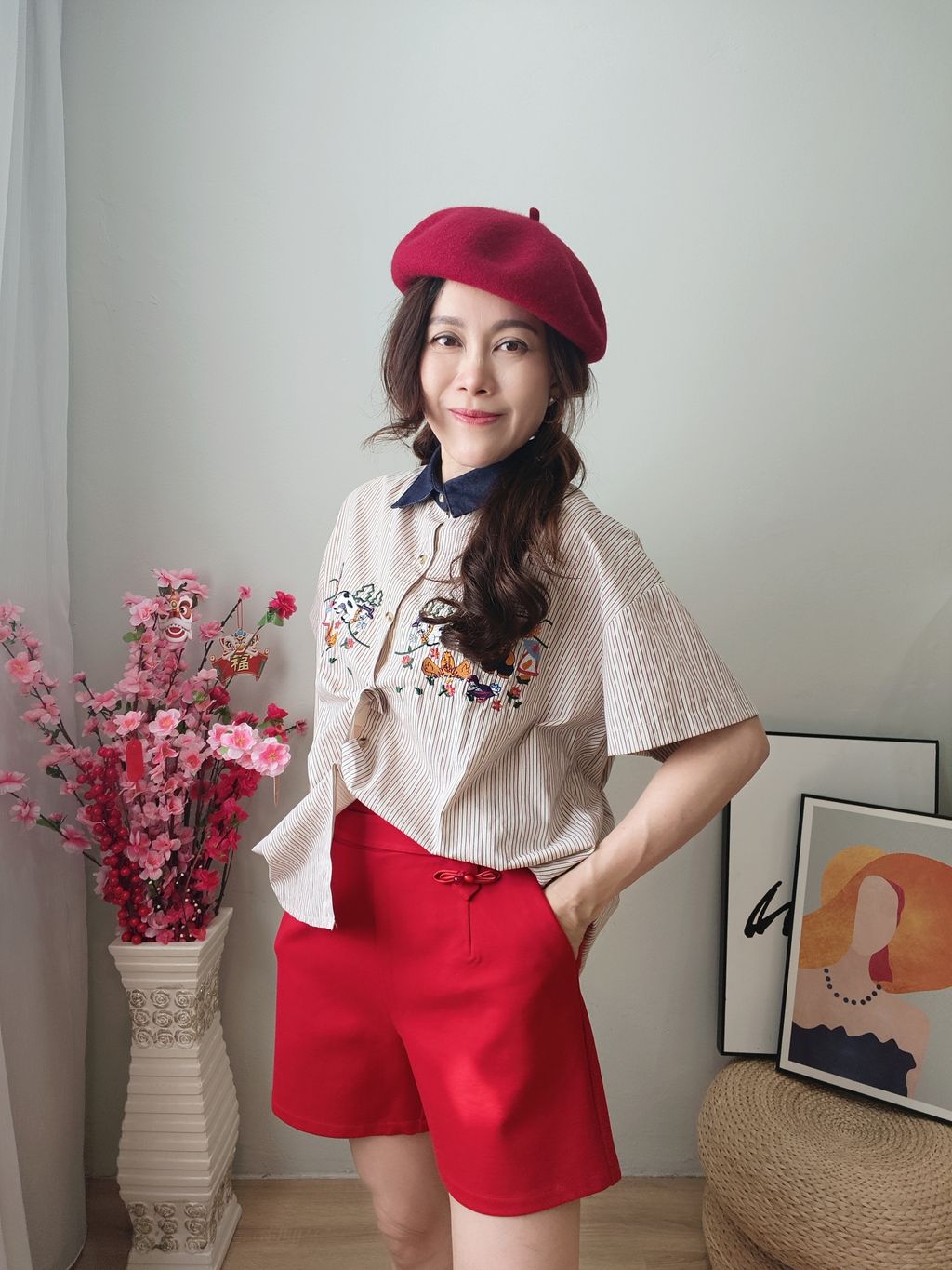 Embroidered Striped Patchwork Denim Collar Shirt 刺绣条纹拼接牛仔领口衬衫