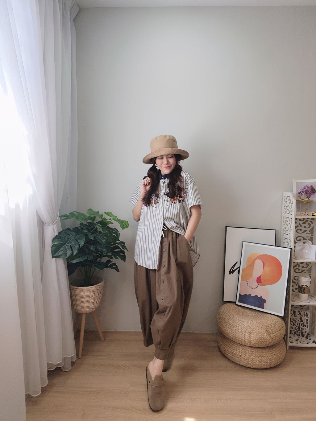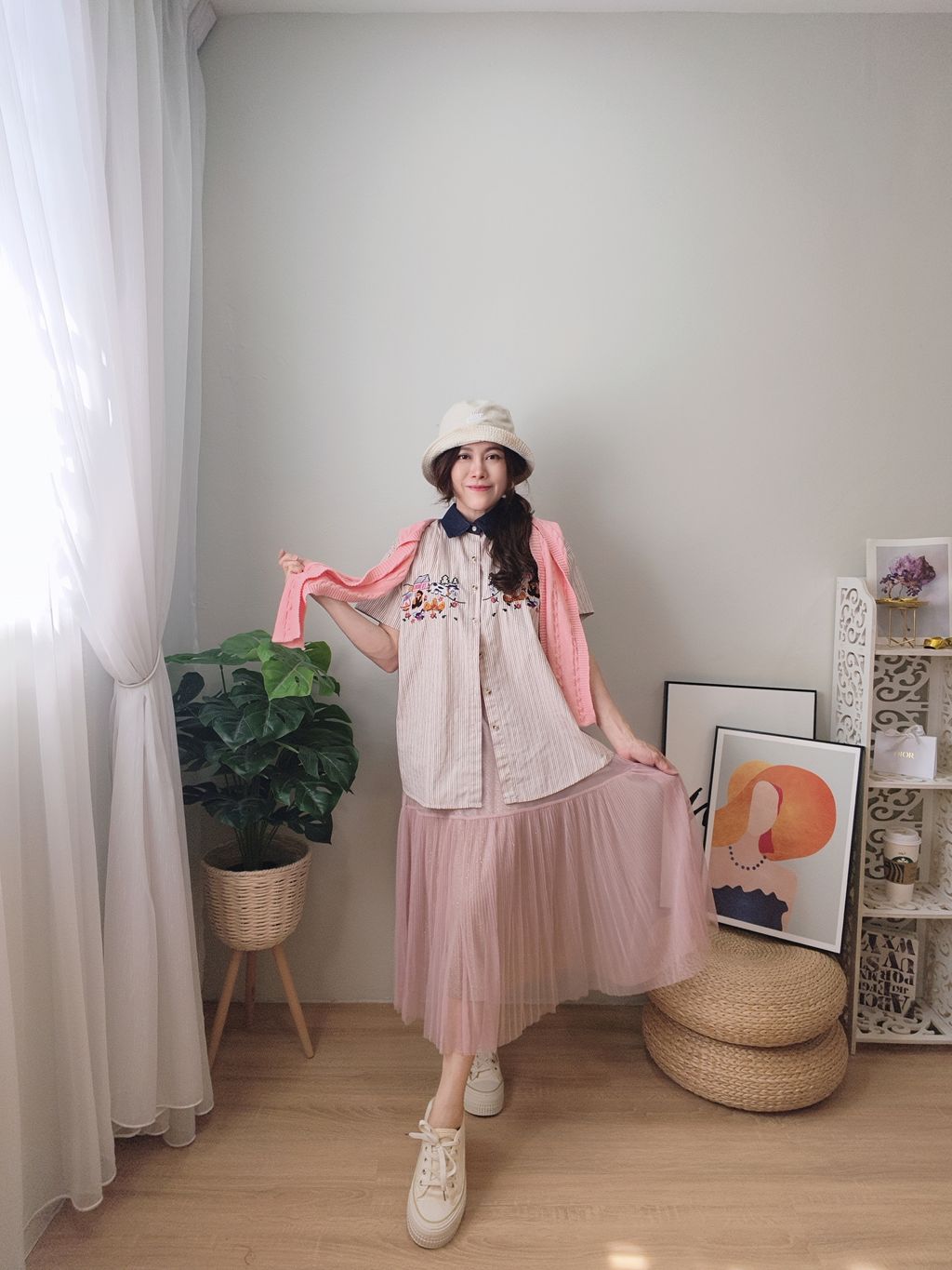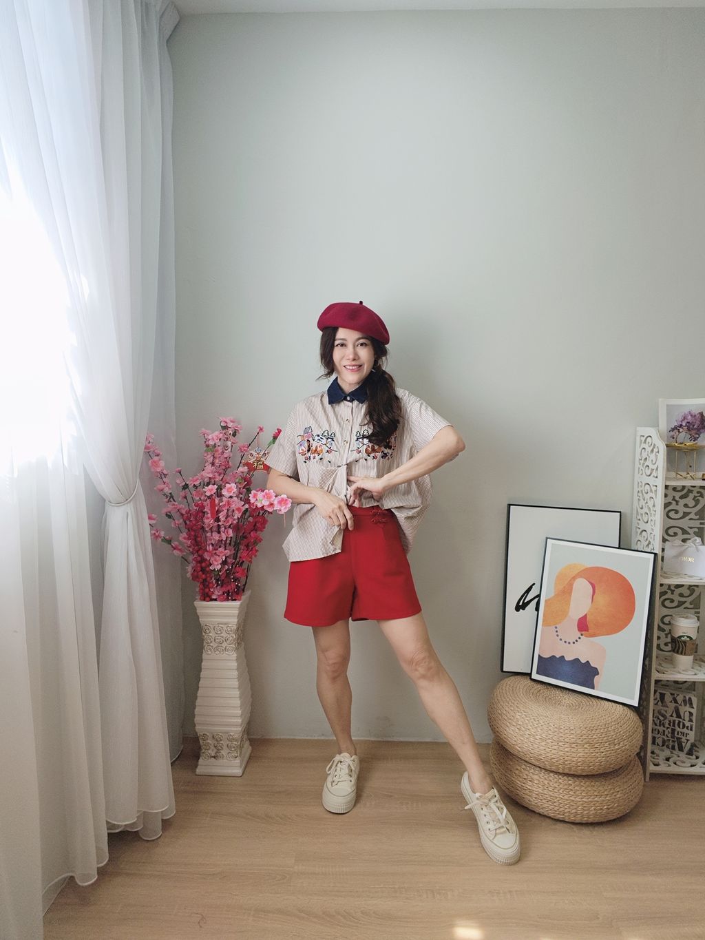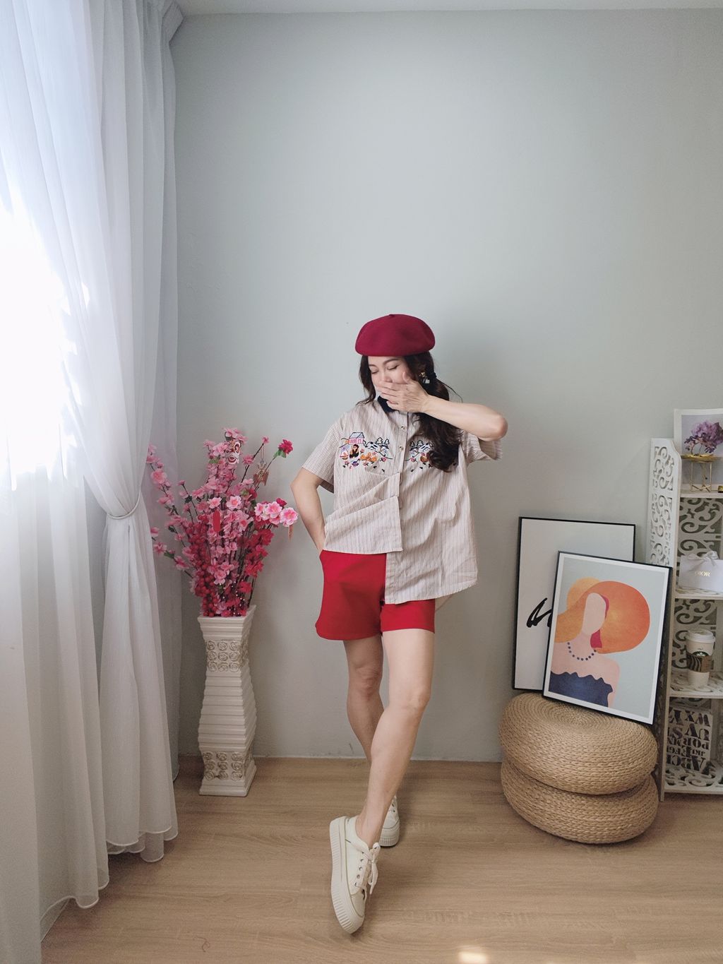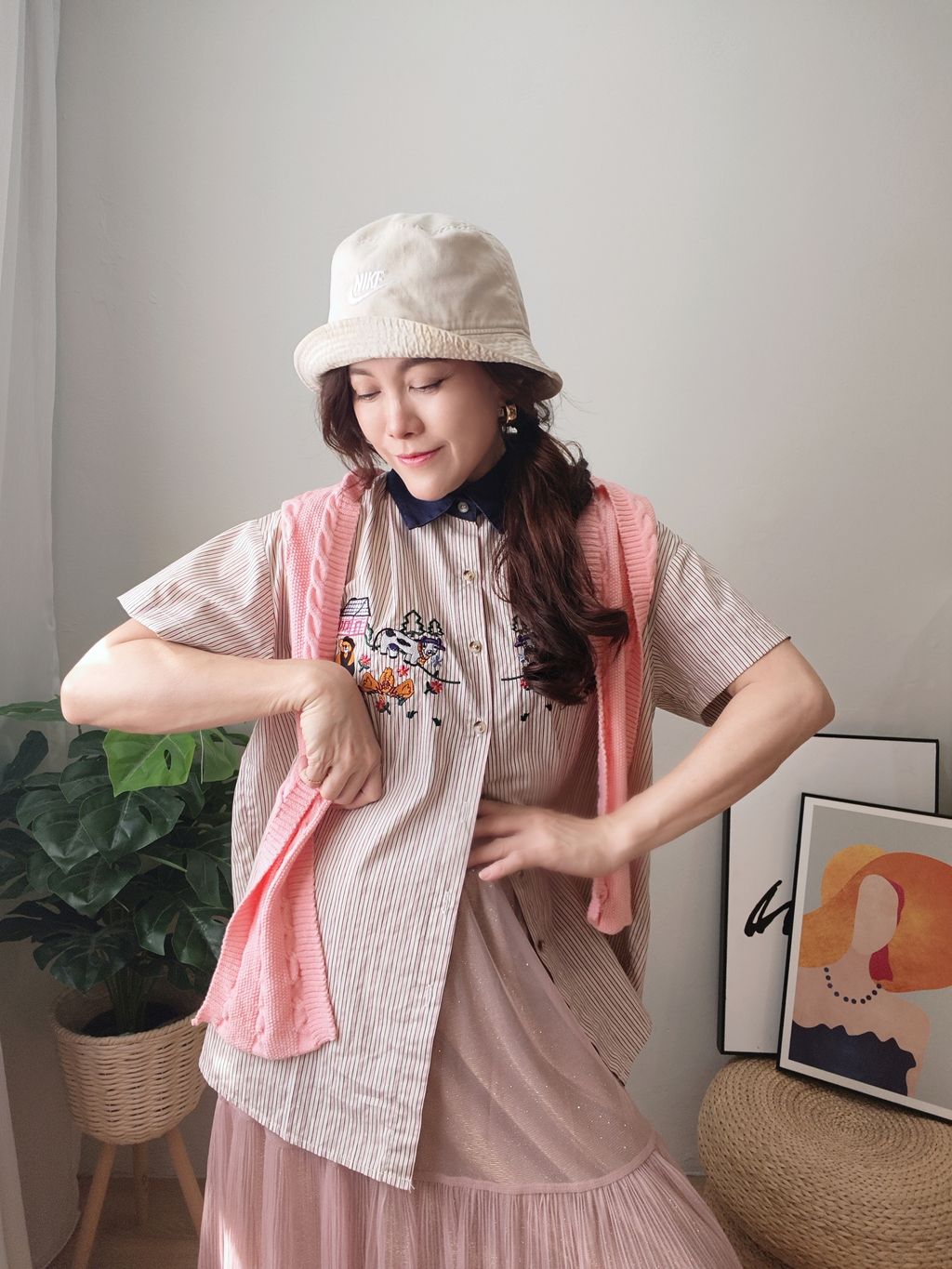 Embroidered Striped Patchwork Denim Collar Shirt 刺绣条纹拼接牛仔领口衬衫