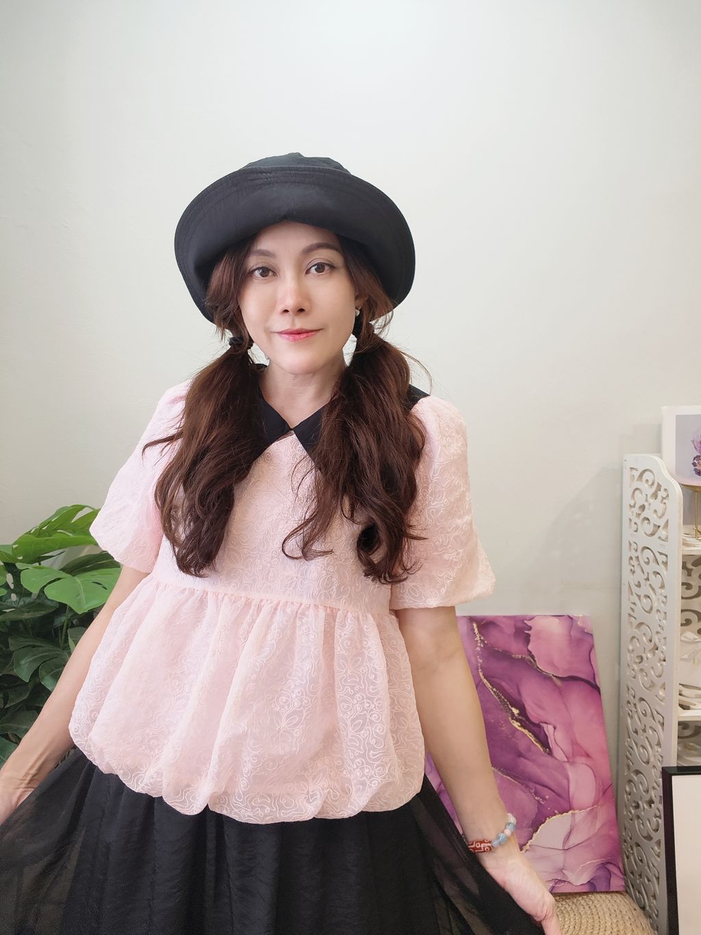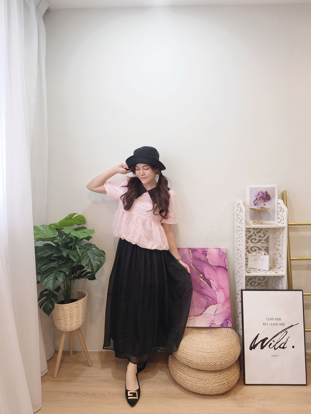 Chic Colorblock Lace Blouse甜美撞色蕾丝蓬摆上衣