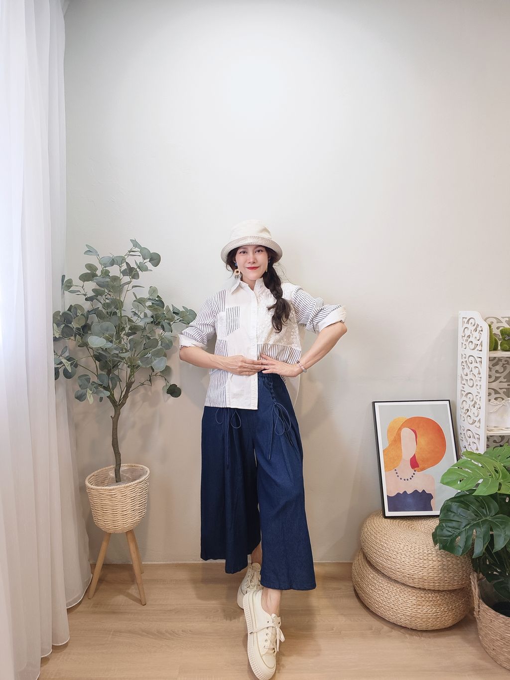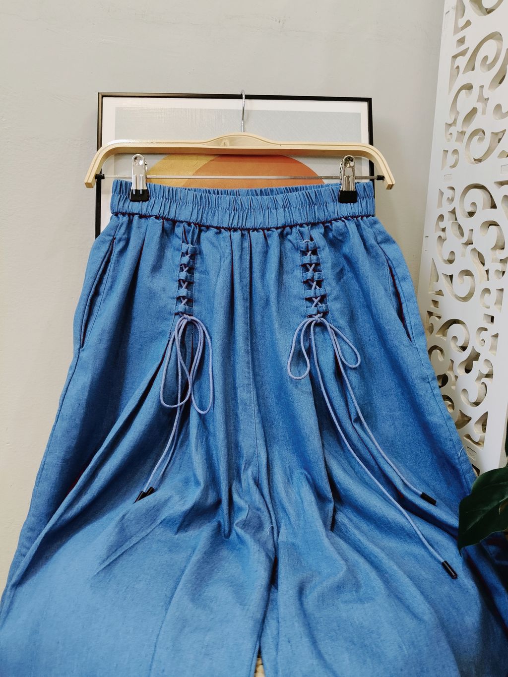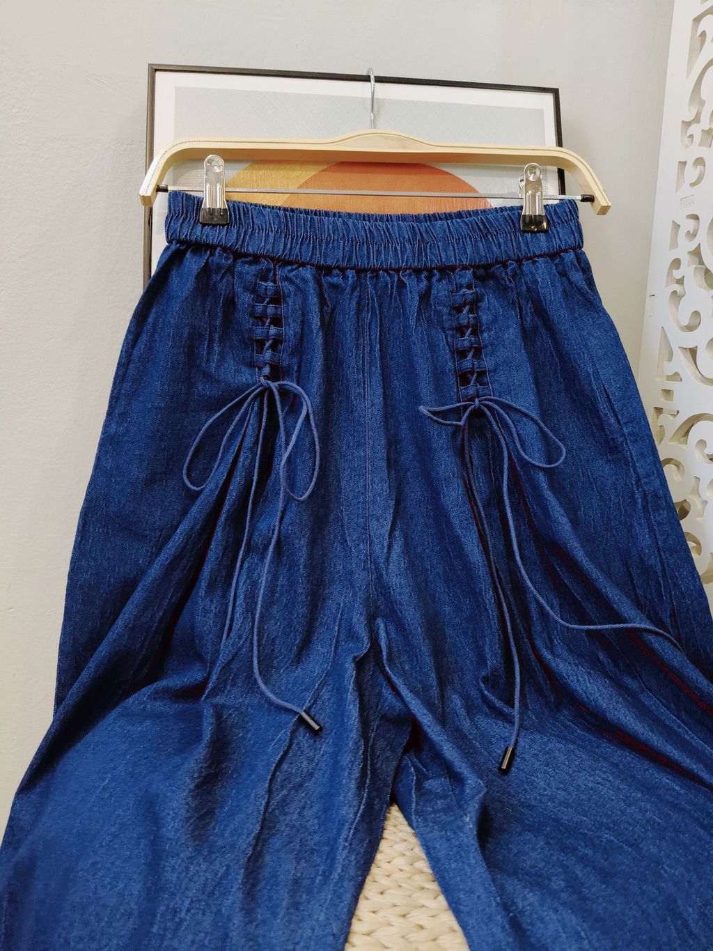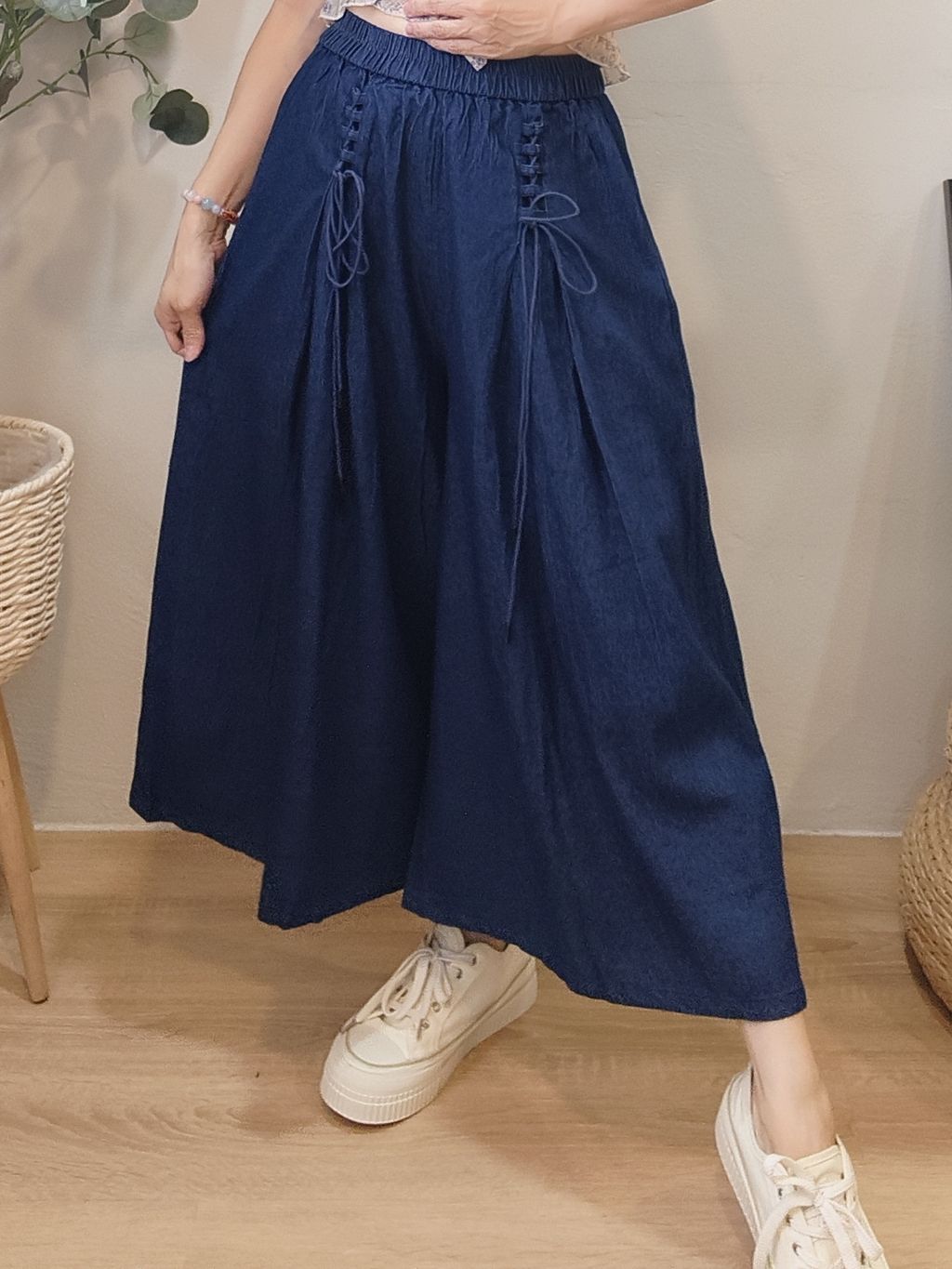 Casual Wide-Leg Denim with Braid Detail 休闲辫带牛仔宽脚裤