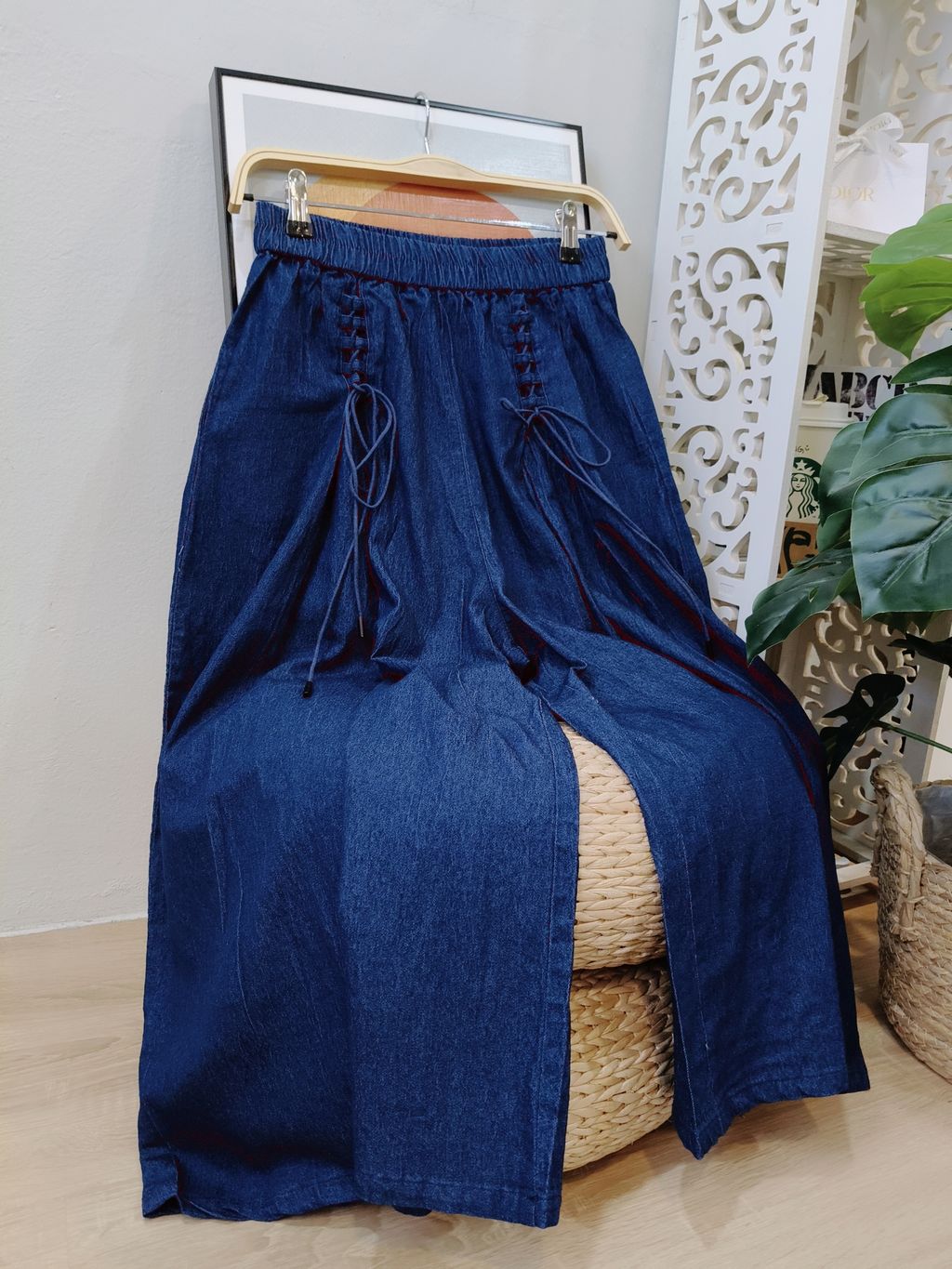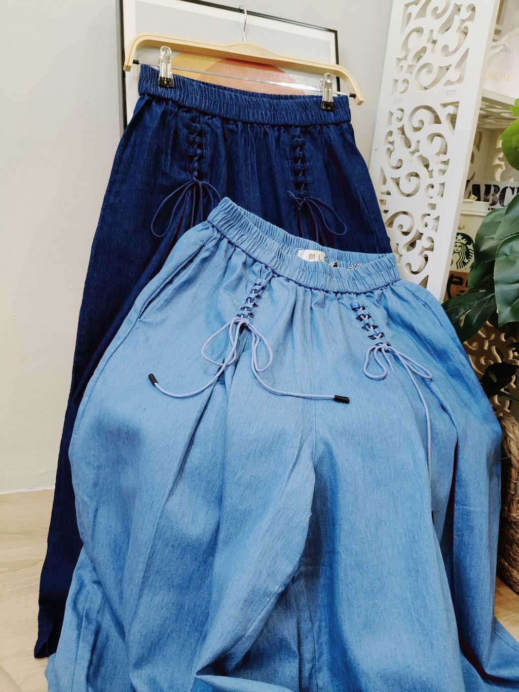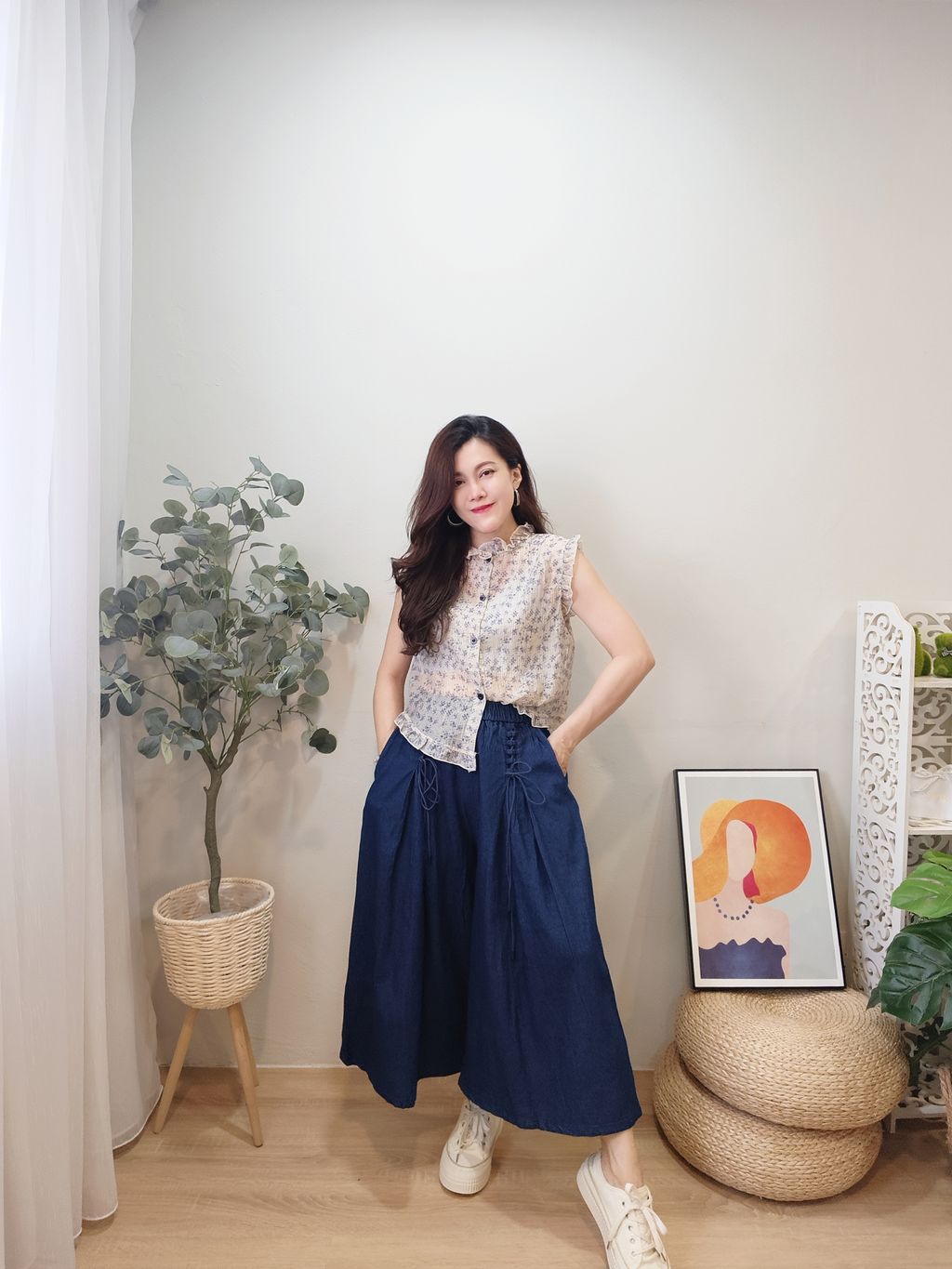 Casual Wide-Leg Denim with Braid Detail 休闲辫带牛仔宽脚裤