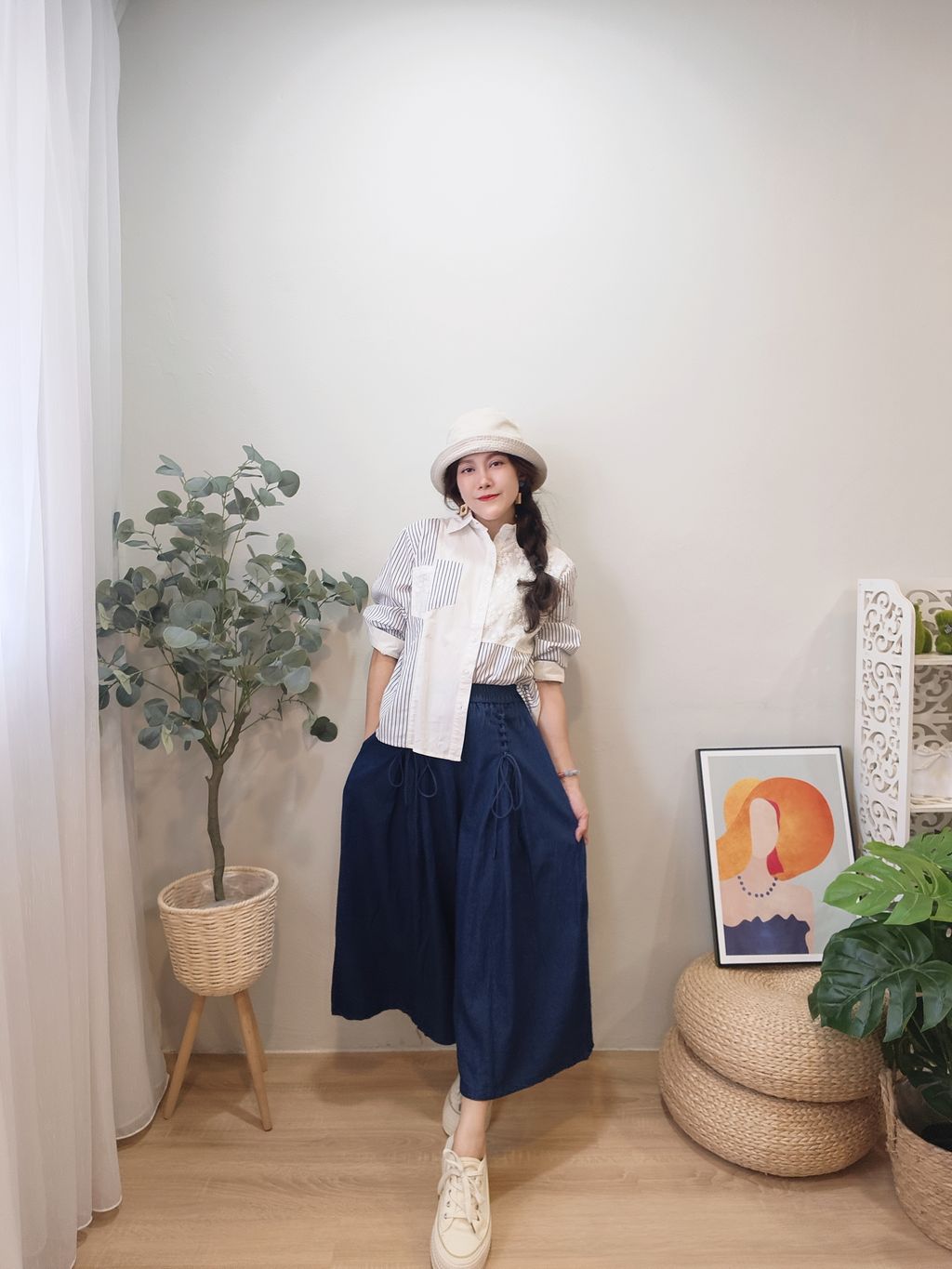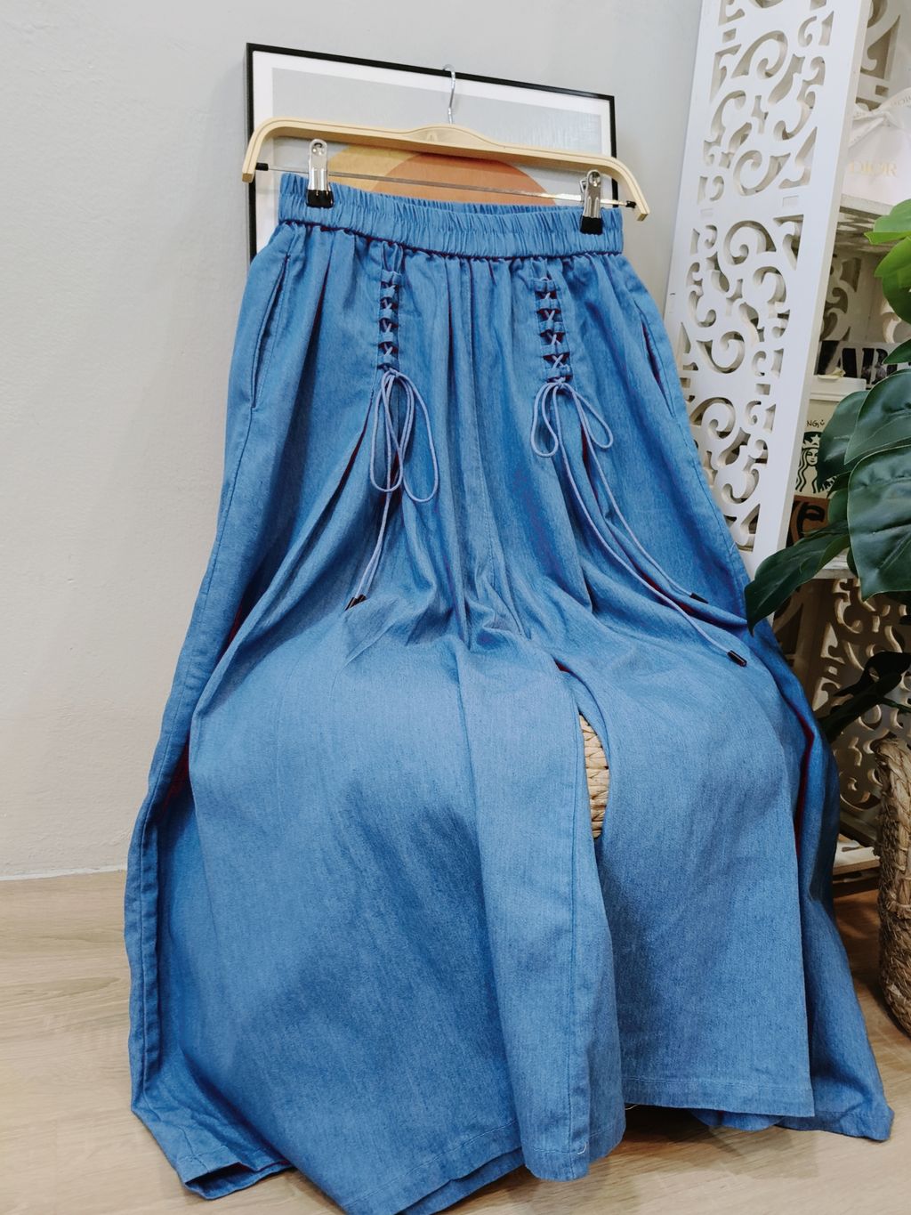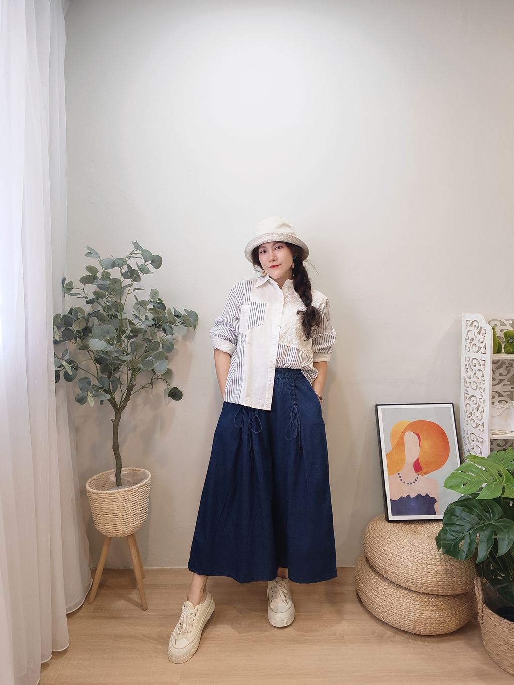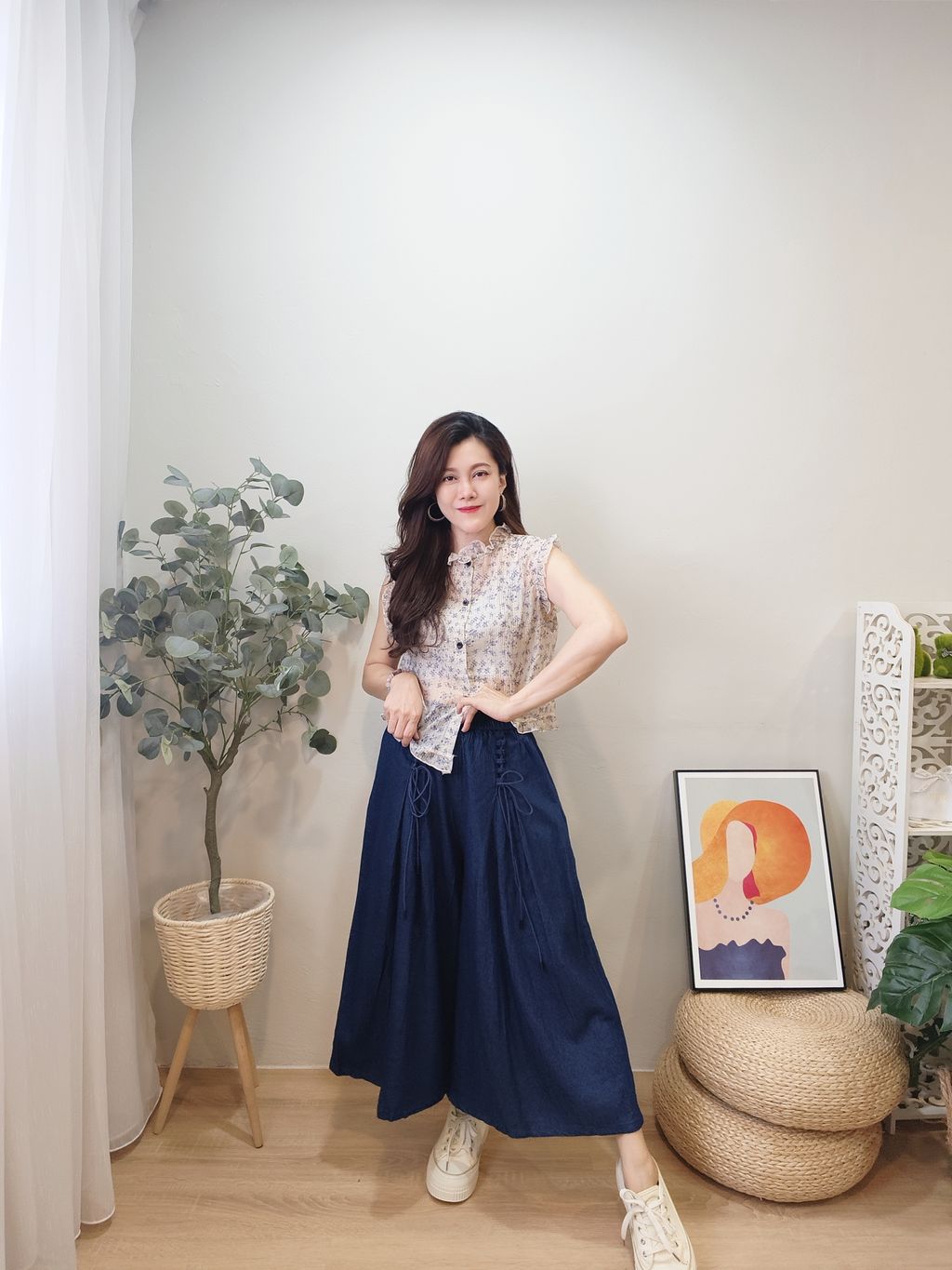 Casual Wide-Leg Denim with Braid Detail 休闲辫带牛仔宽脚裤
