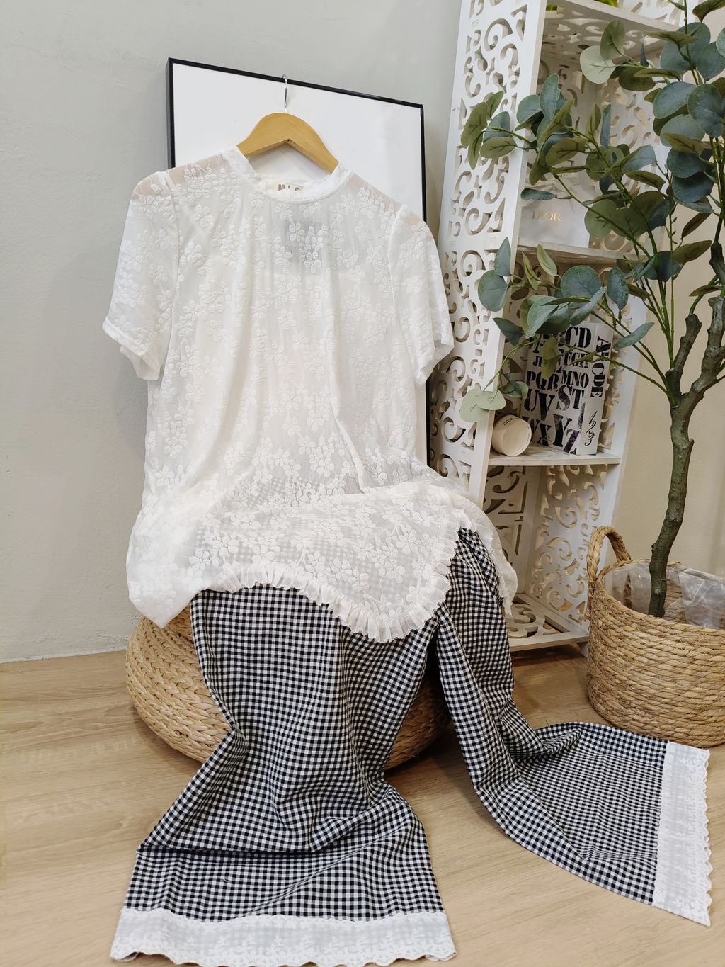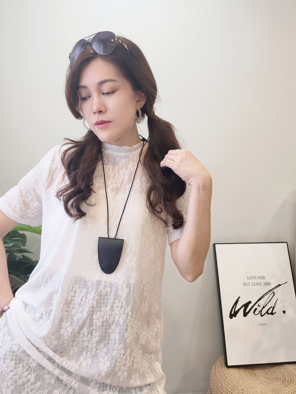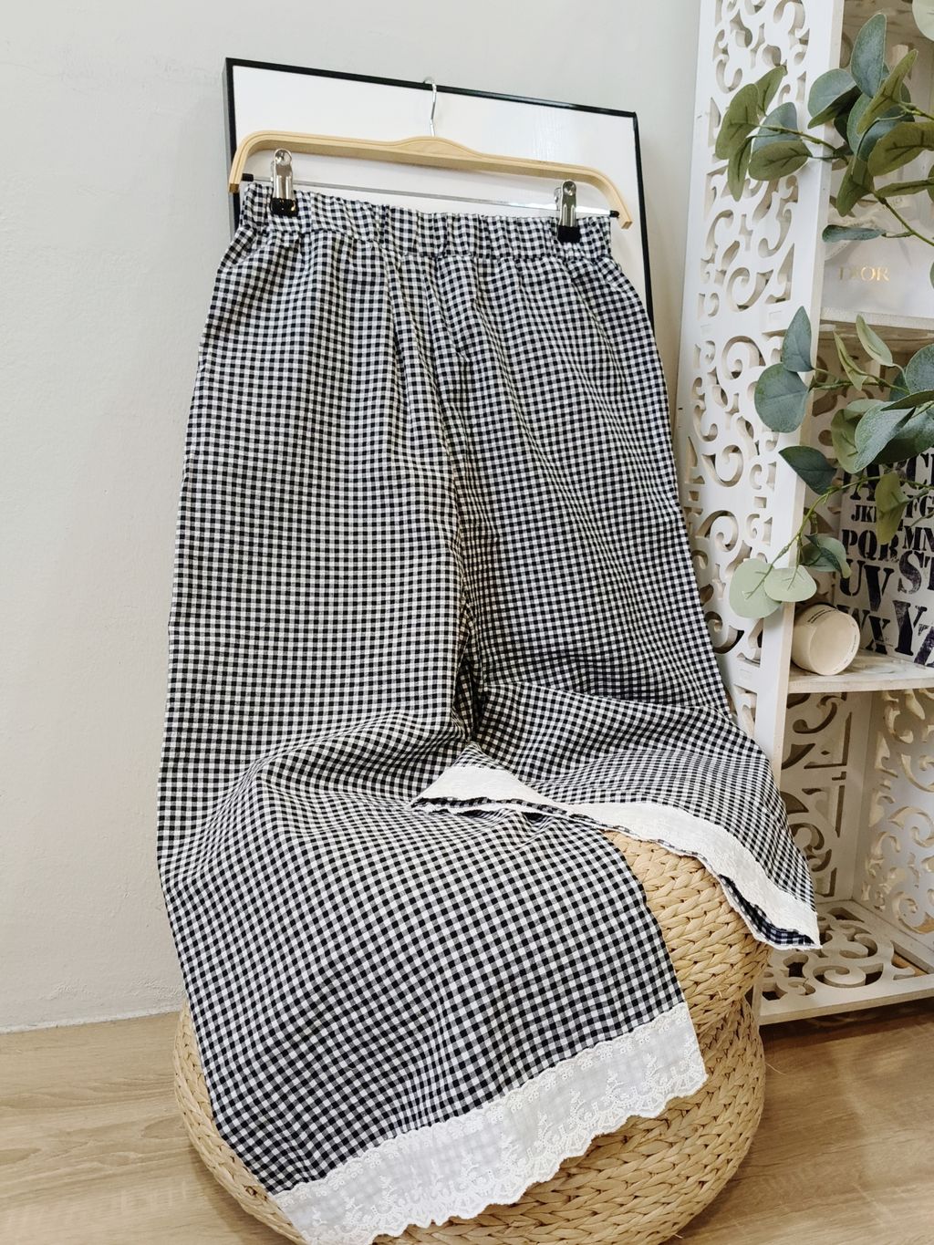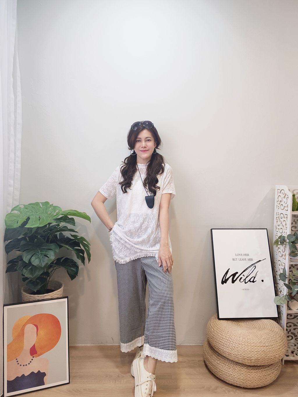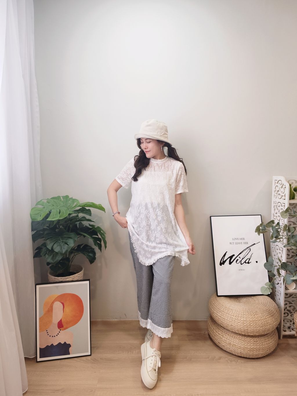 Material: Stretch Lace 弹力蕾丝 (上衣) + Linen 麻布 (裤子)