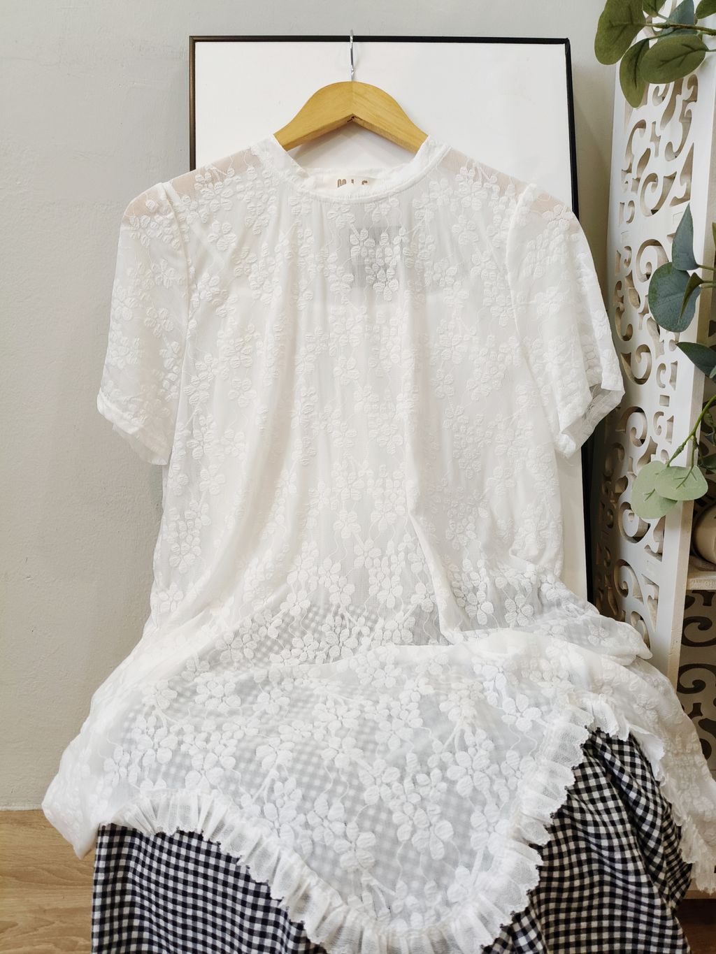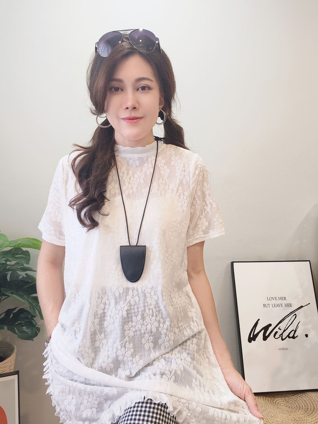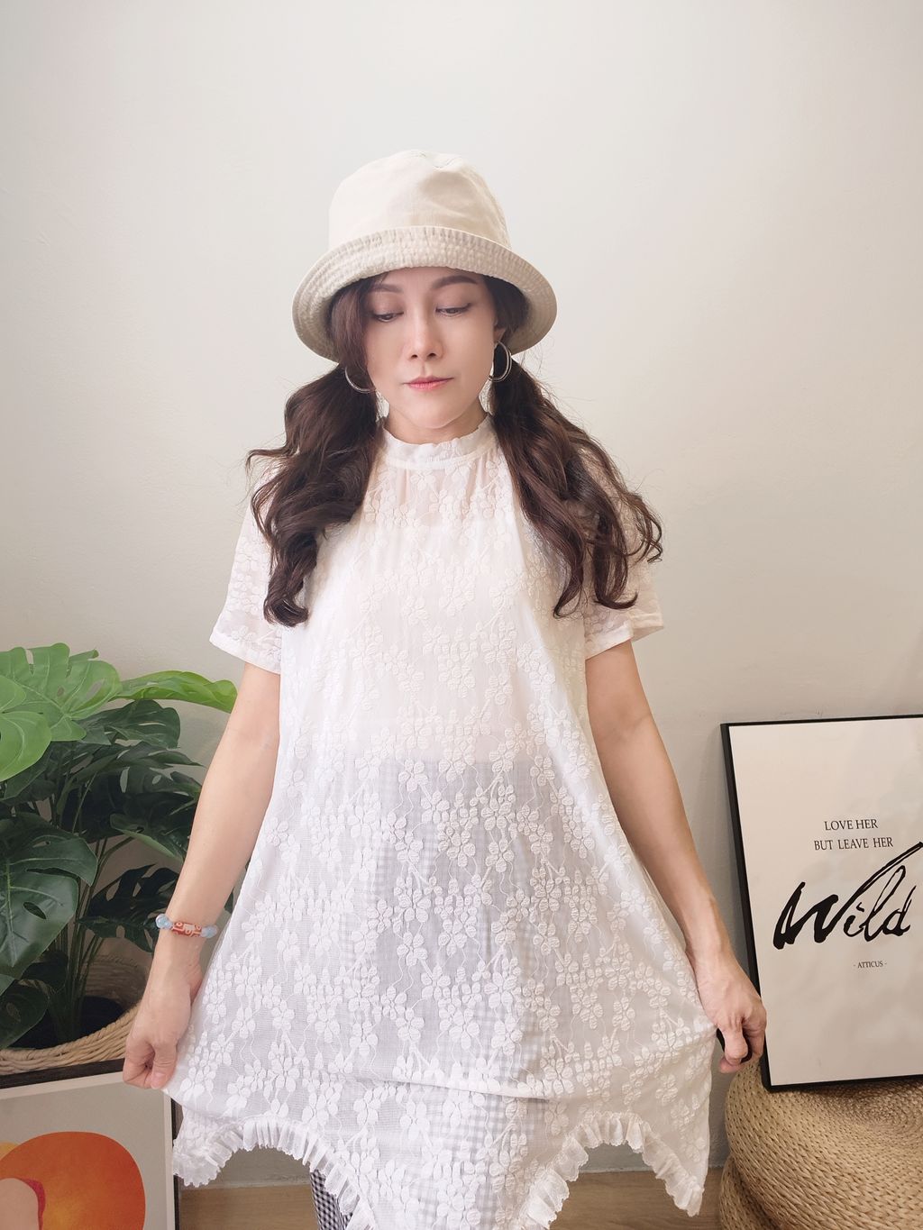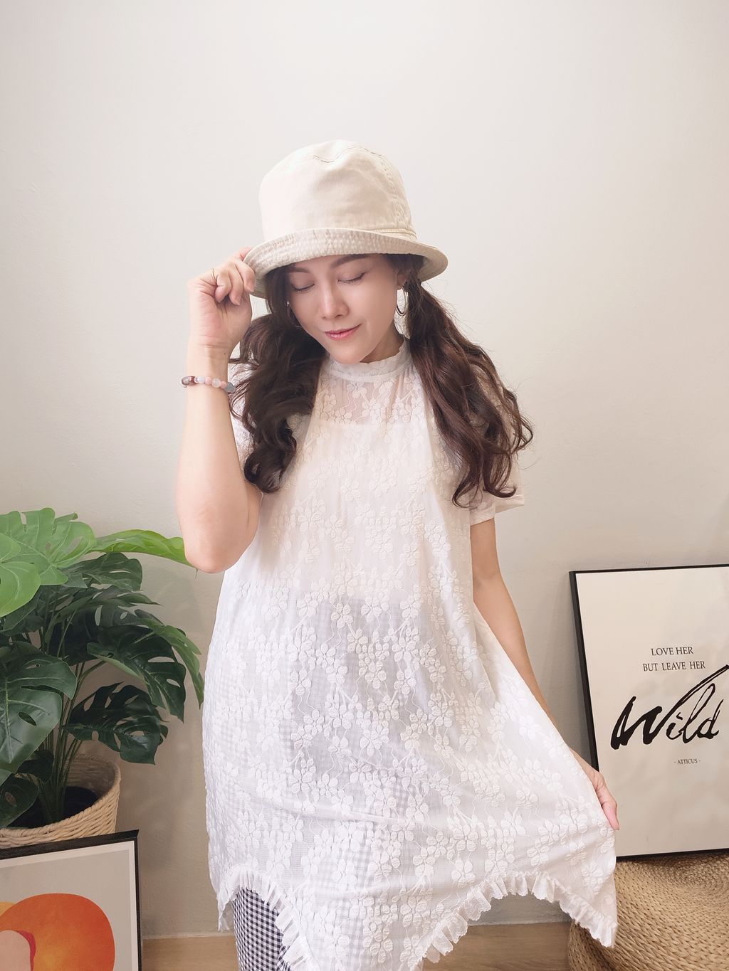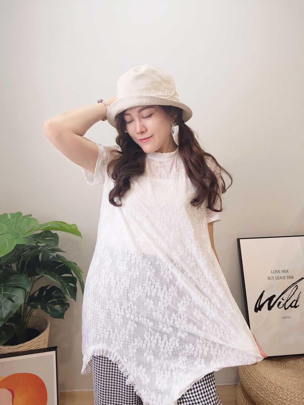 Material: Stretch Lace 弹力蕾丝 (上衣) + Linen 麻布 (裤子)