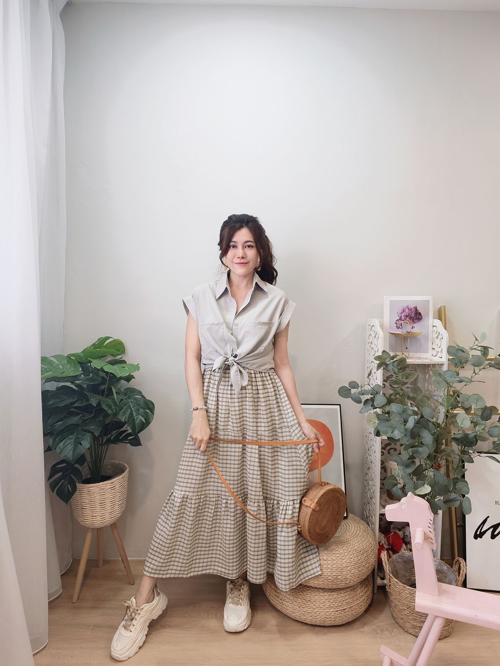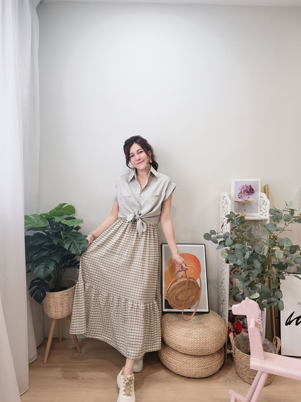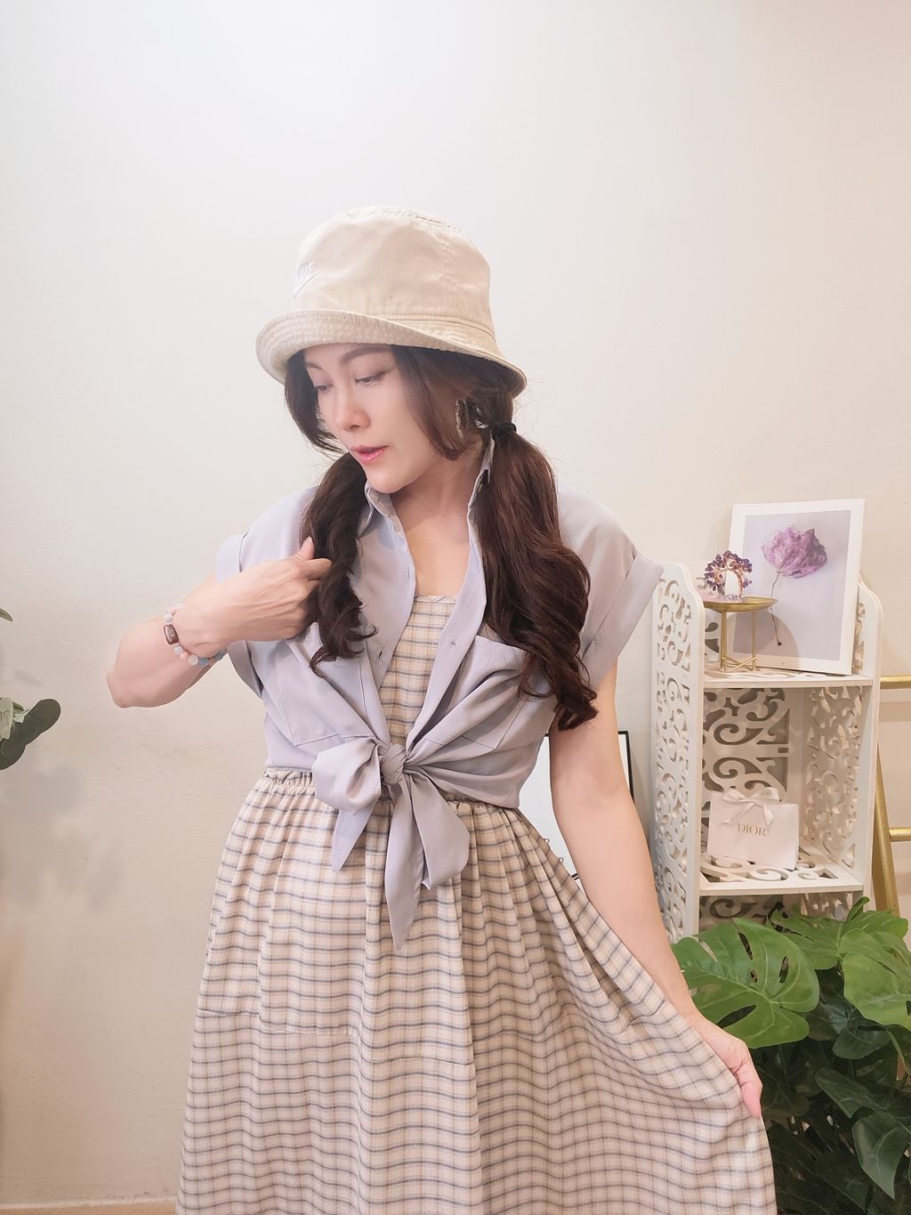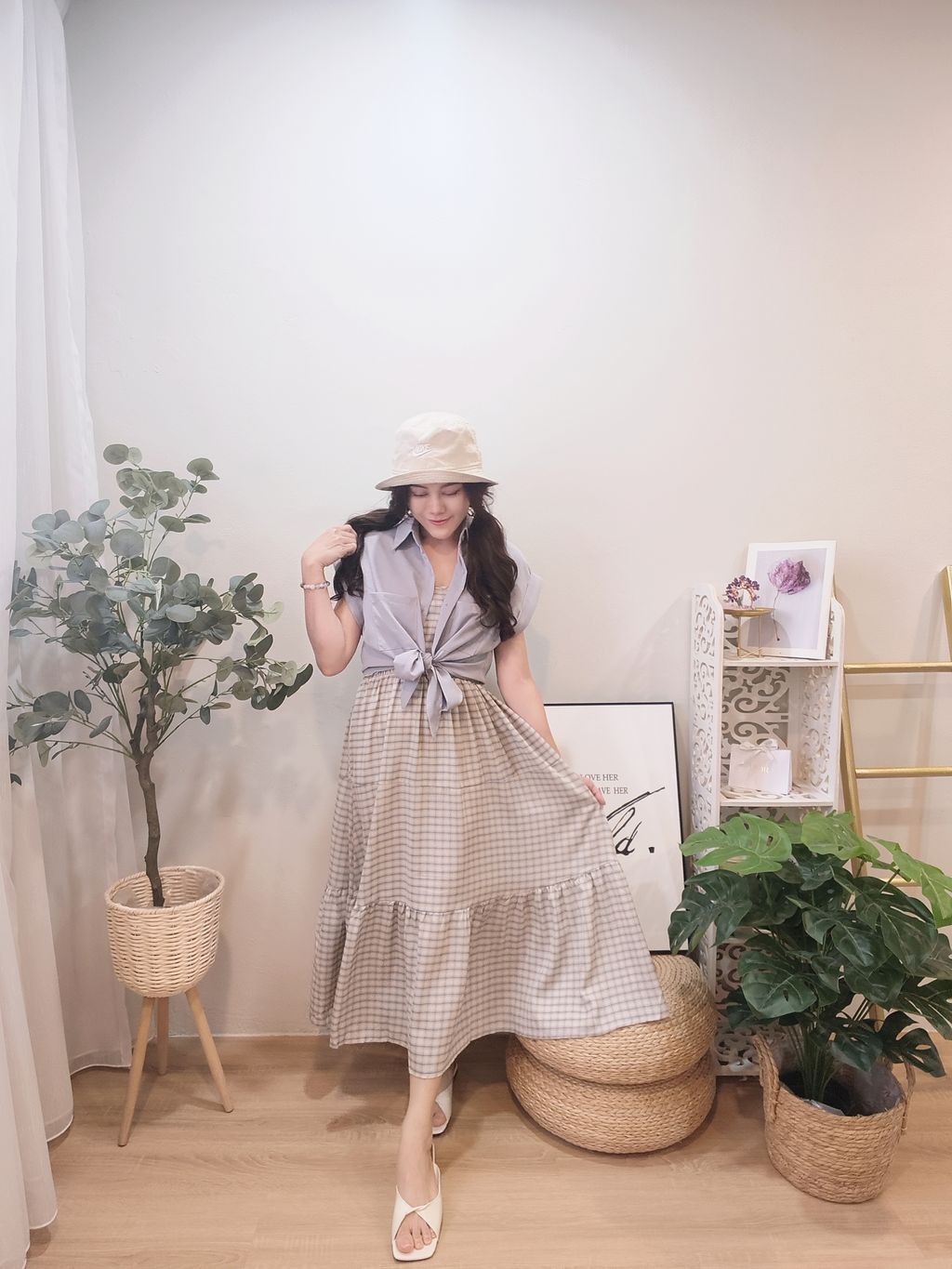 Elegant Two-Piece Ensemble 轻雅两件式格纹套装裙