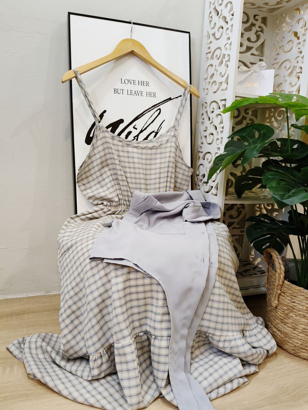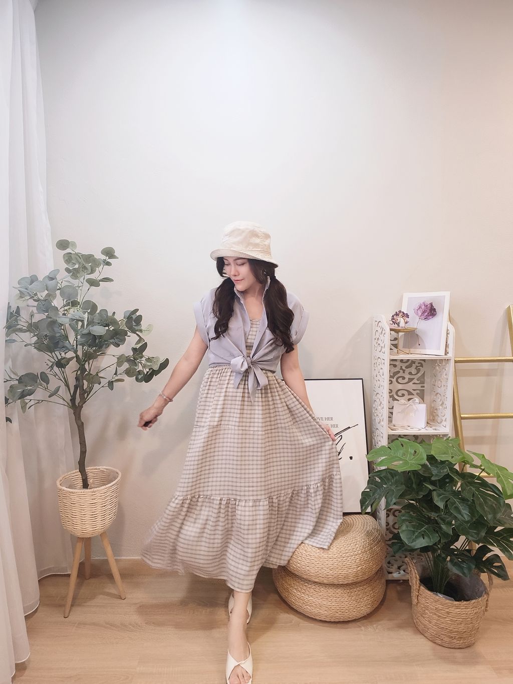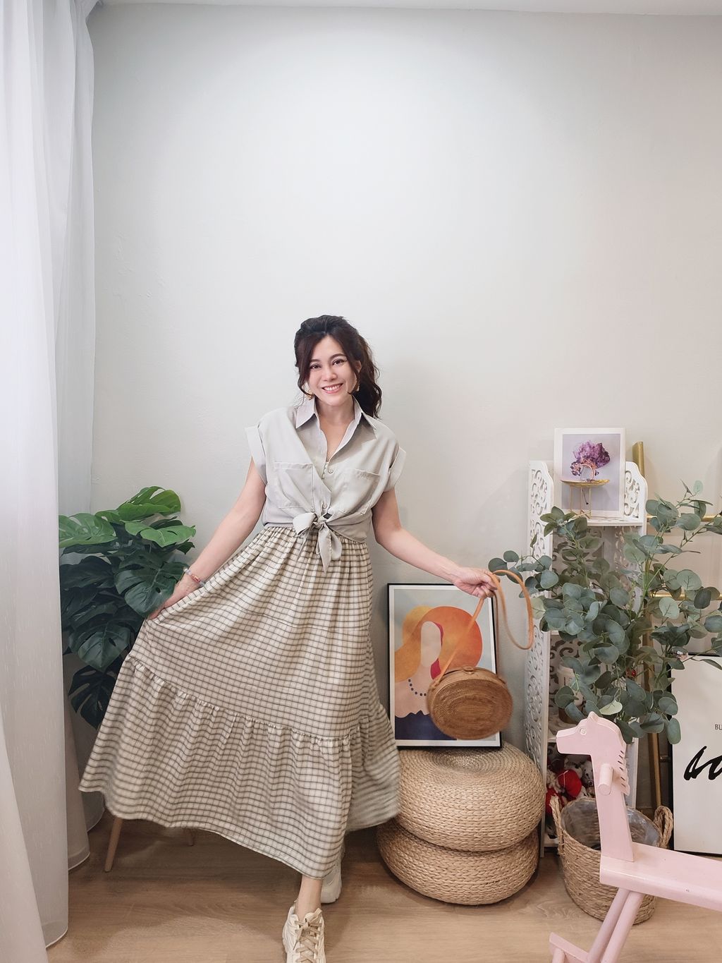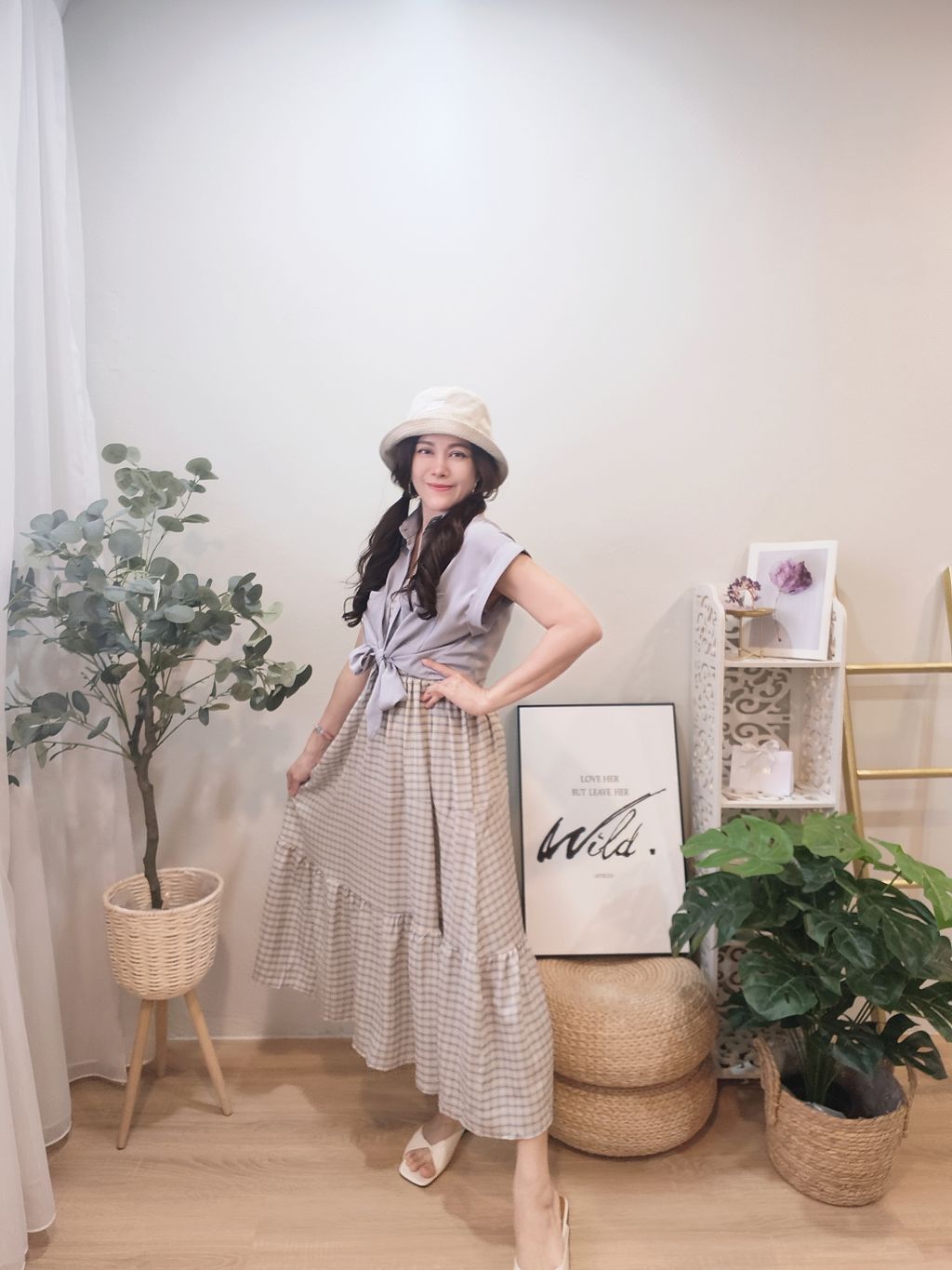 Elegant Two-Piece Ensemble 轻雅两件式格纹套装裙
