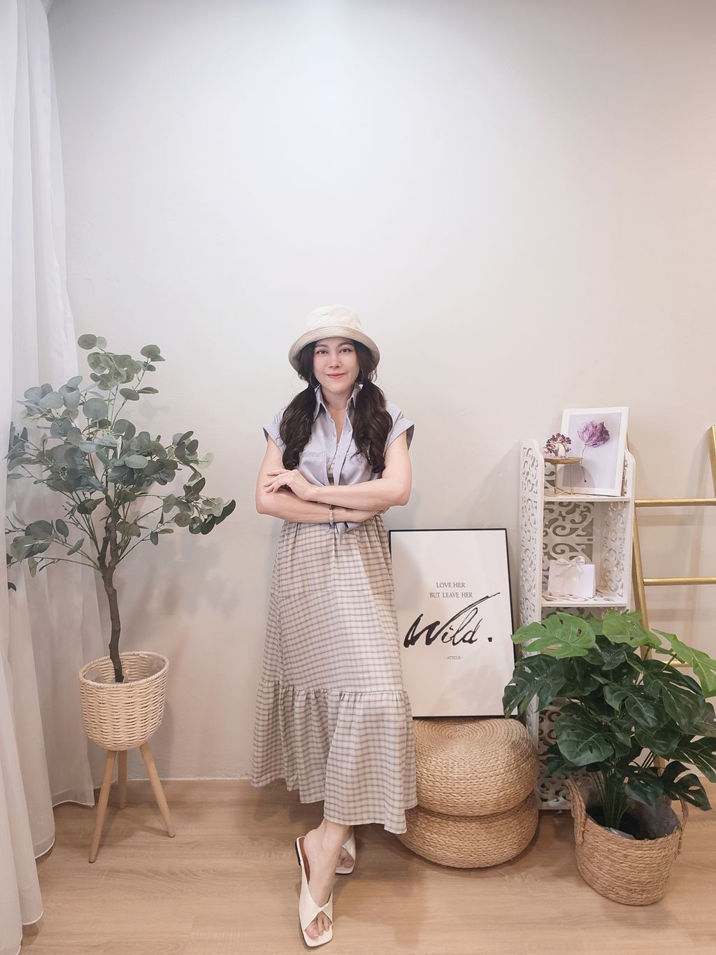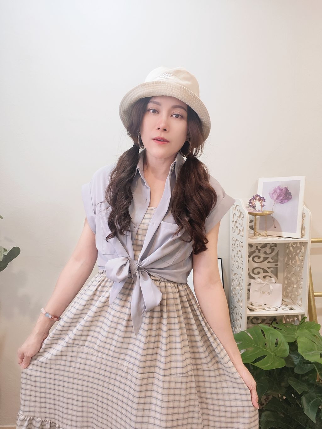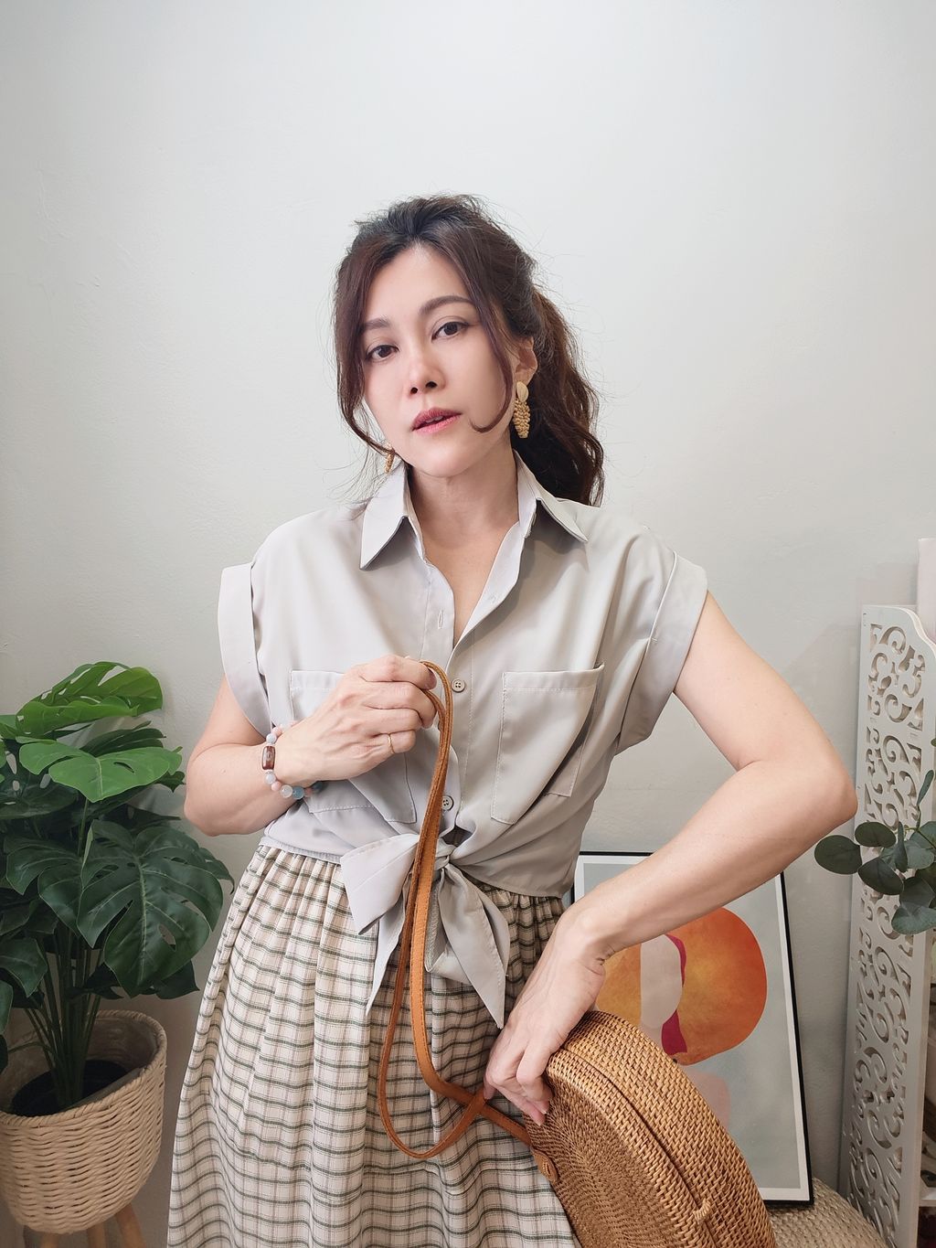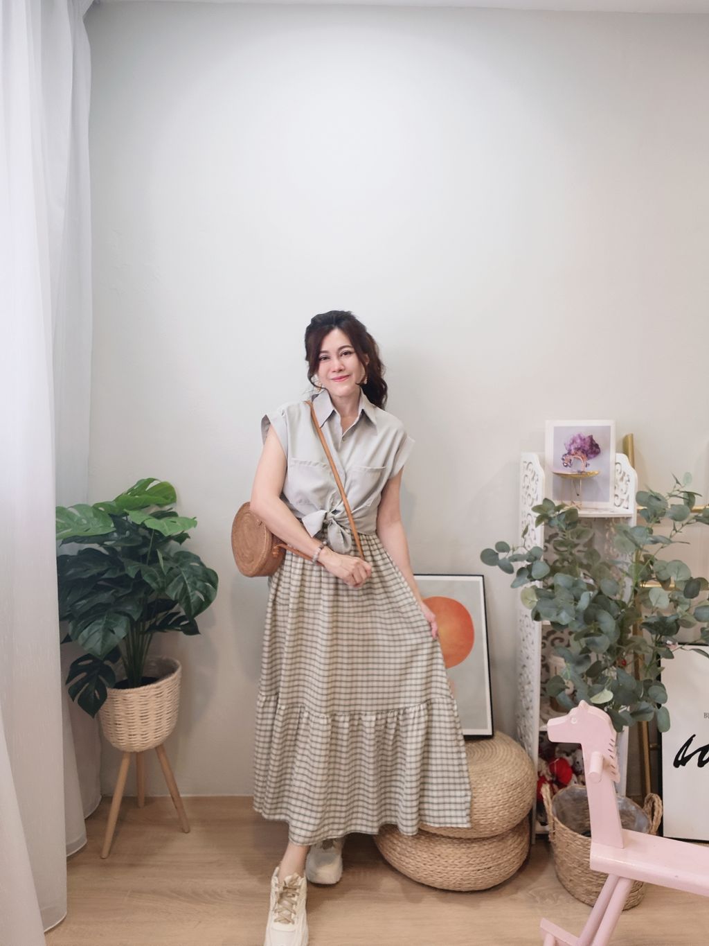 Elegant Two-Piece Ensemble 轻雅两件式格纹套装裙