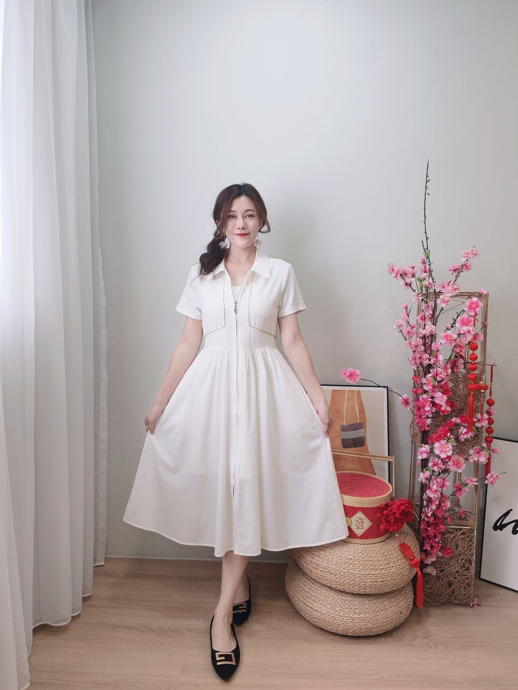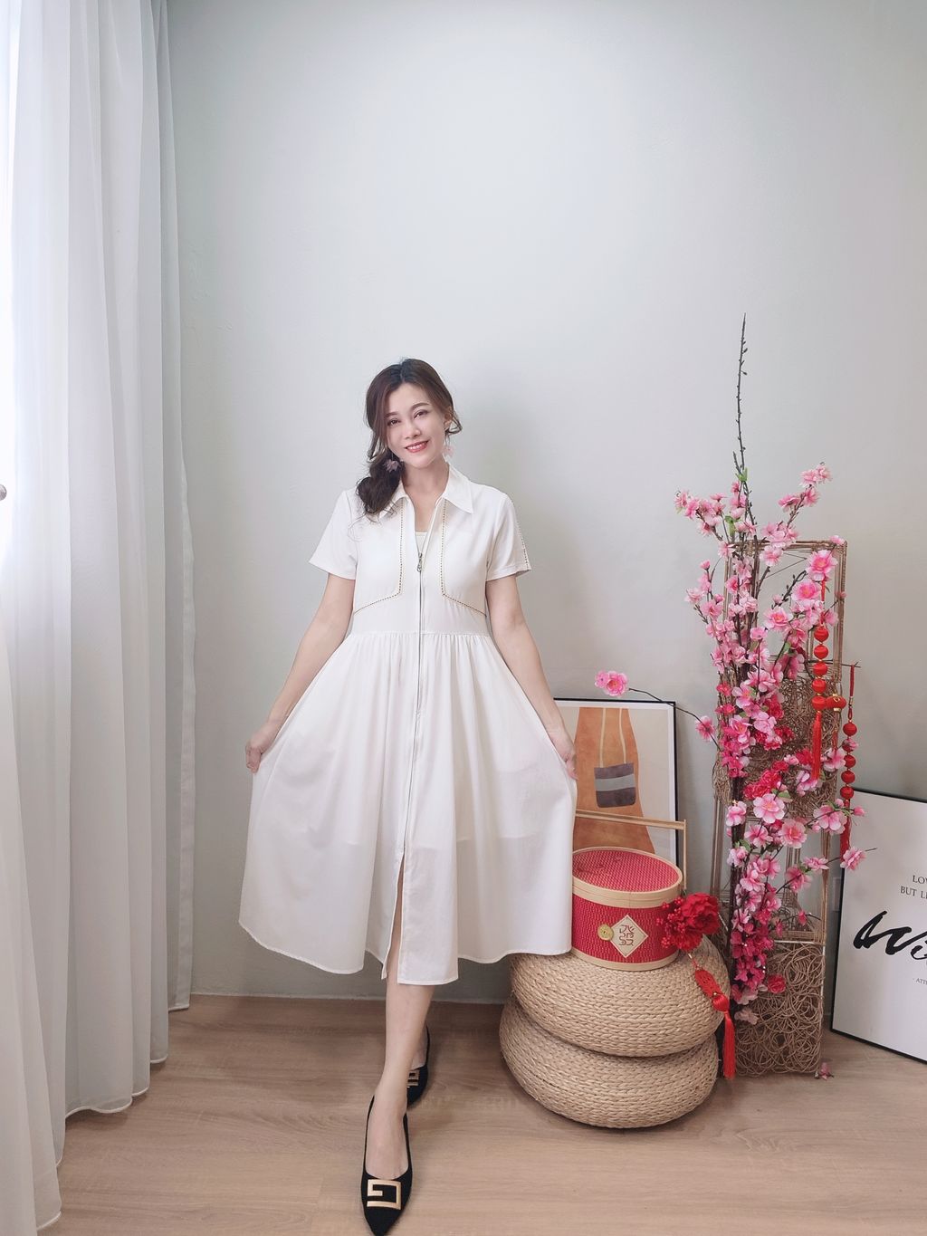 Piping Details Zip Dress 拉链式修身连衣裙