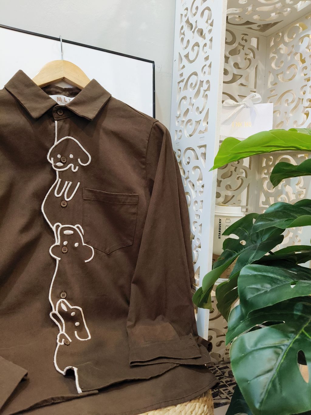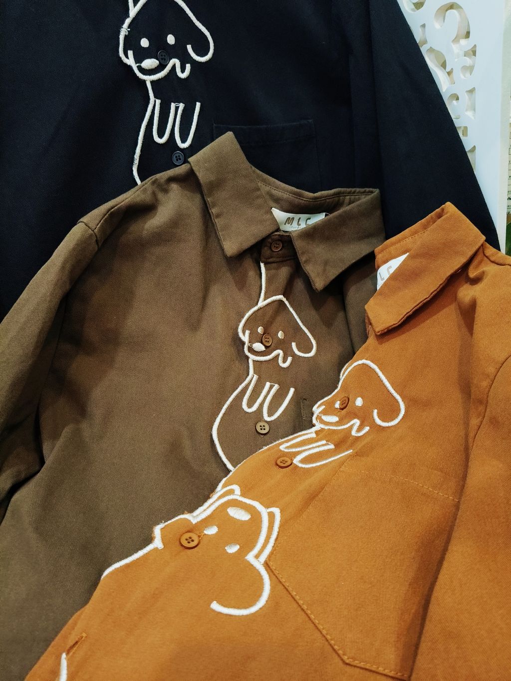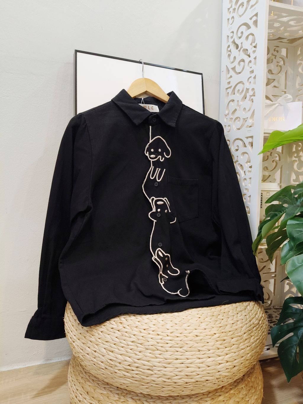 Shirt with 3D Puppy Embroidery 立体绣狗图案衬衫