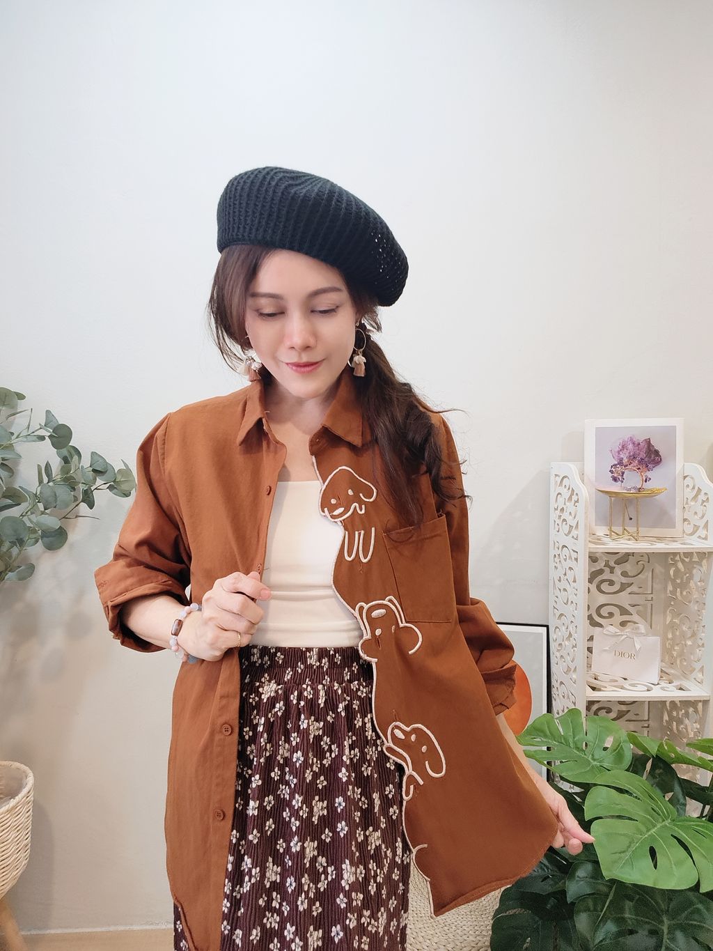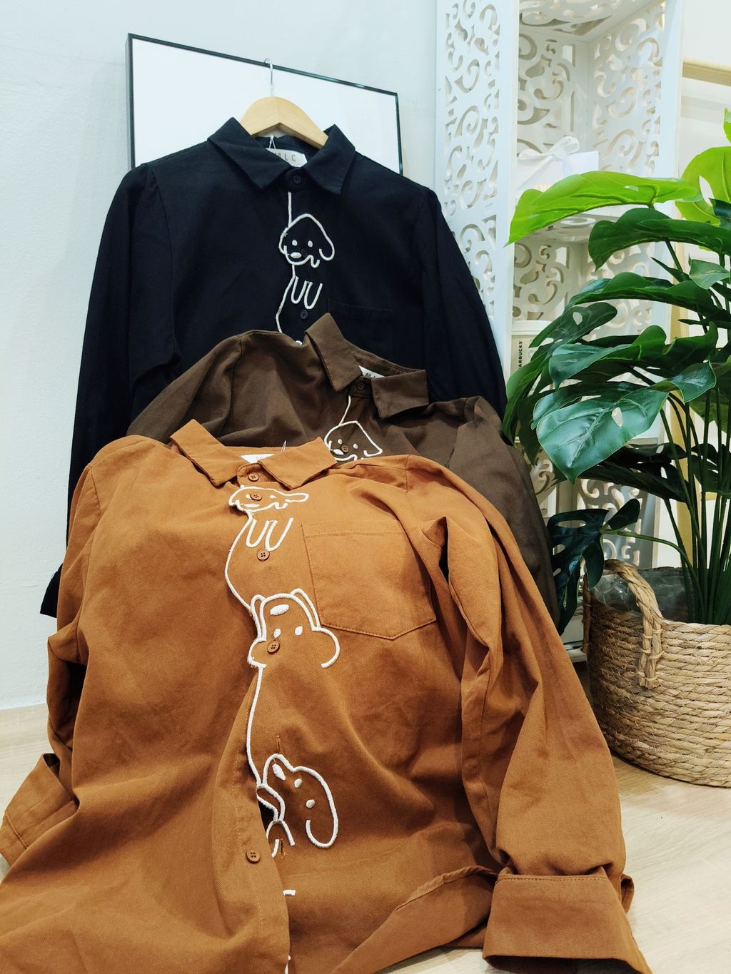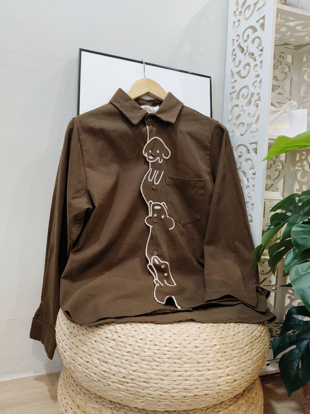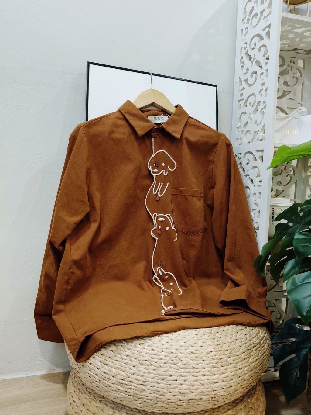 Shirt with 3D Puppy Embroidery 立体绣狗图案衬衫